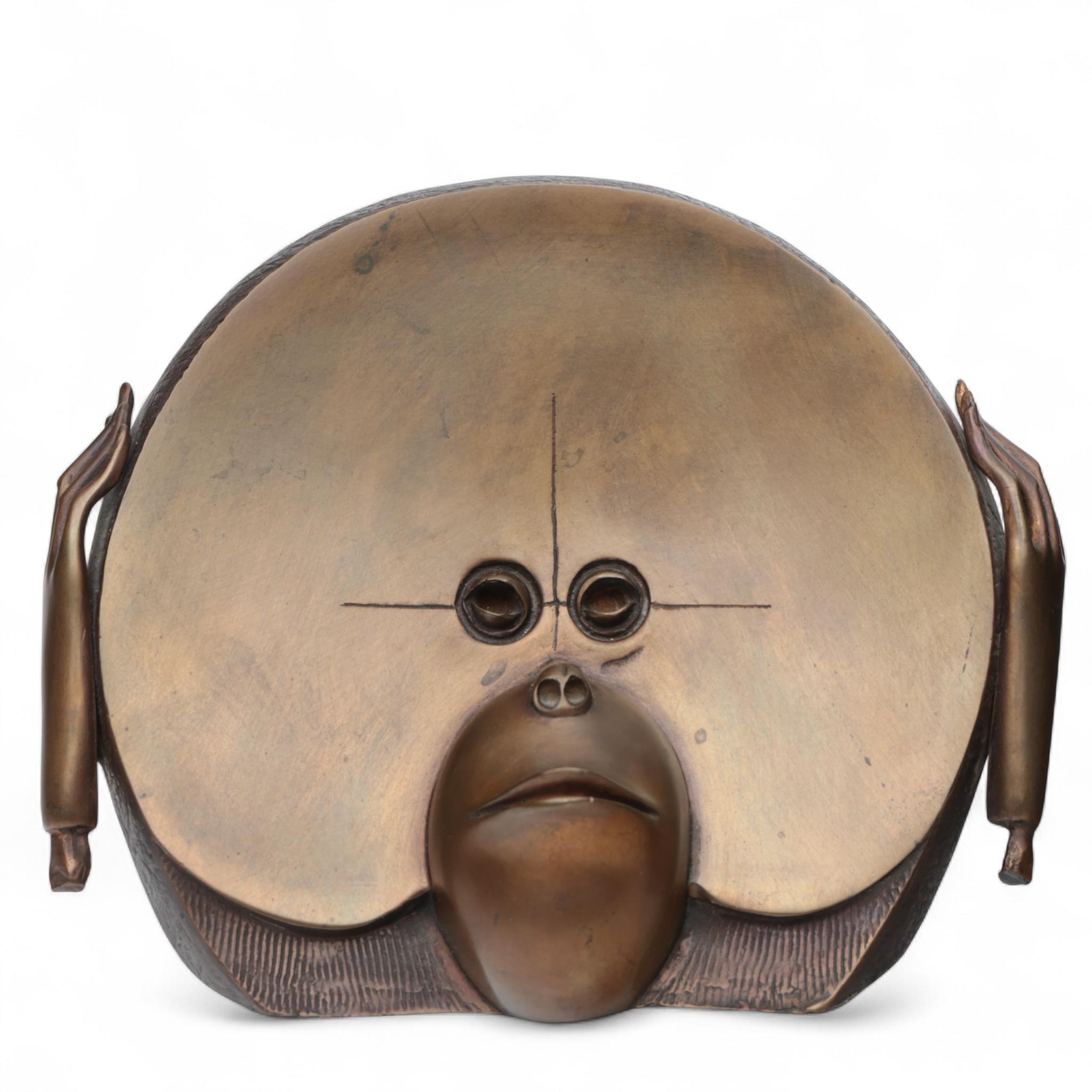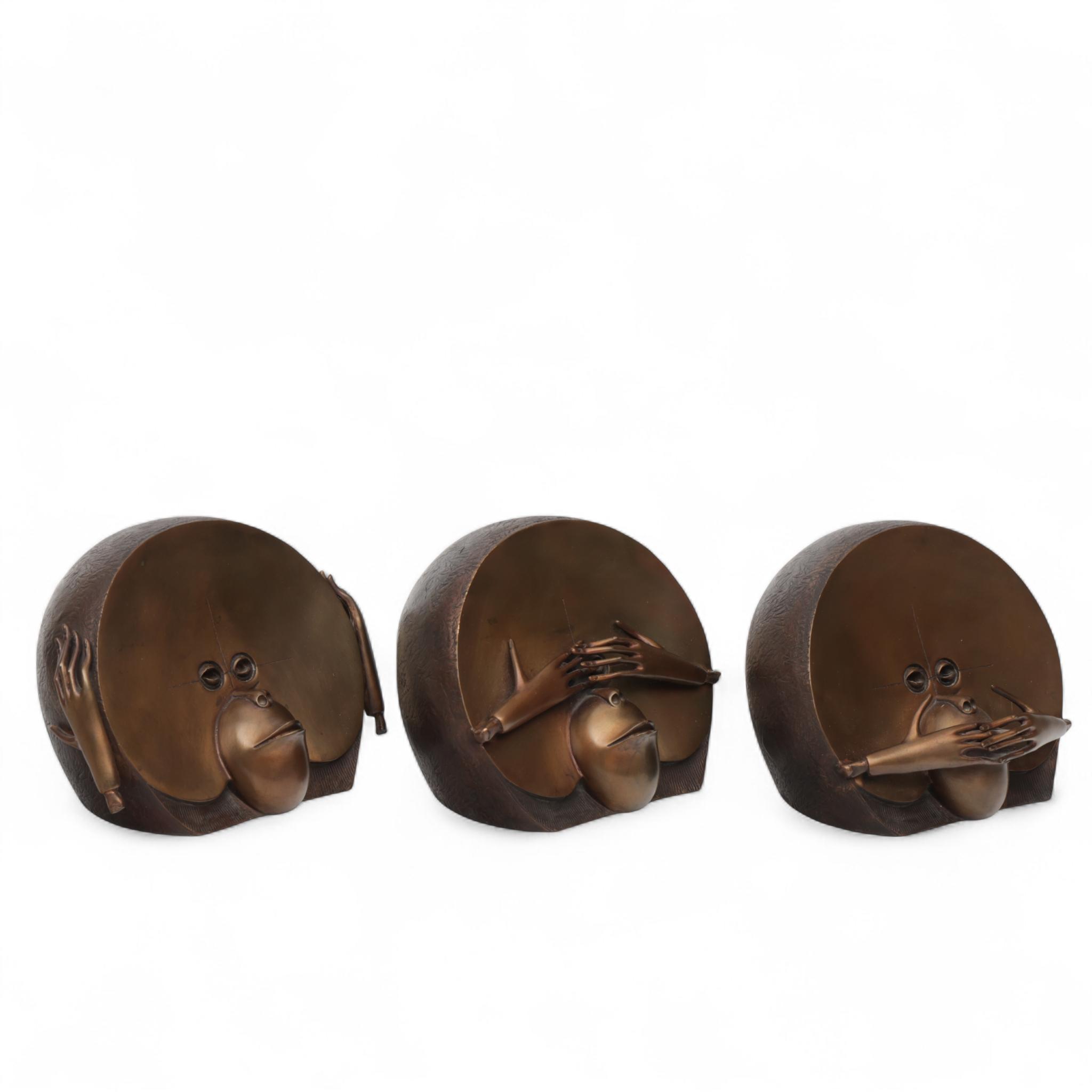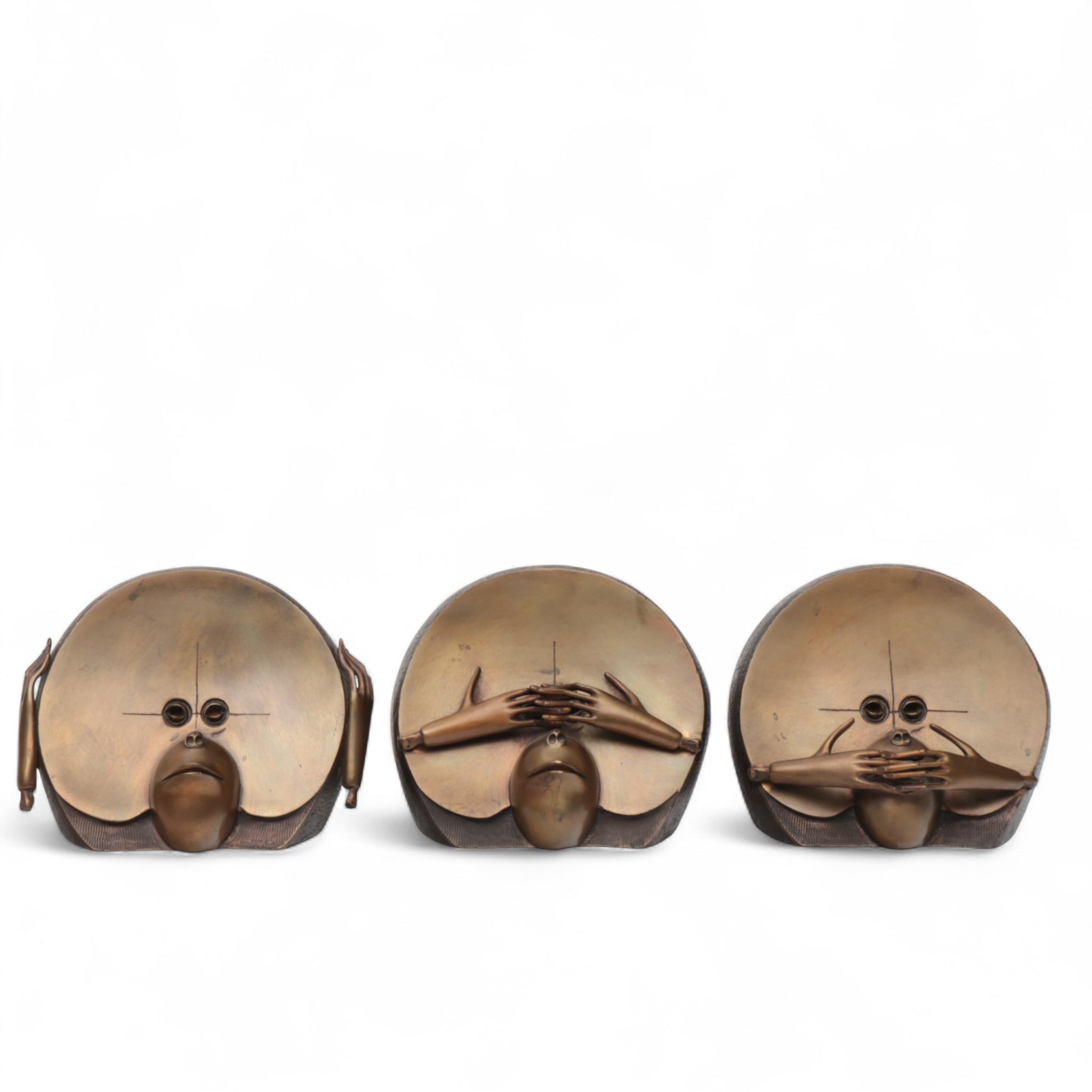 Paul Wunderlich (1927-2010), set van drie bruin gepatineerde bronzen sculpturen, 'Horen, Zien en Zwijgen, 1995;