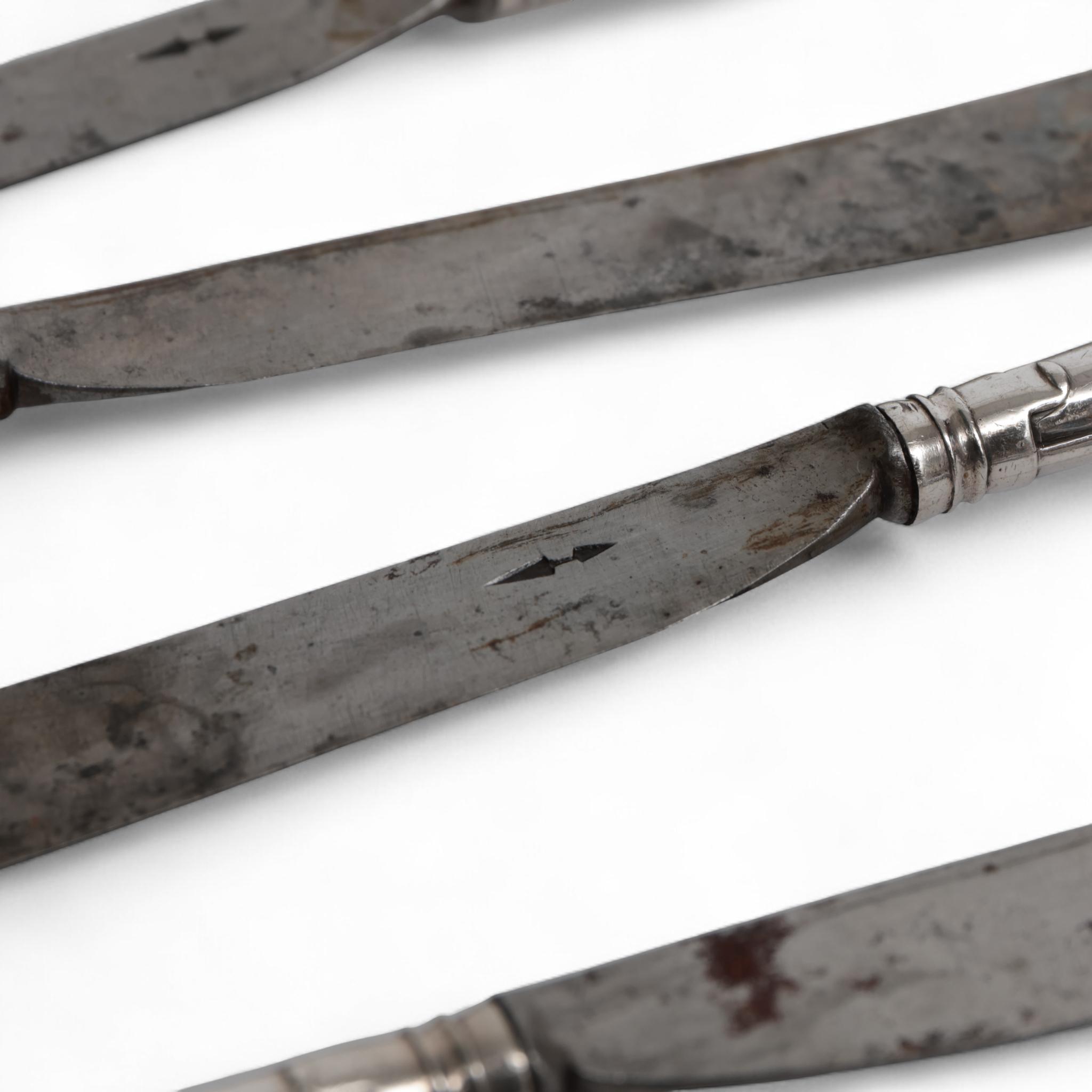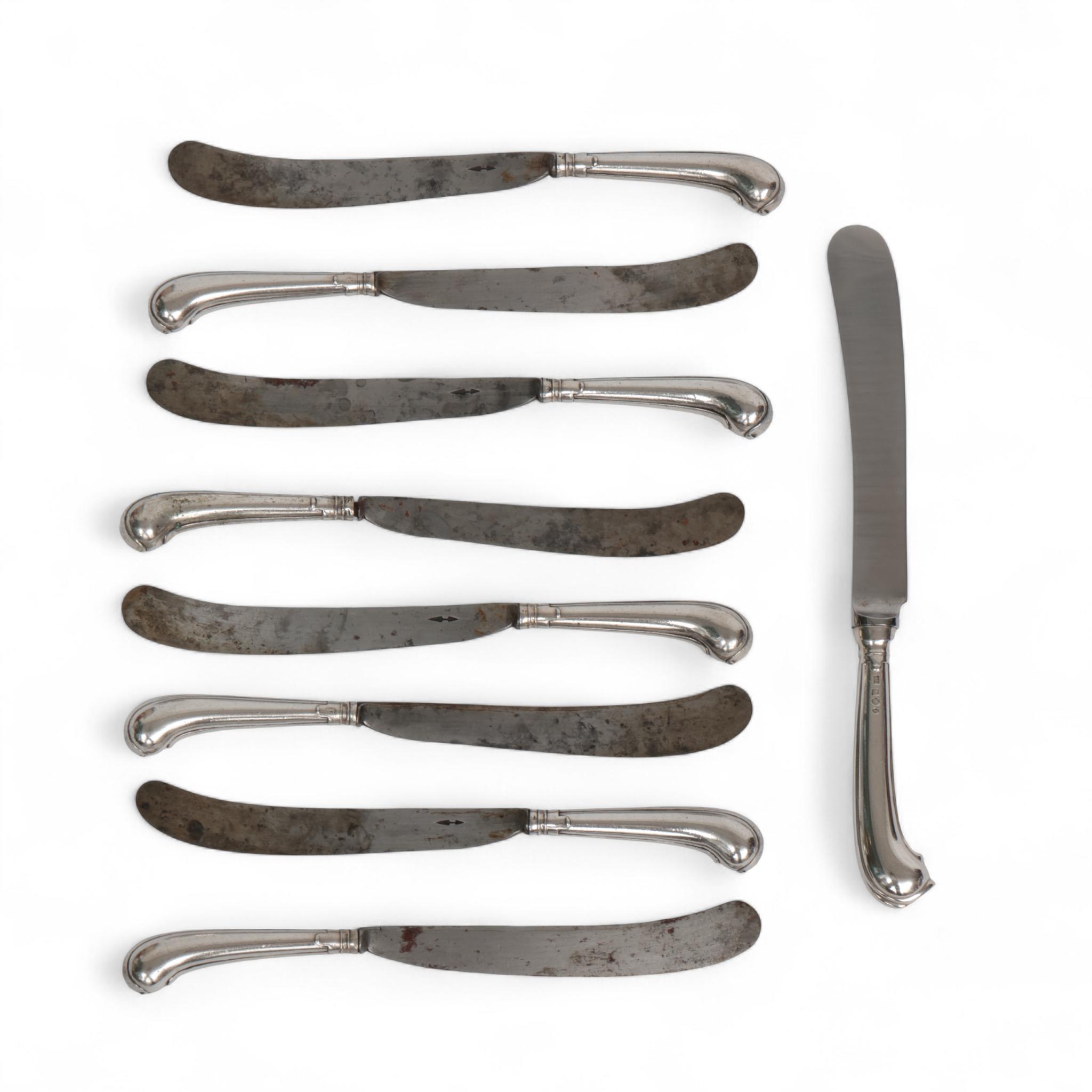 Set van acht dessert messen met pistoolheft, Amsterdam 1e helft 18e eeuw ,