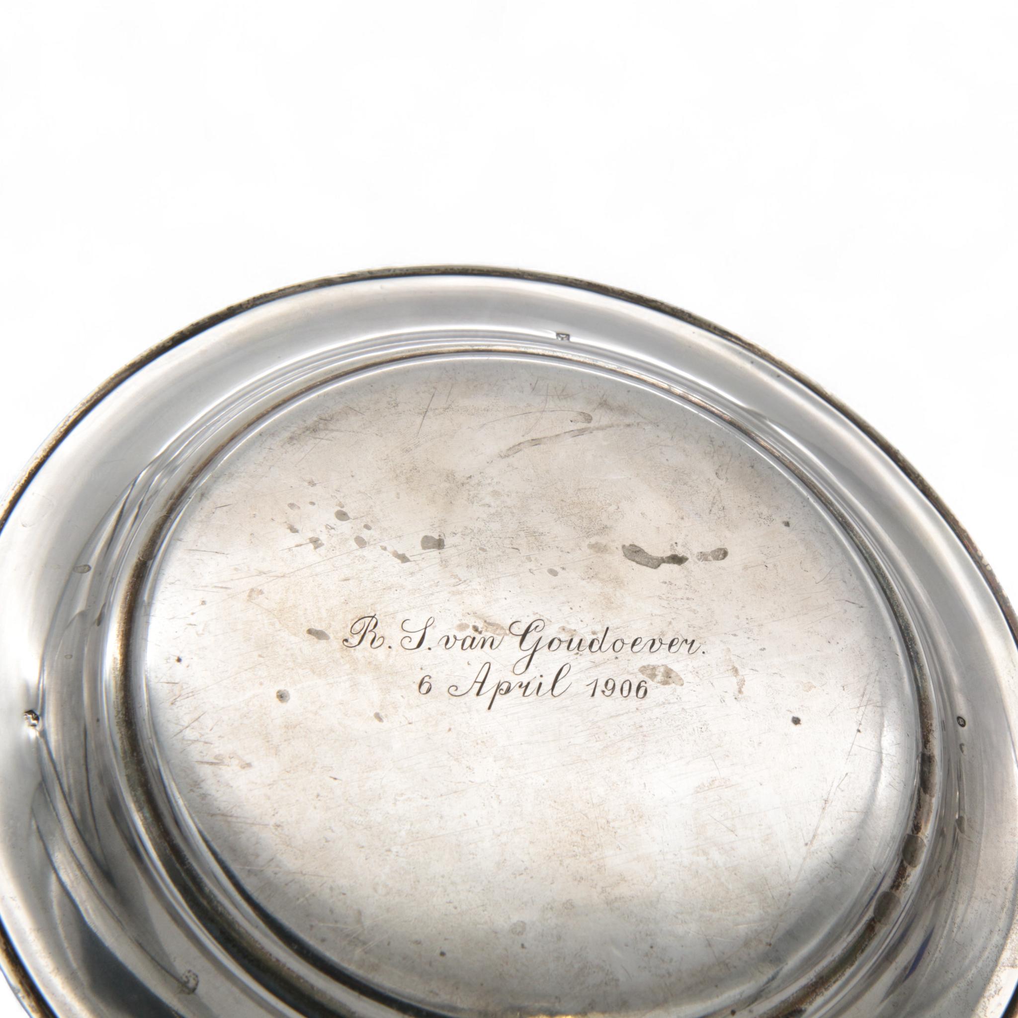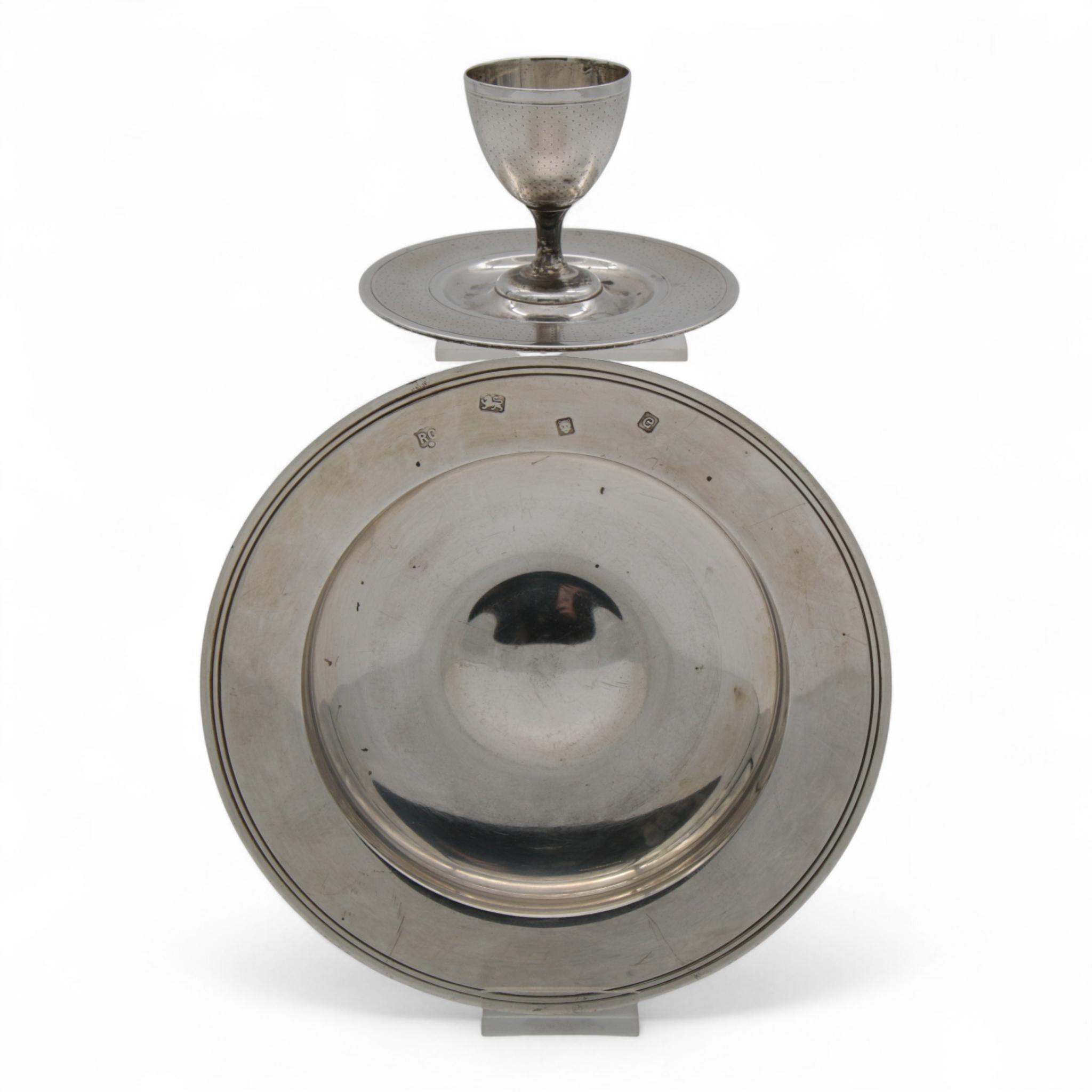 schaal mt.William Comyns & Sons Ltd (1922..1991) Londen 1960, 1e gehalte, eierdop, met geguillocheerde decoratie, 2e gehalte,