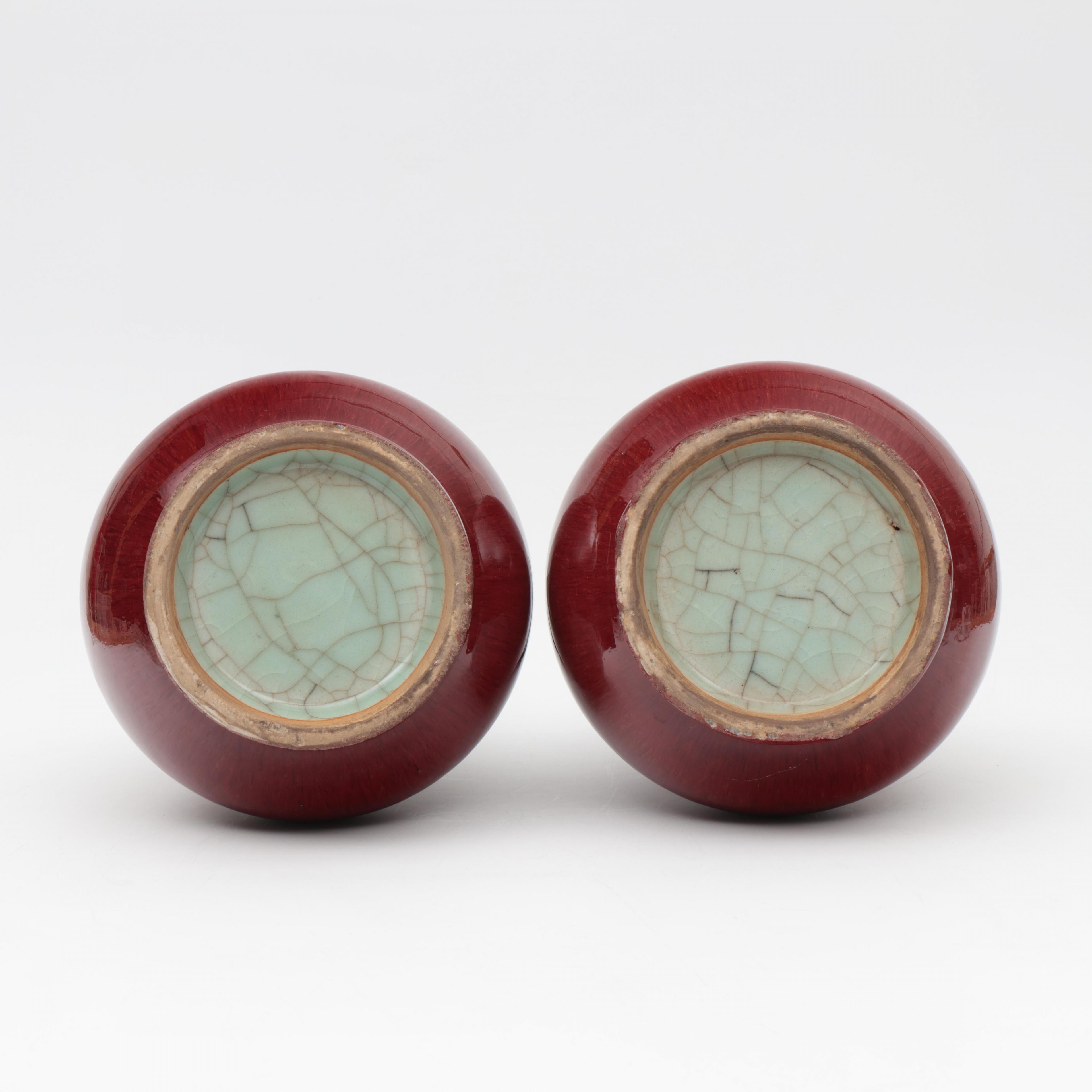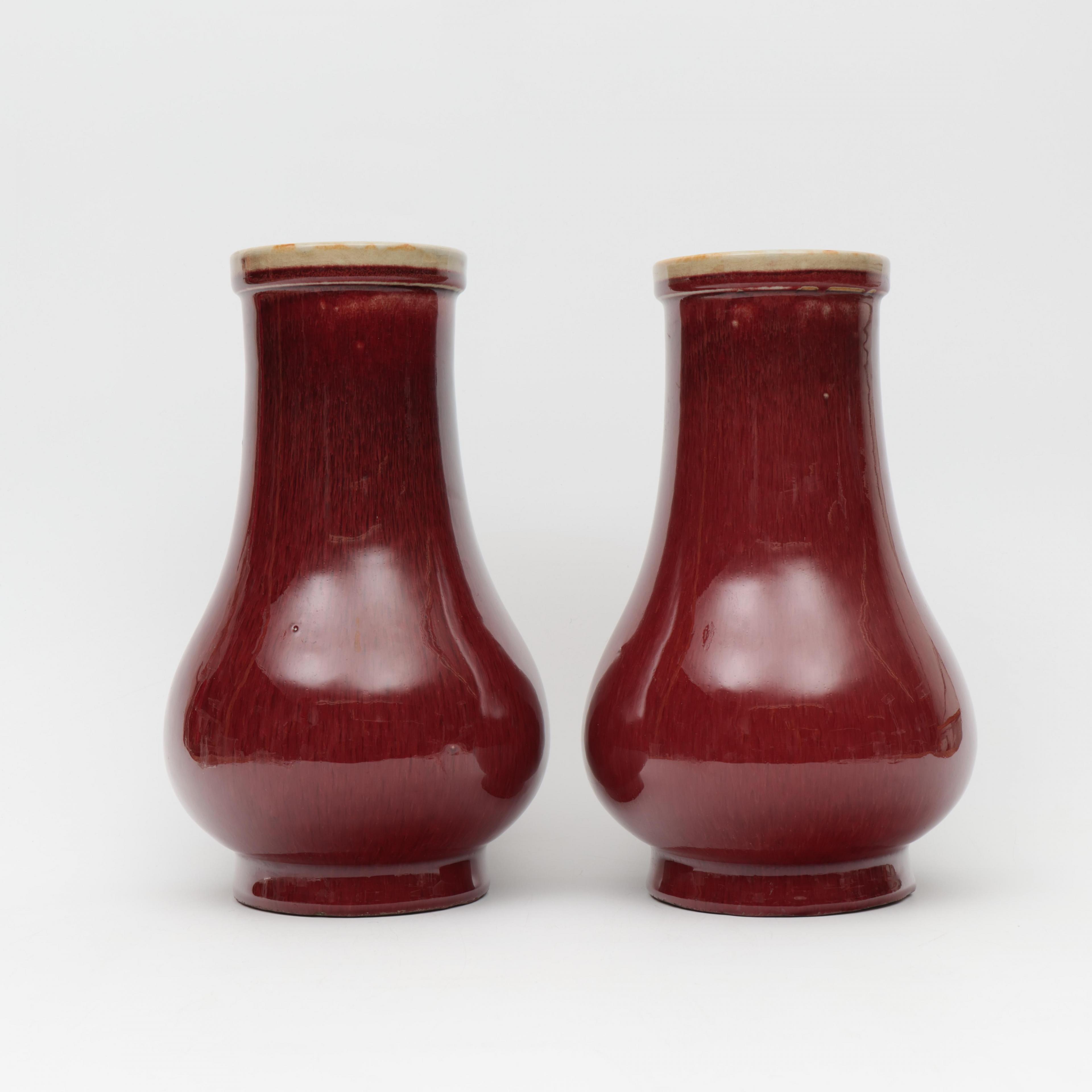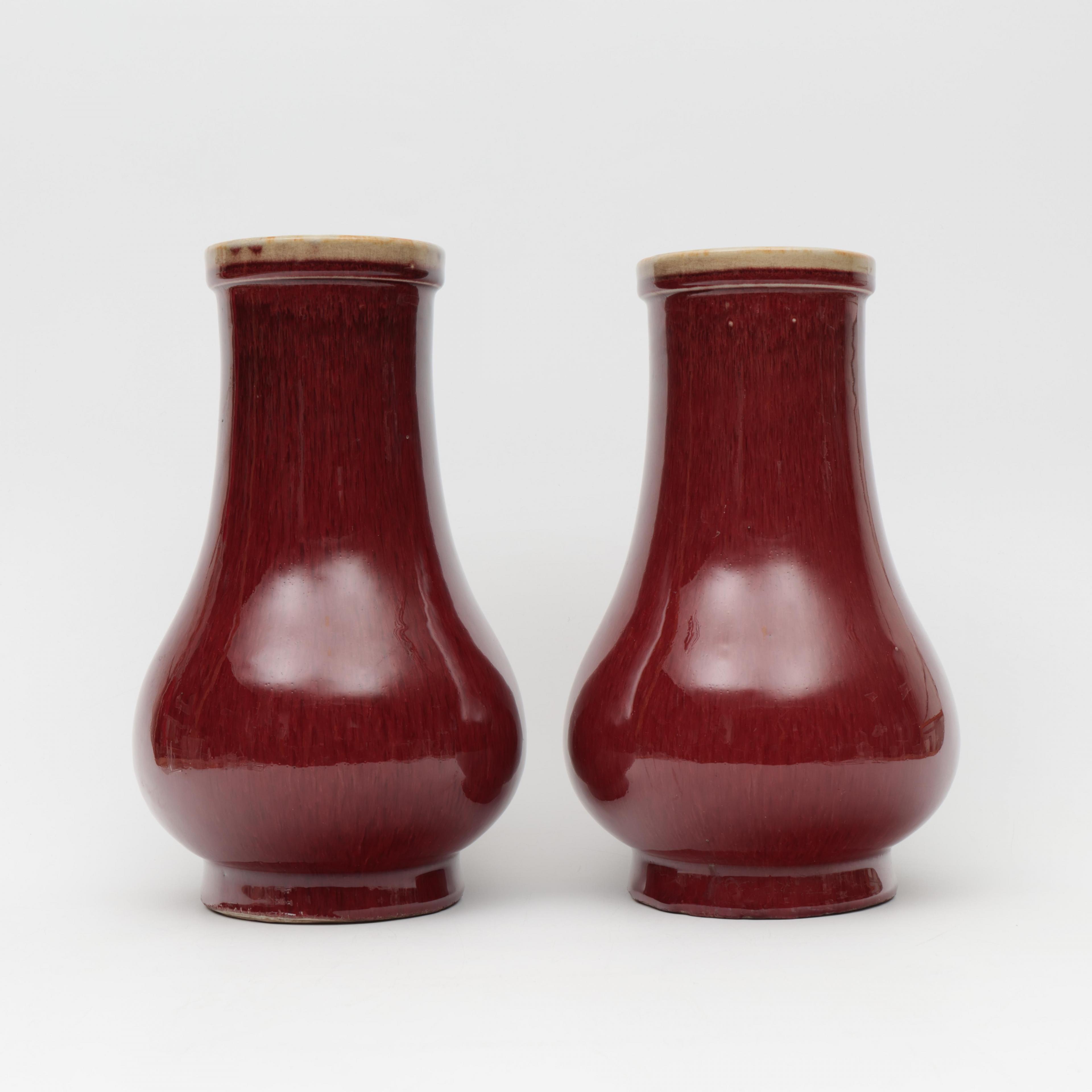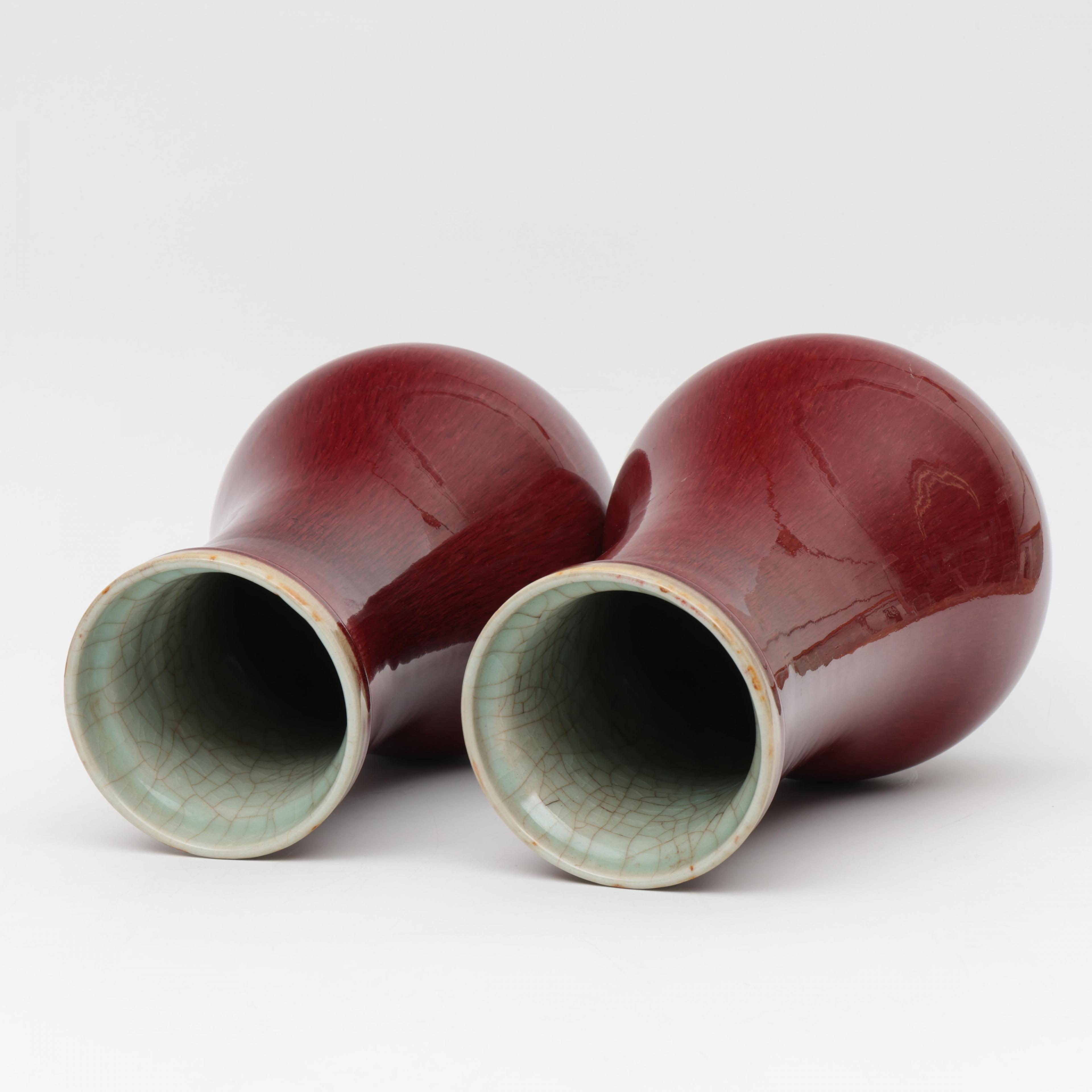 China, a pair of copper-red-glazed vases in the style of Langyao, 19th century,
