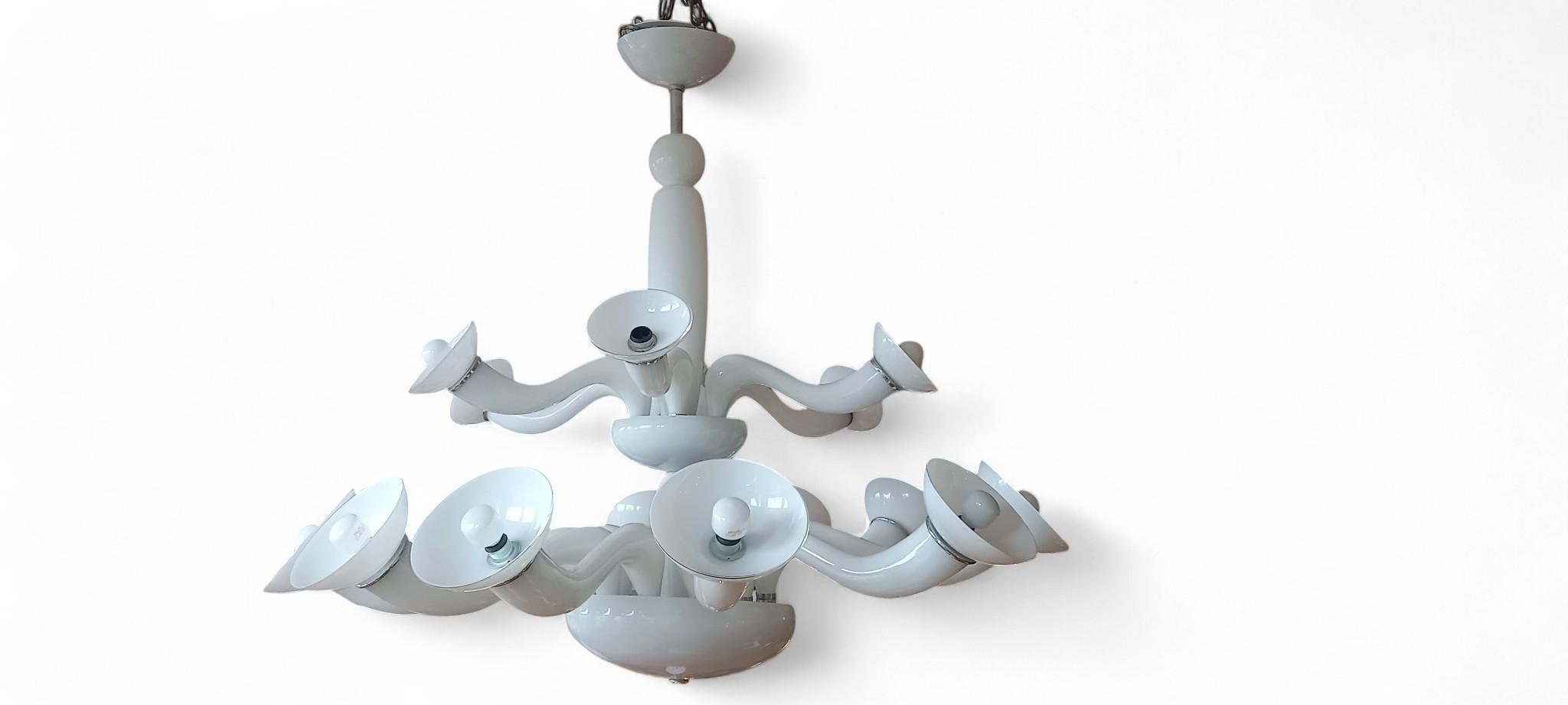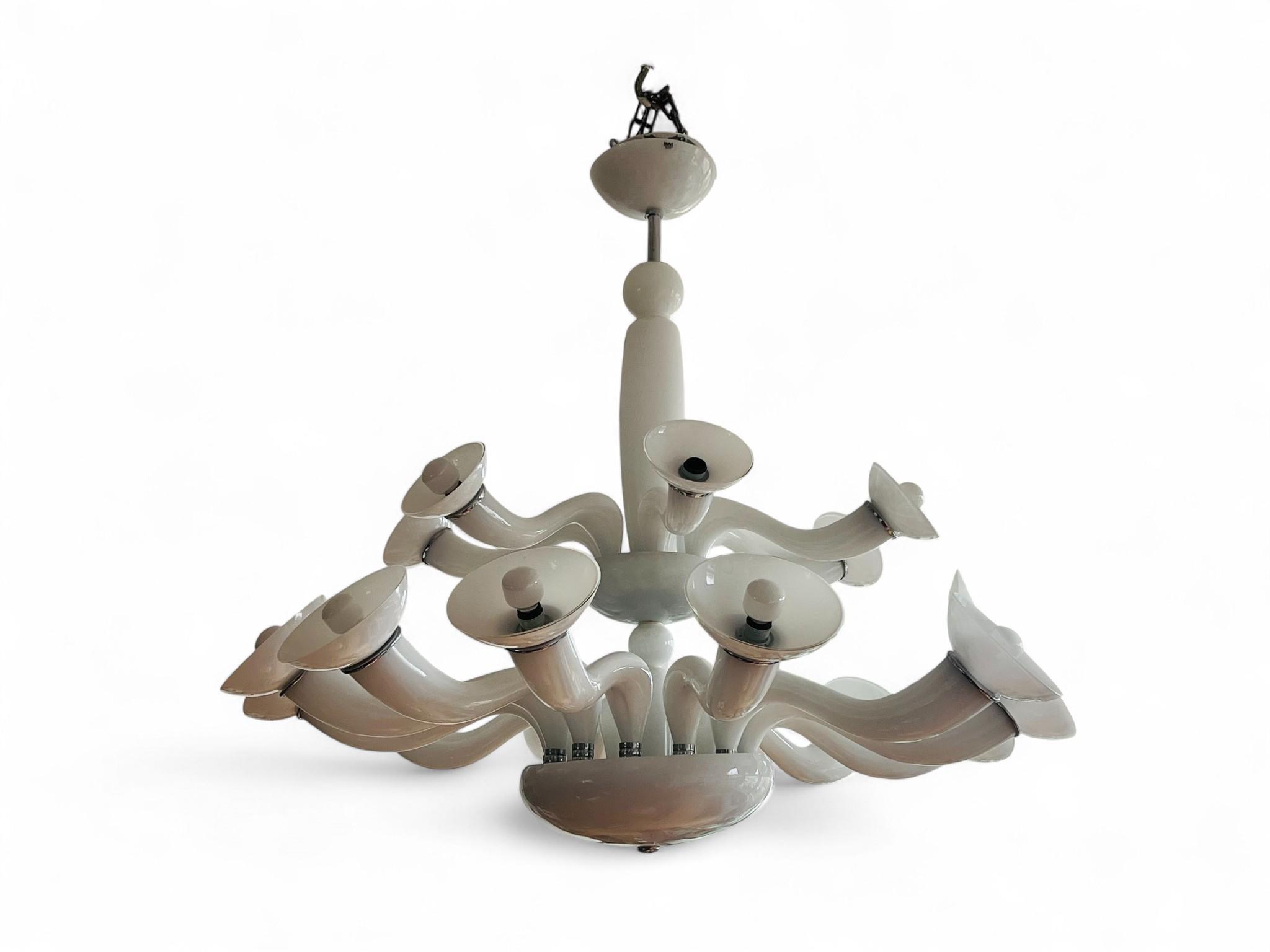 Ernesto Gismondi (1931-2010), wit glazen kroonluchter, 'Leda Sospensione' Artemide / Veart, 1992;