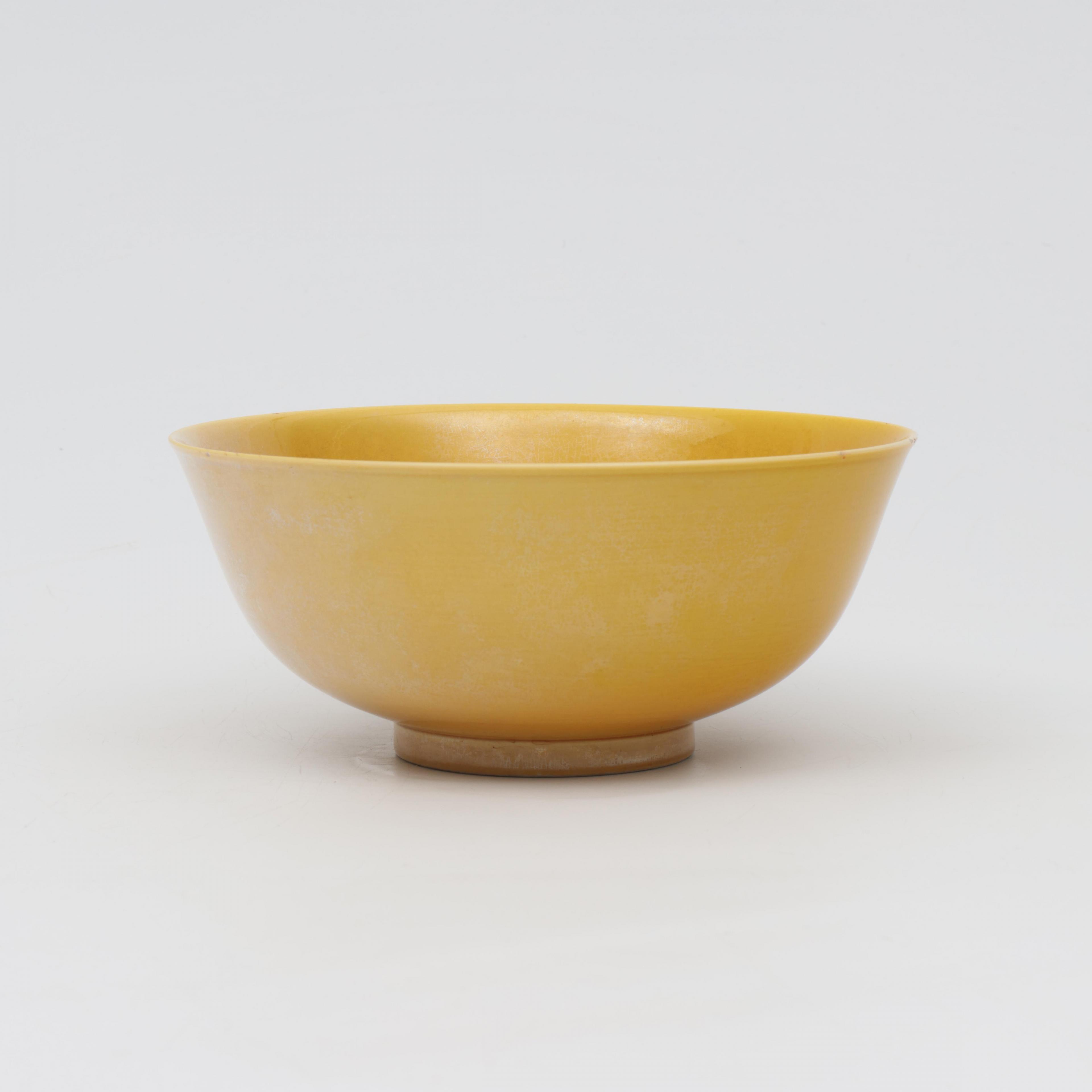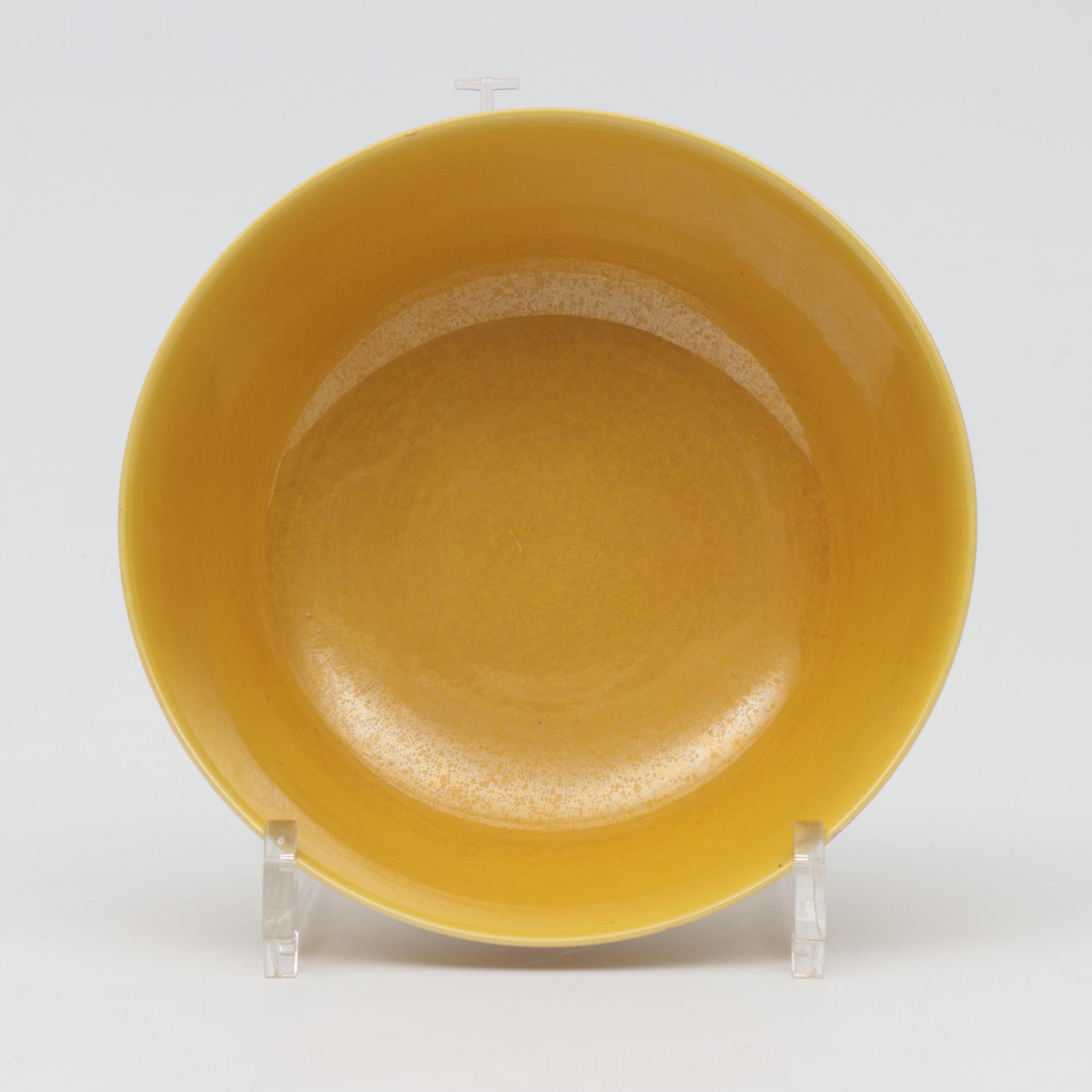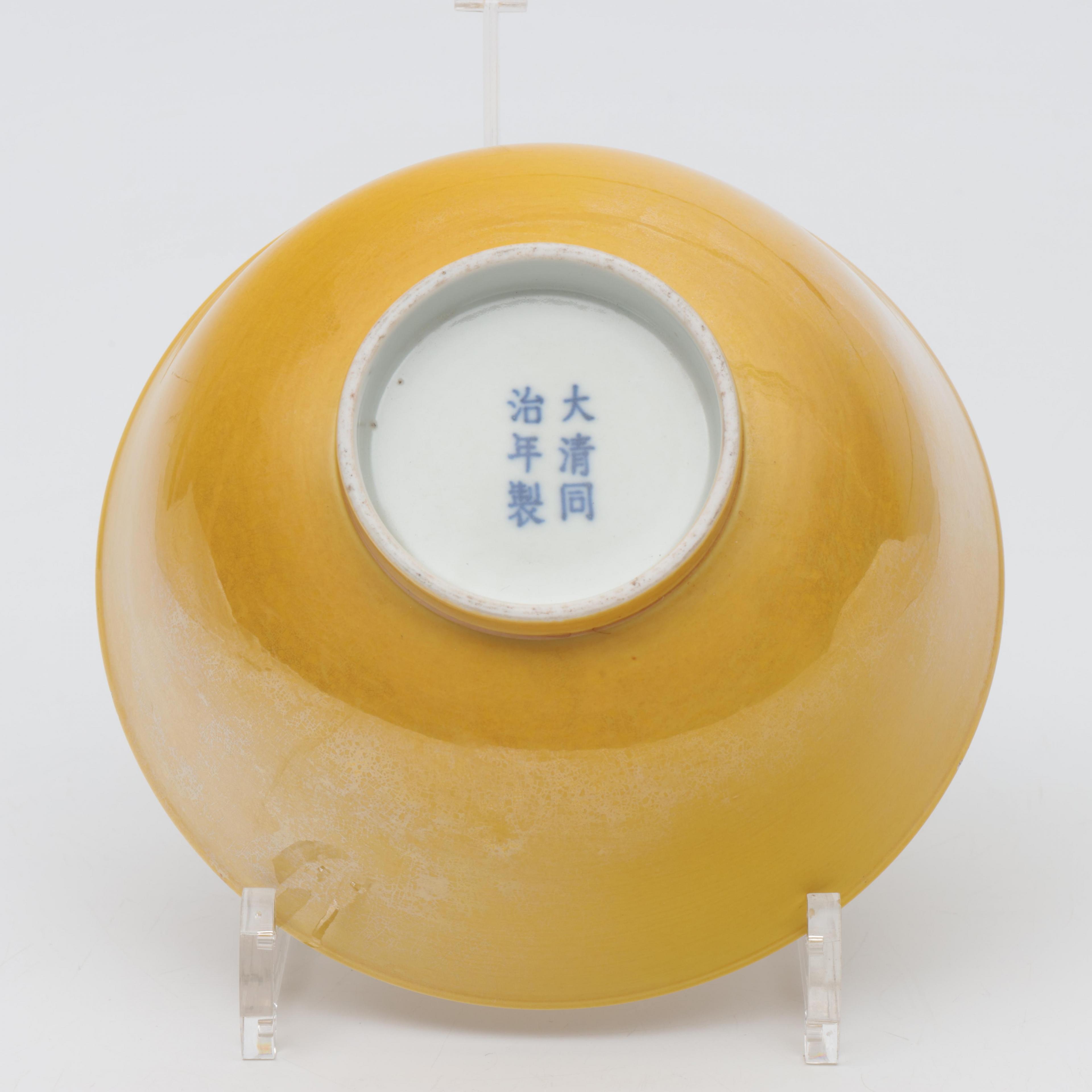 covered with a lemon-yellow glaze, the white-glazed base with an apocryphal Tongzhi mark