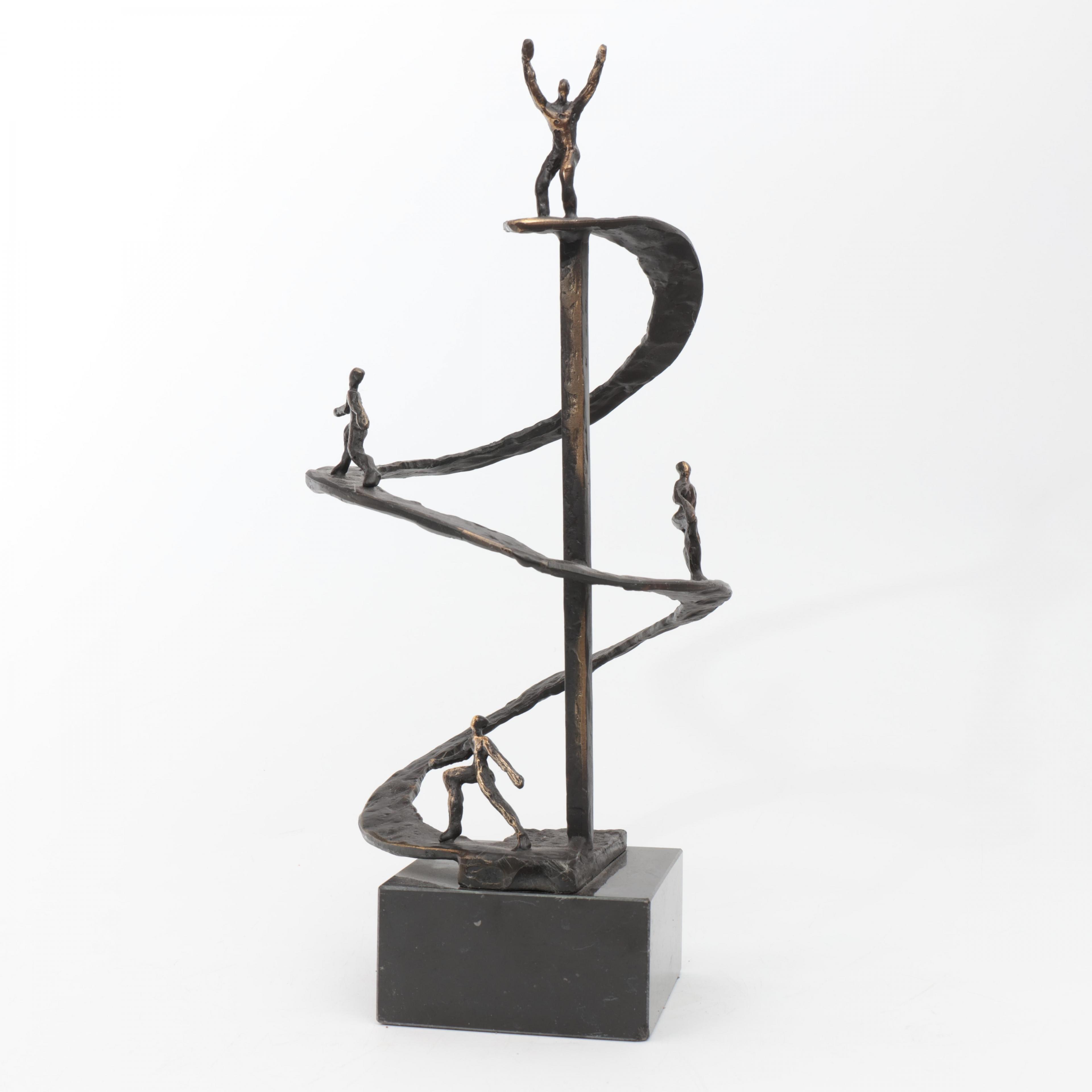 Ger van Tankeren, bruin gepatineerd bronzen sculptuur, 'Spiraal van Succes';