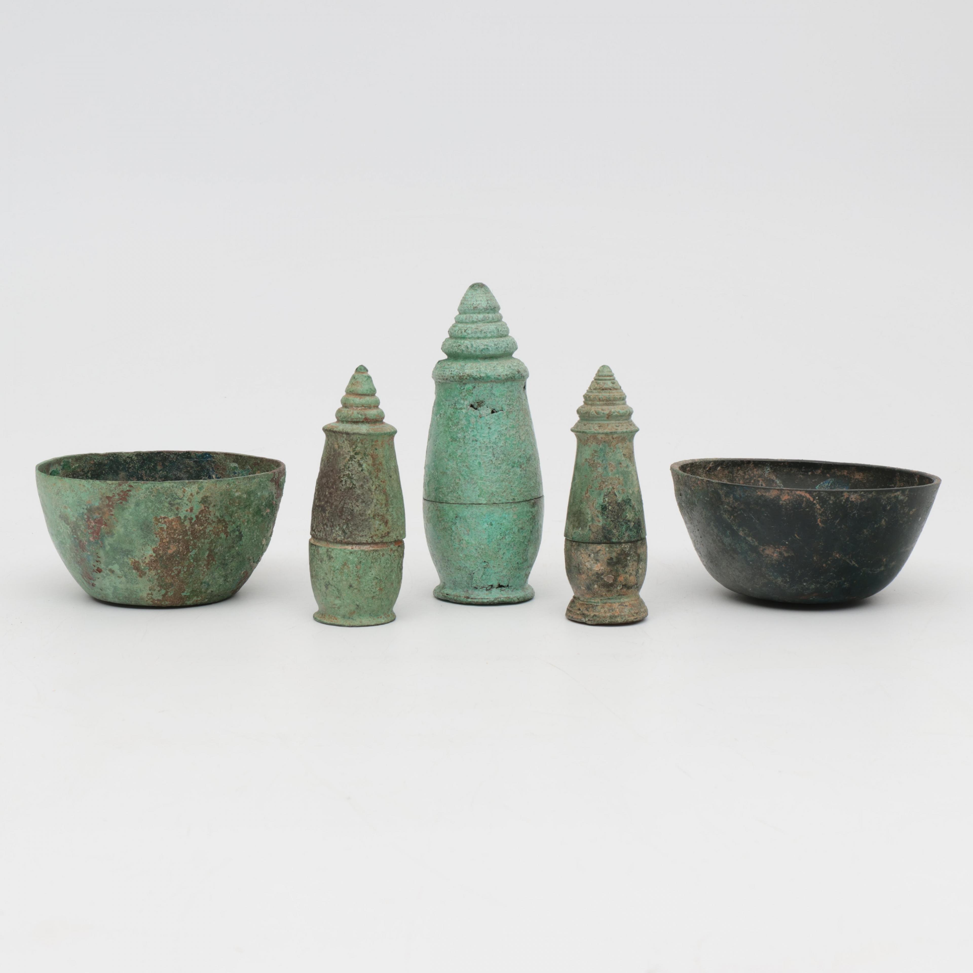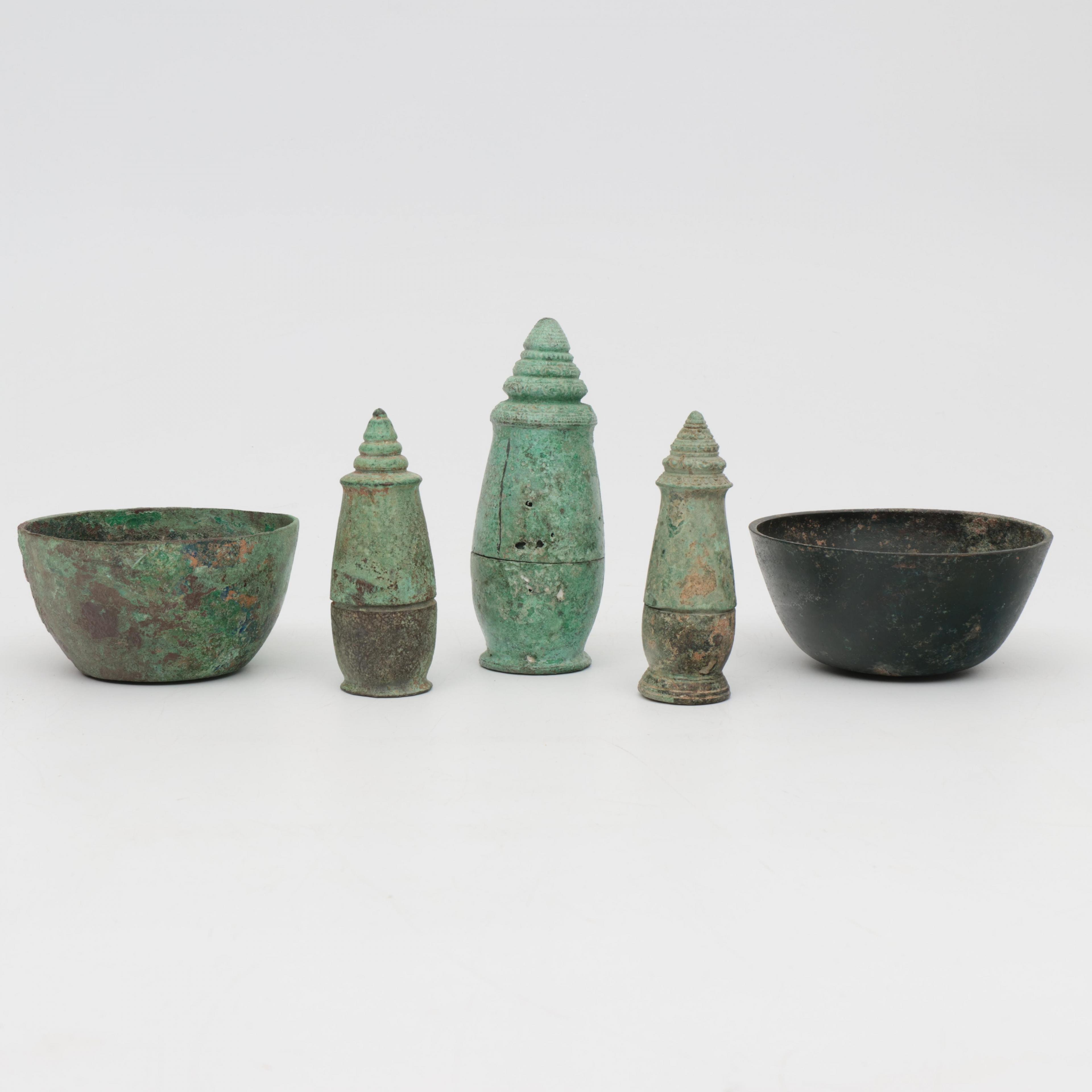 Thailand, a small collection of bronze objects, 15th century or later,