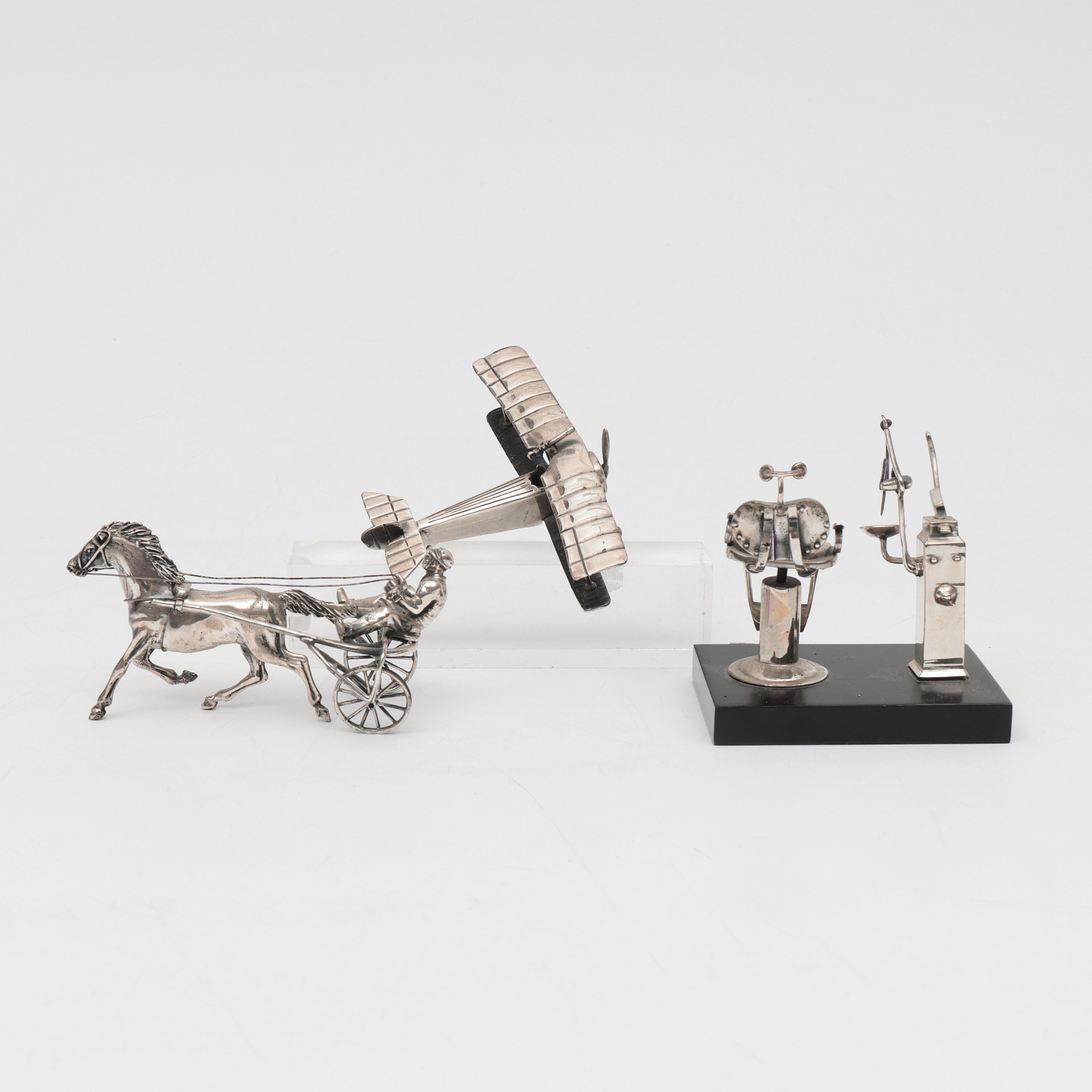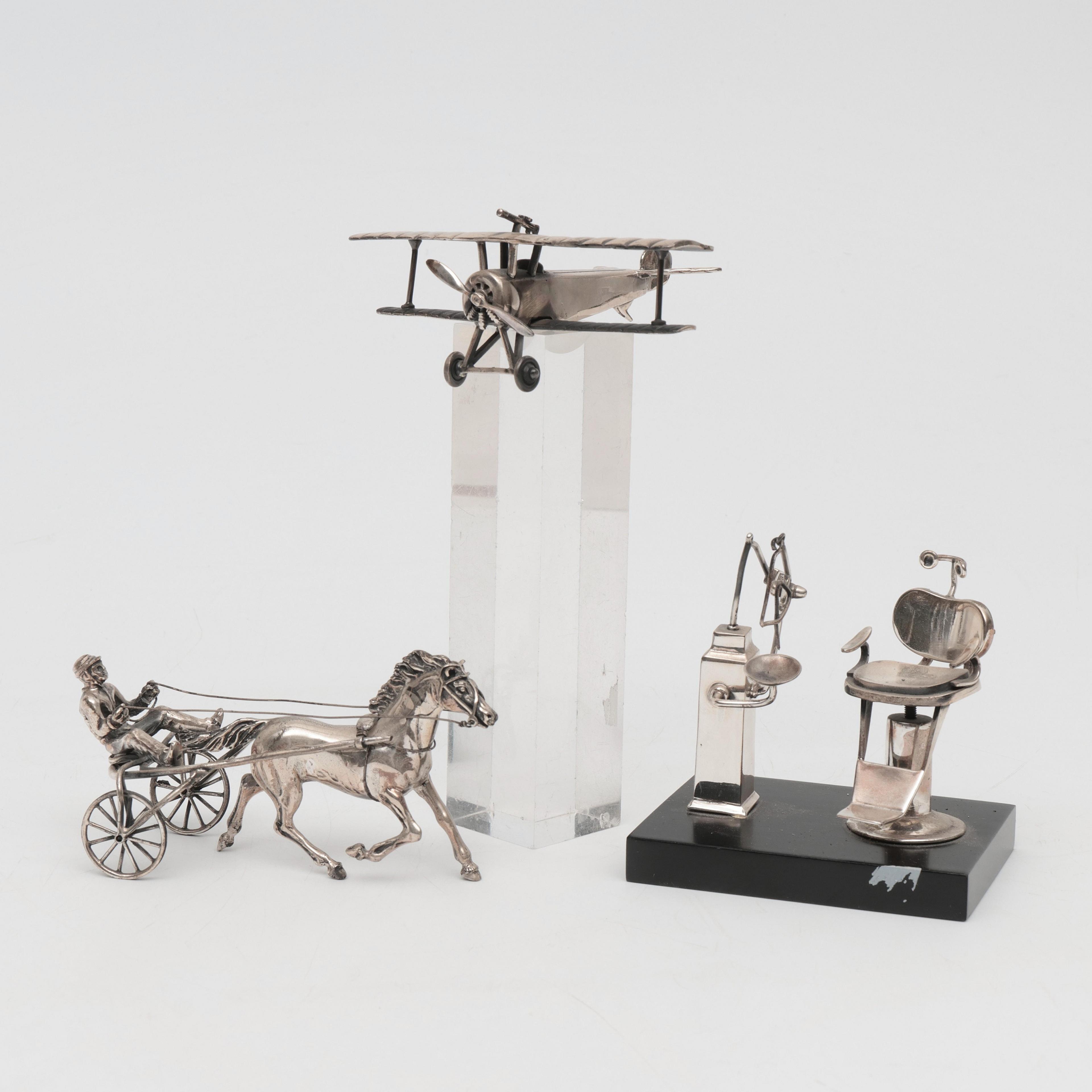 Tandartsstoel, vliegtuig en sulky. Draagt stempel 925.