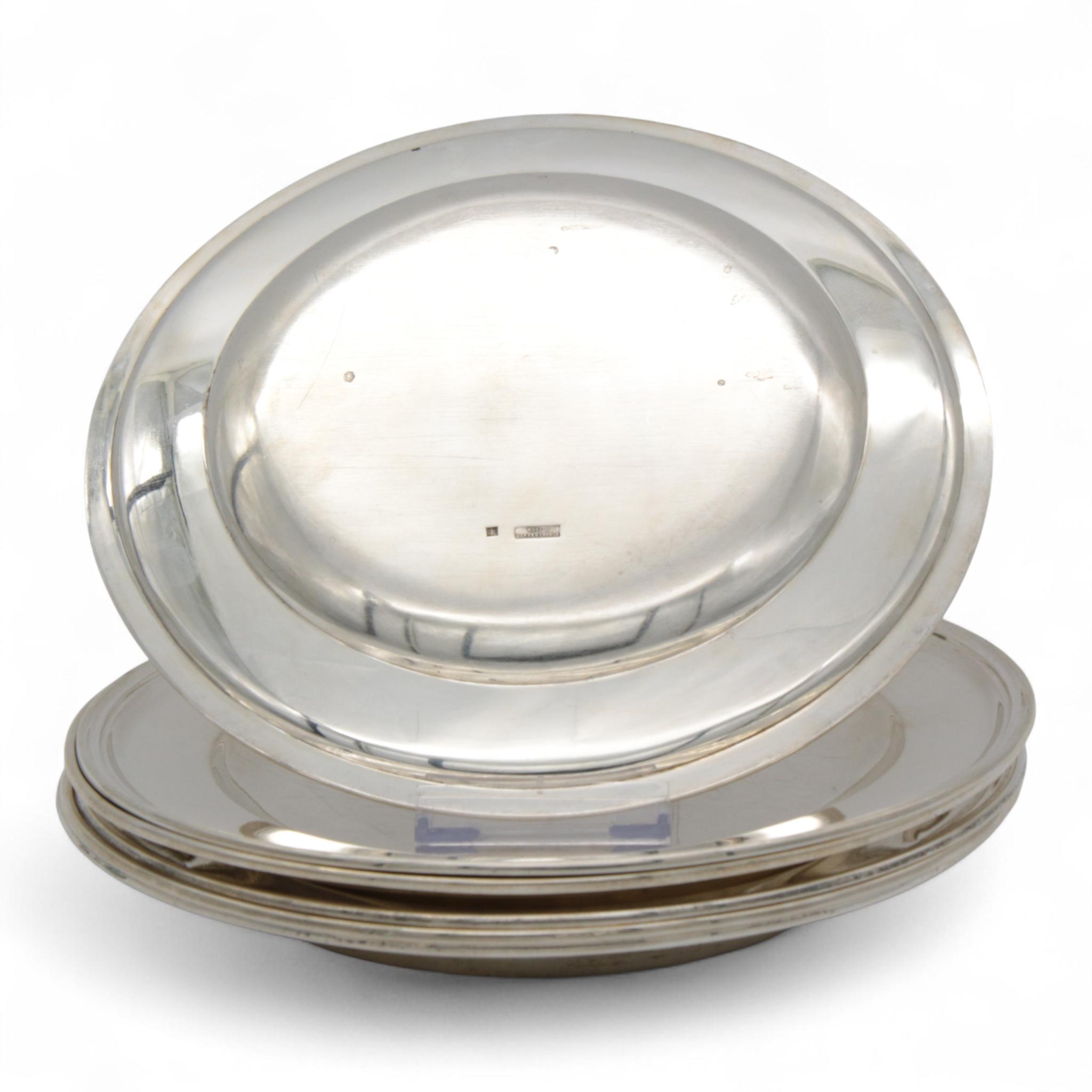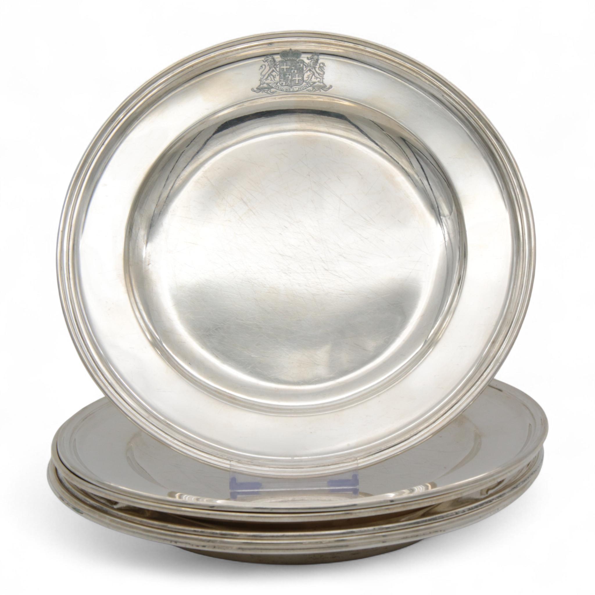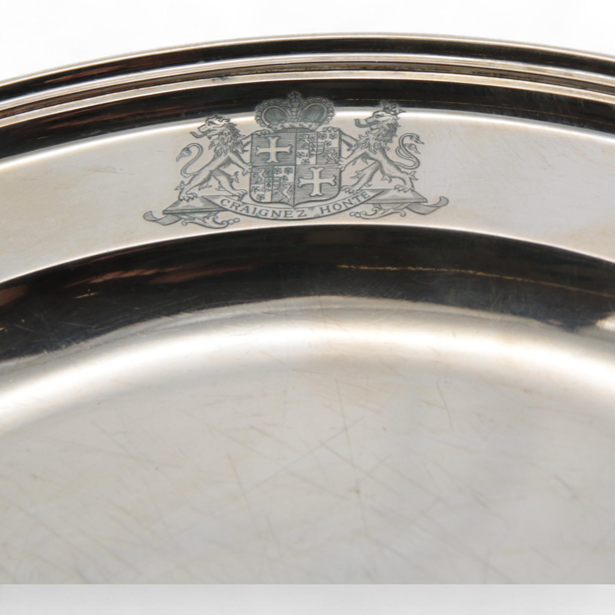 ronde diep borden met filetrand en wapengravure familie Bentinck met tekst "craignez honte", mt. Fa. Bonebakker Jzn., Amsterdam 1918, winkeliersmerk Bonebakker Amsterdam, 2e gehalte,