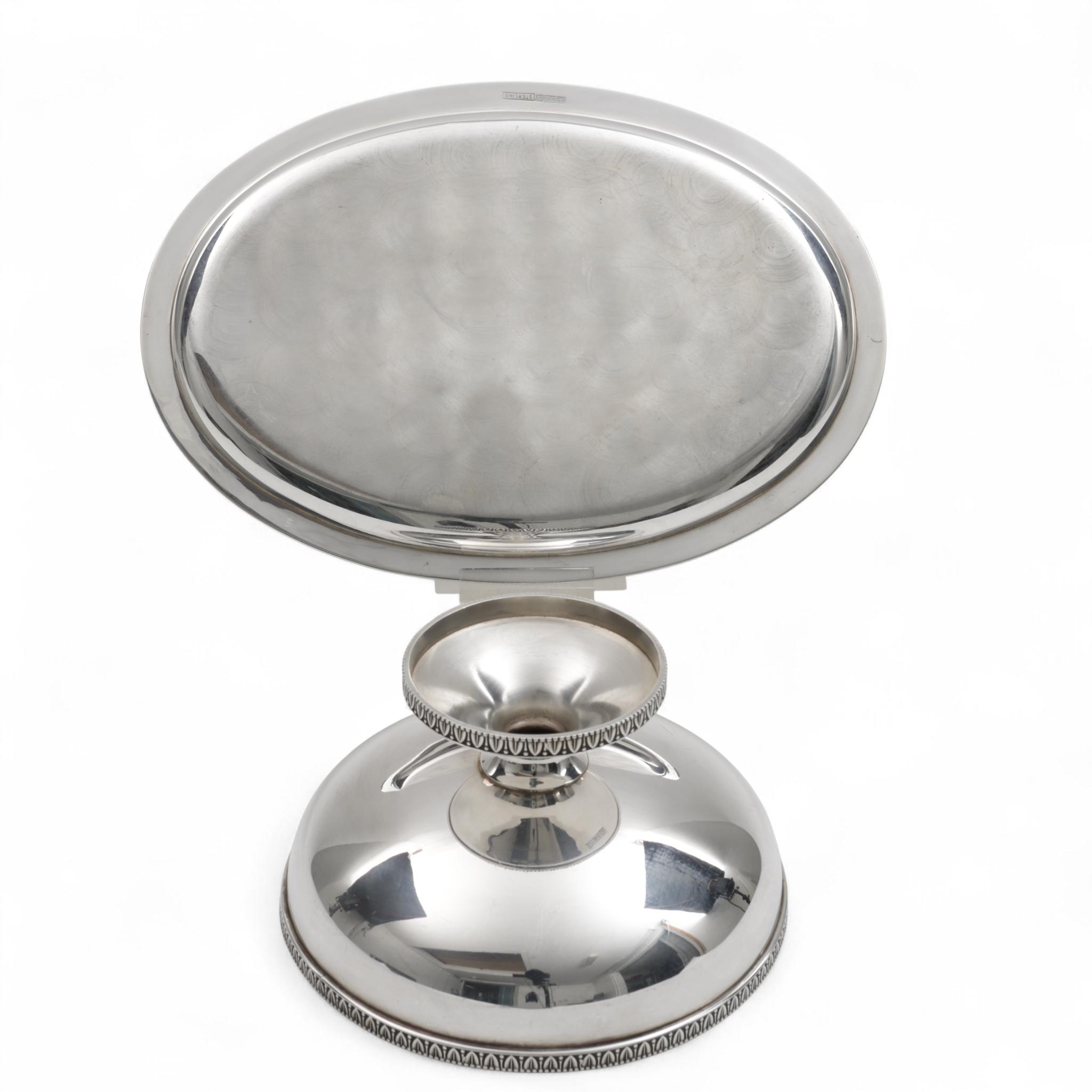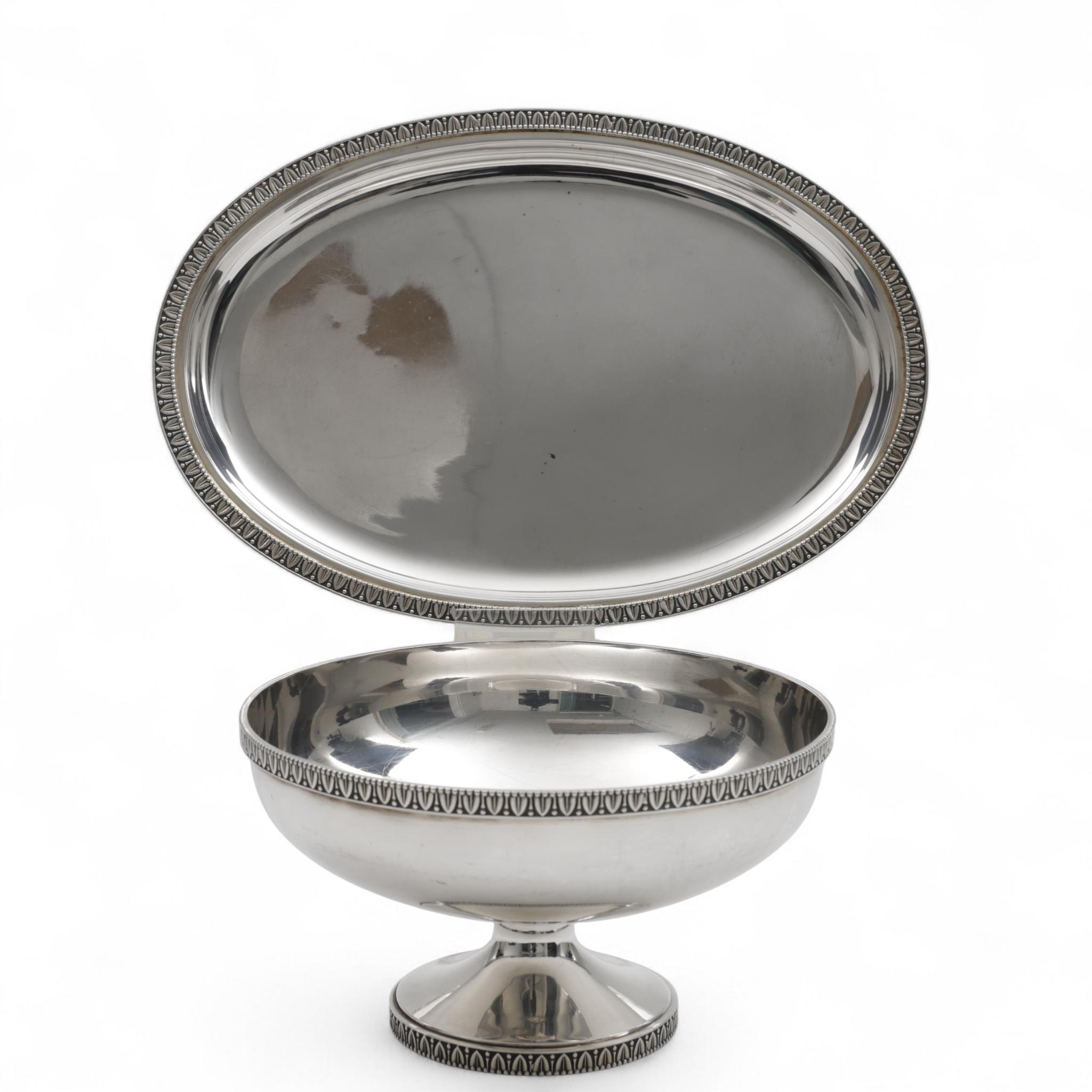 ronde kom op voet en ovaal blad, beide versierd met palmetrandband, mt. Otto Wolter Schwäbisch Gmünd 1875-1991, sterling gemerkt, 1e gehalte,