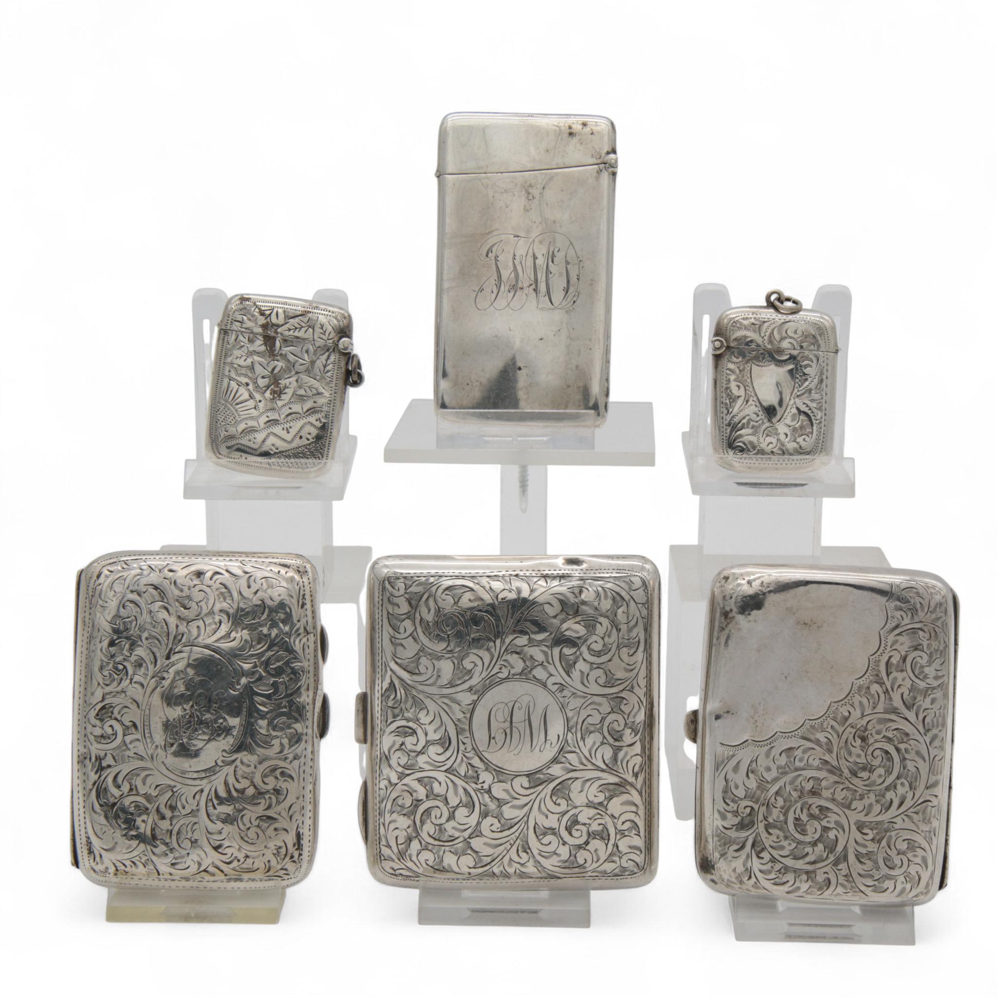 Engeland, drie diverse sigarettendoosjes, visitekaarthouder en twee zwavelstokdoosjes, ca. 1900,