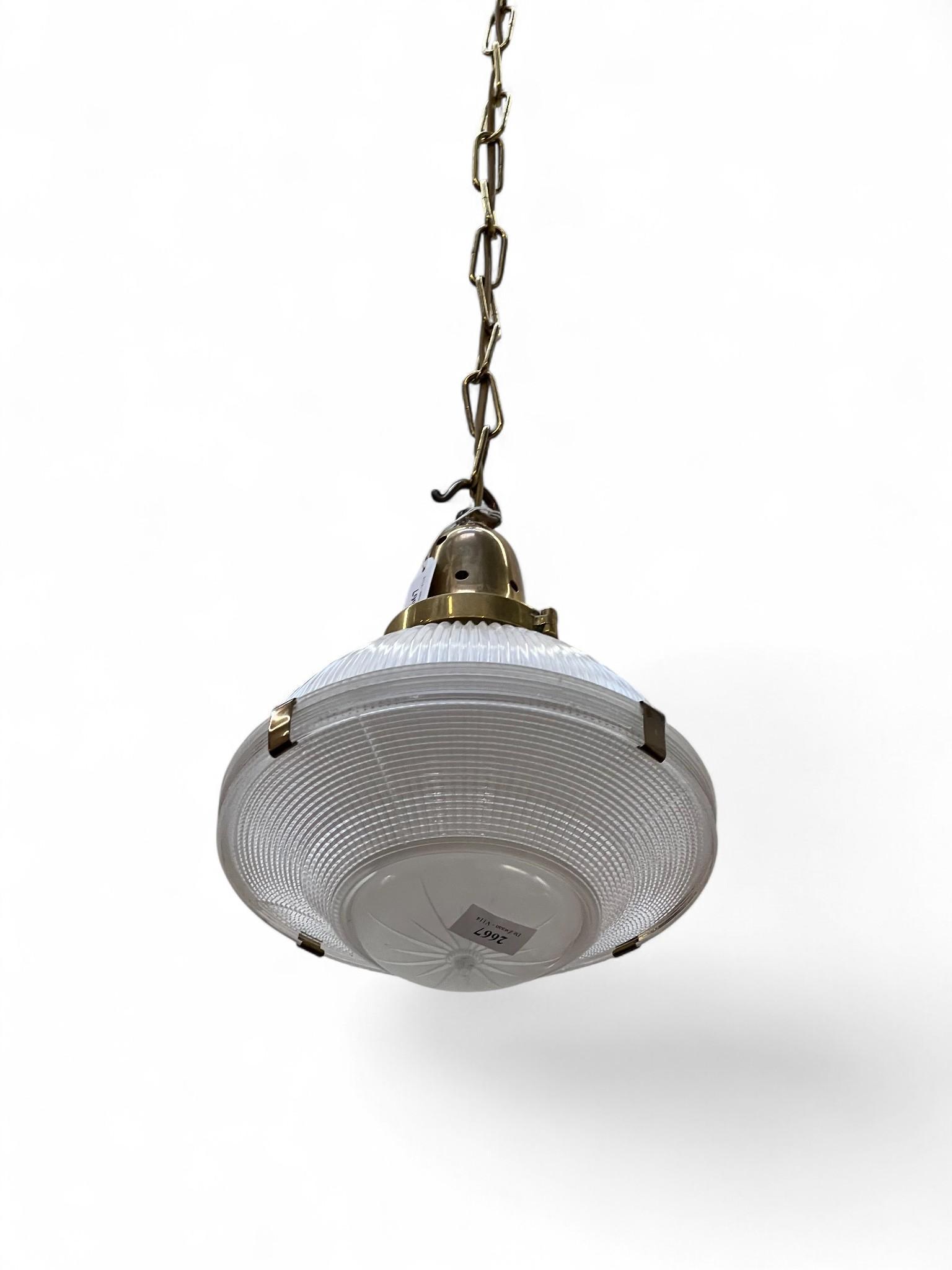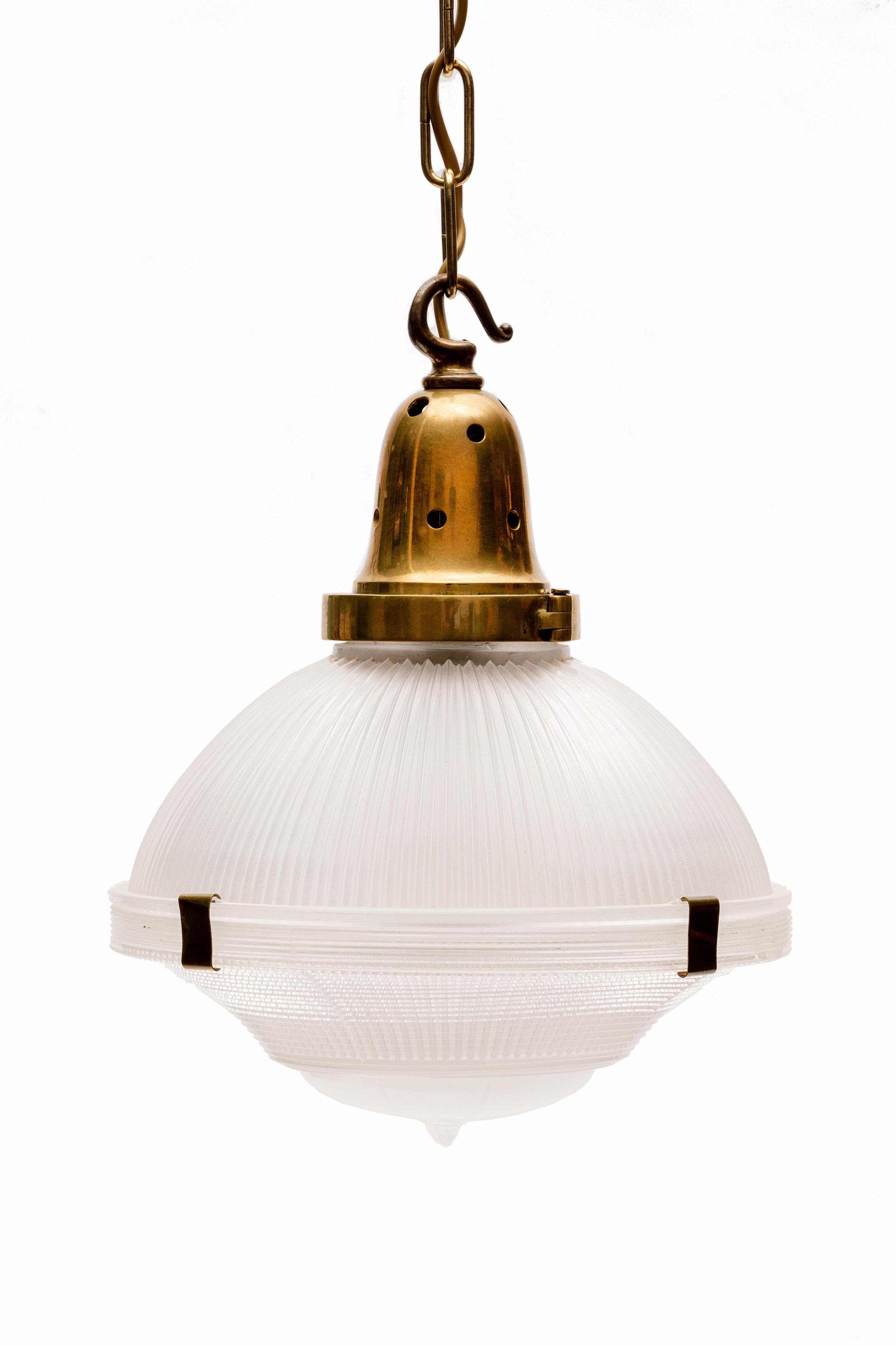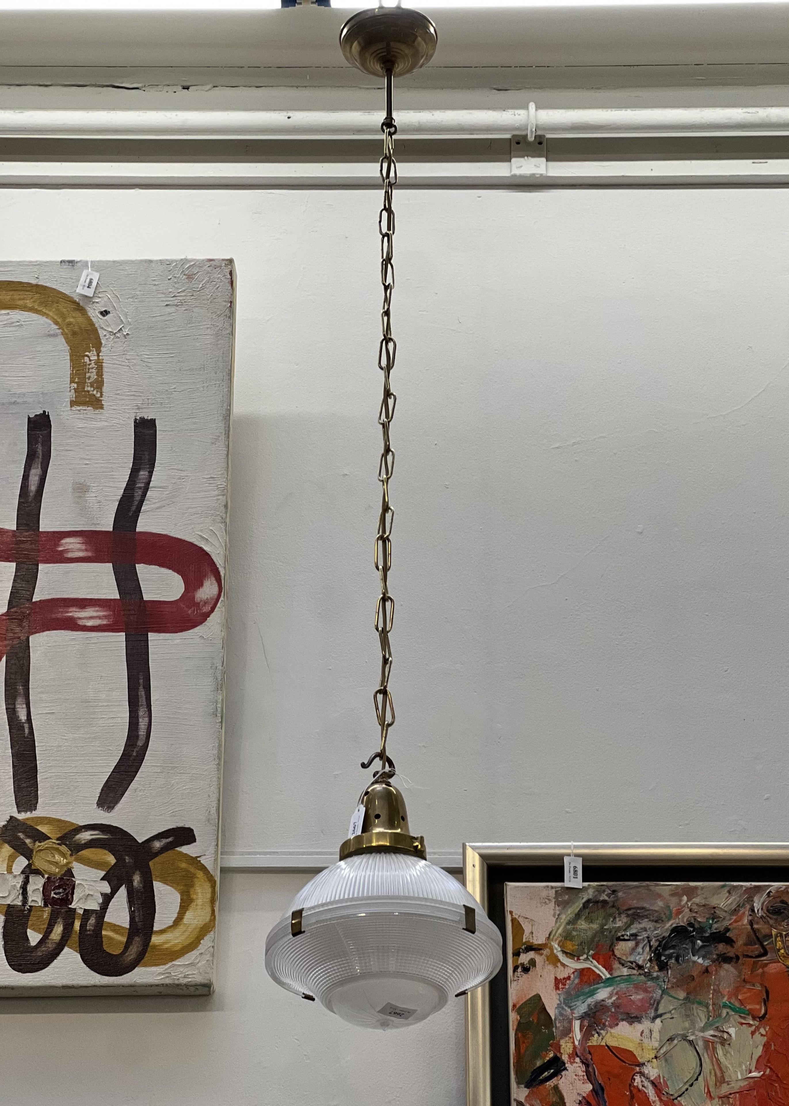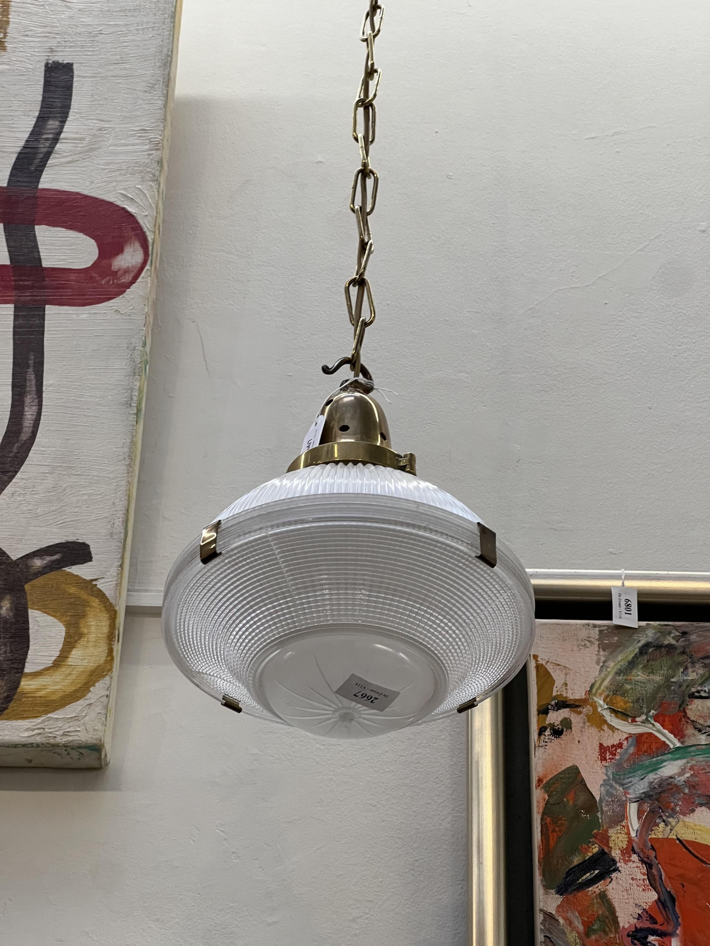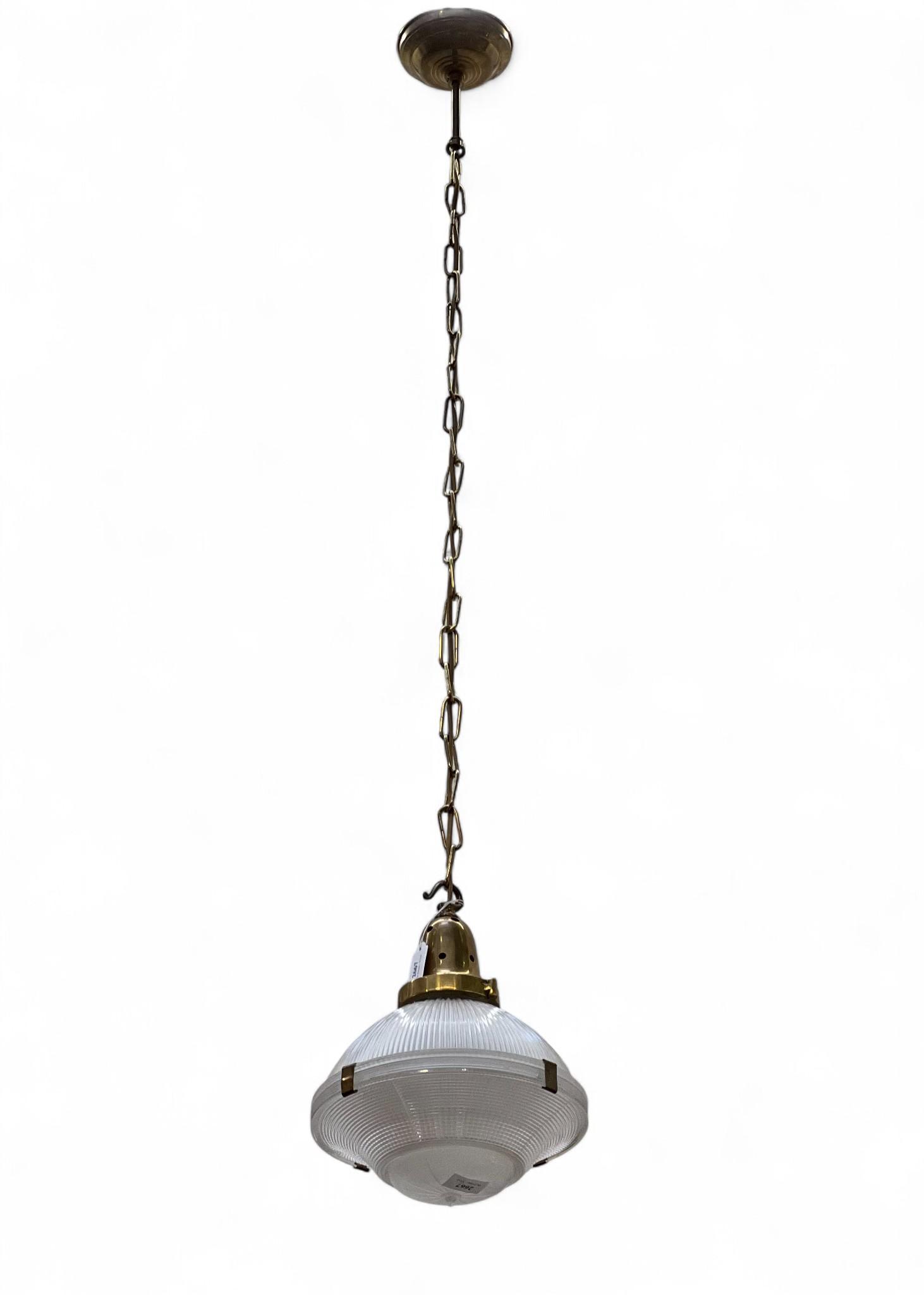 Holophane, persglazen hanglamp met messing montering, 20e eeuw;