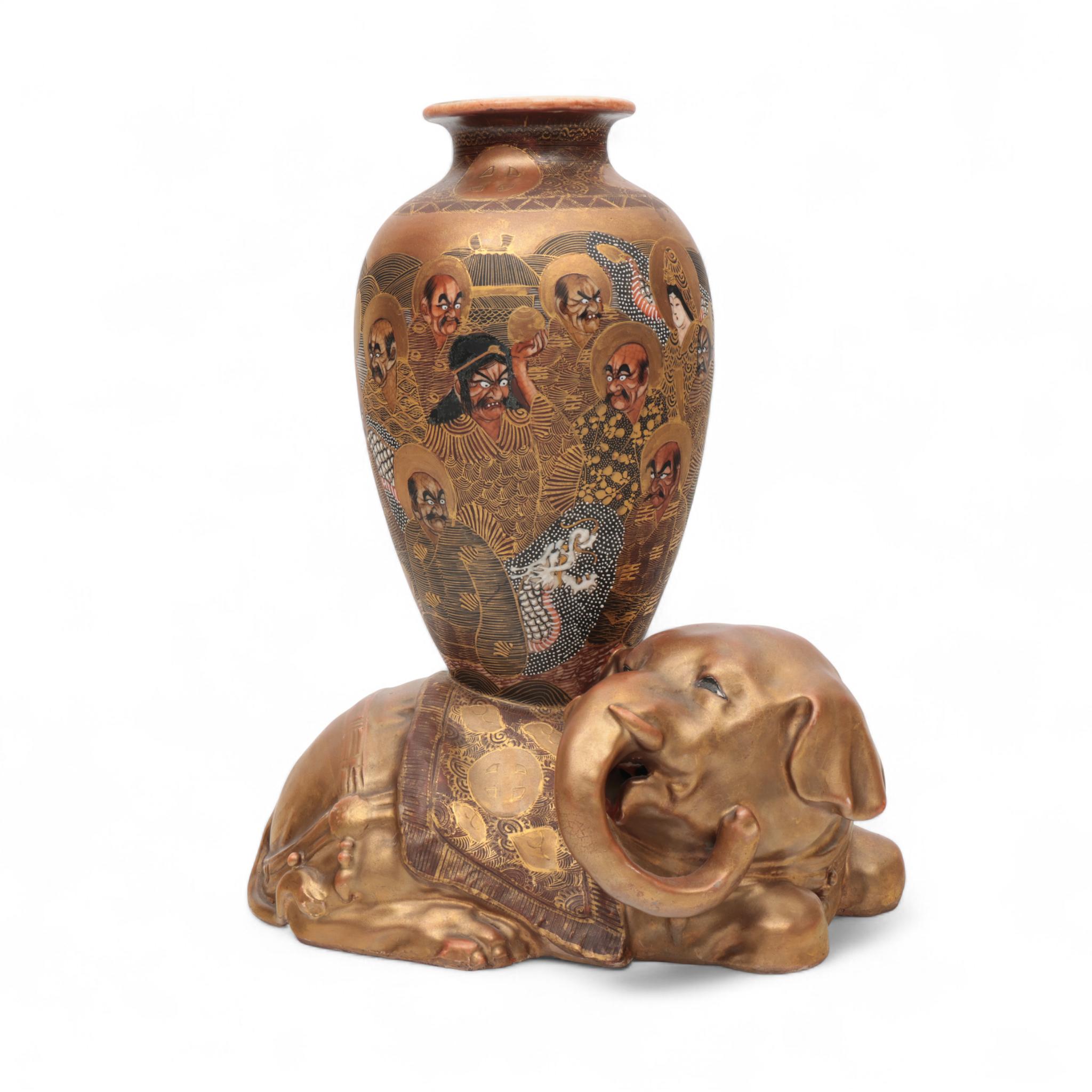modelled on top of a reclining elephant, the base signed