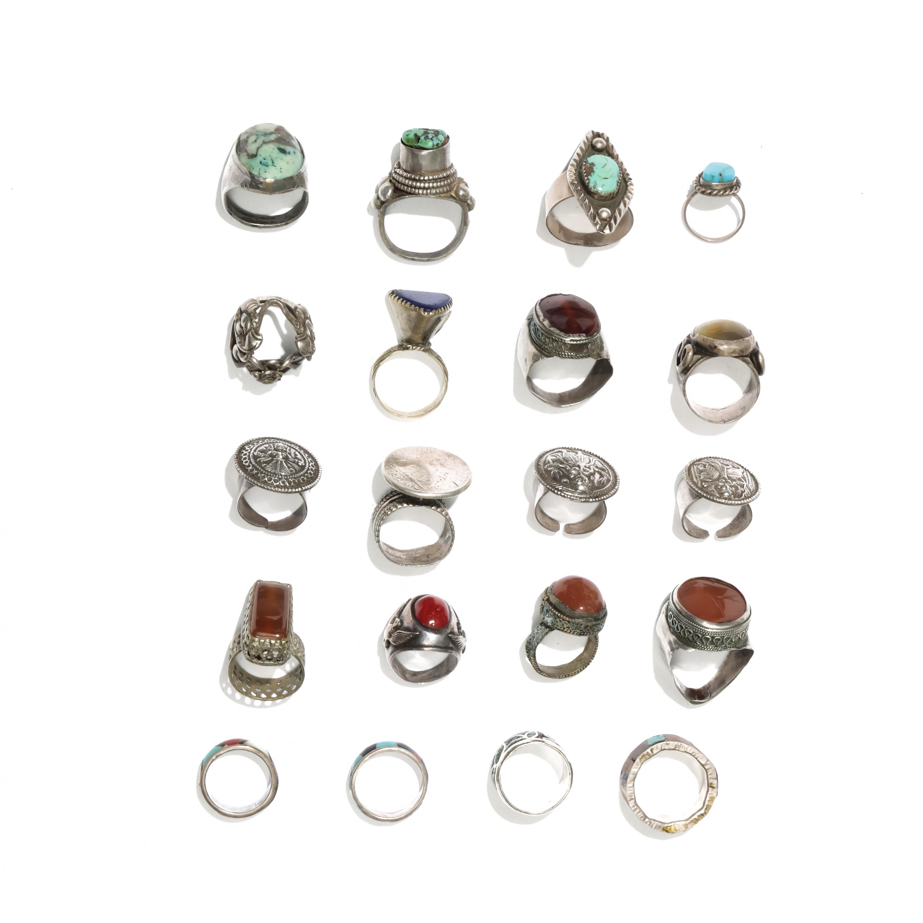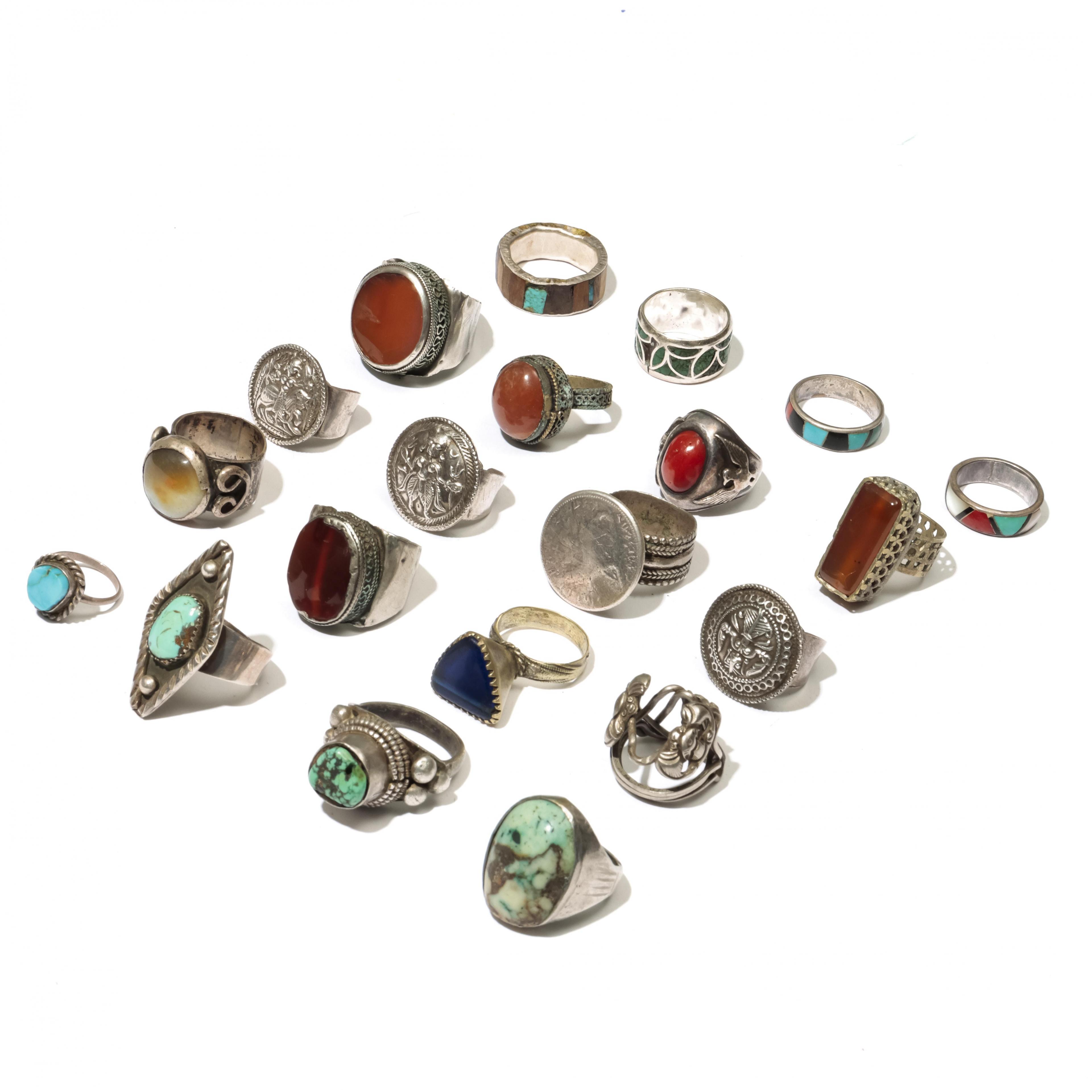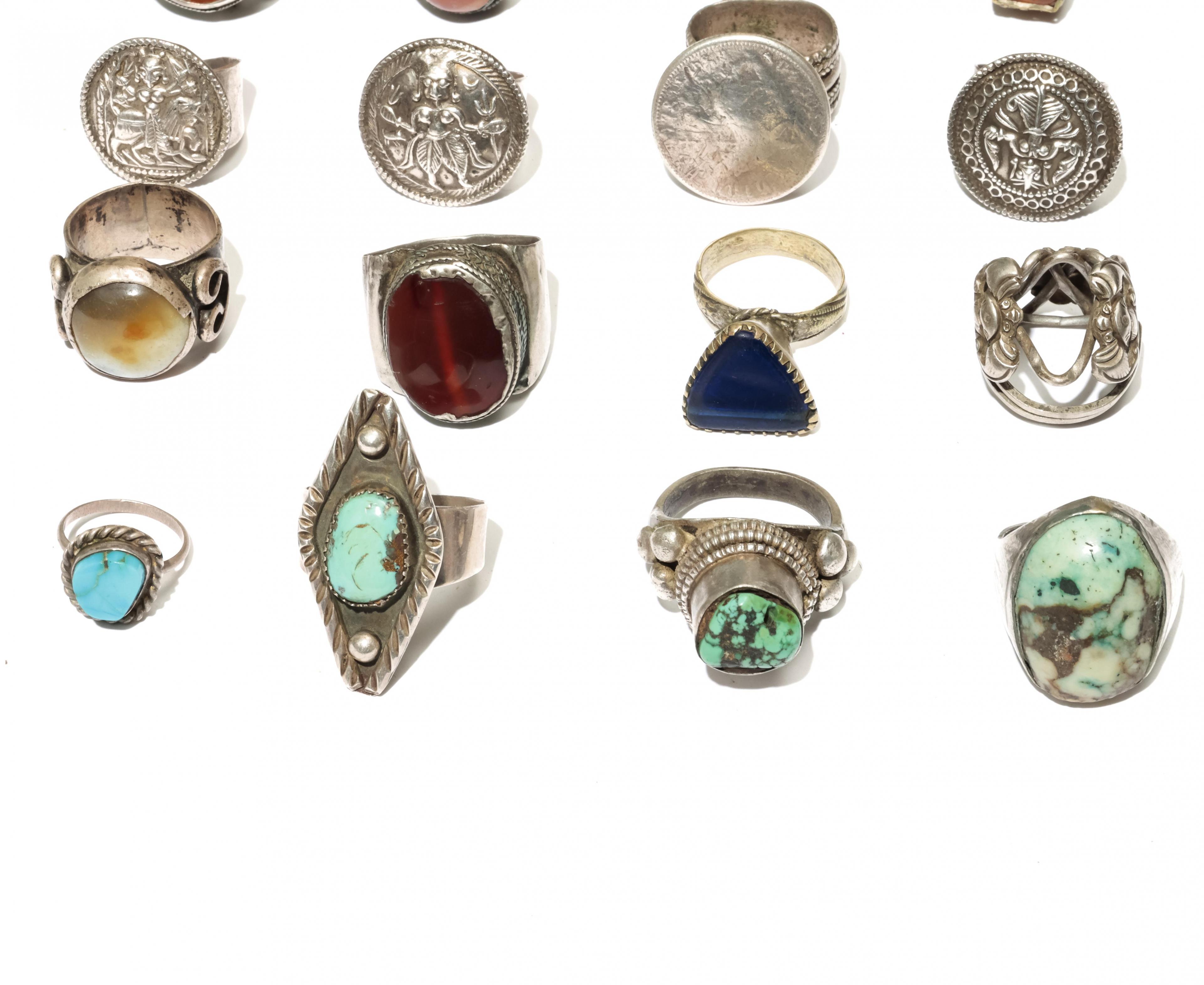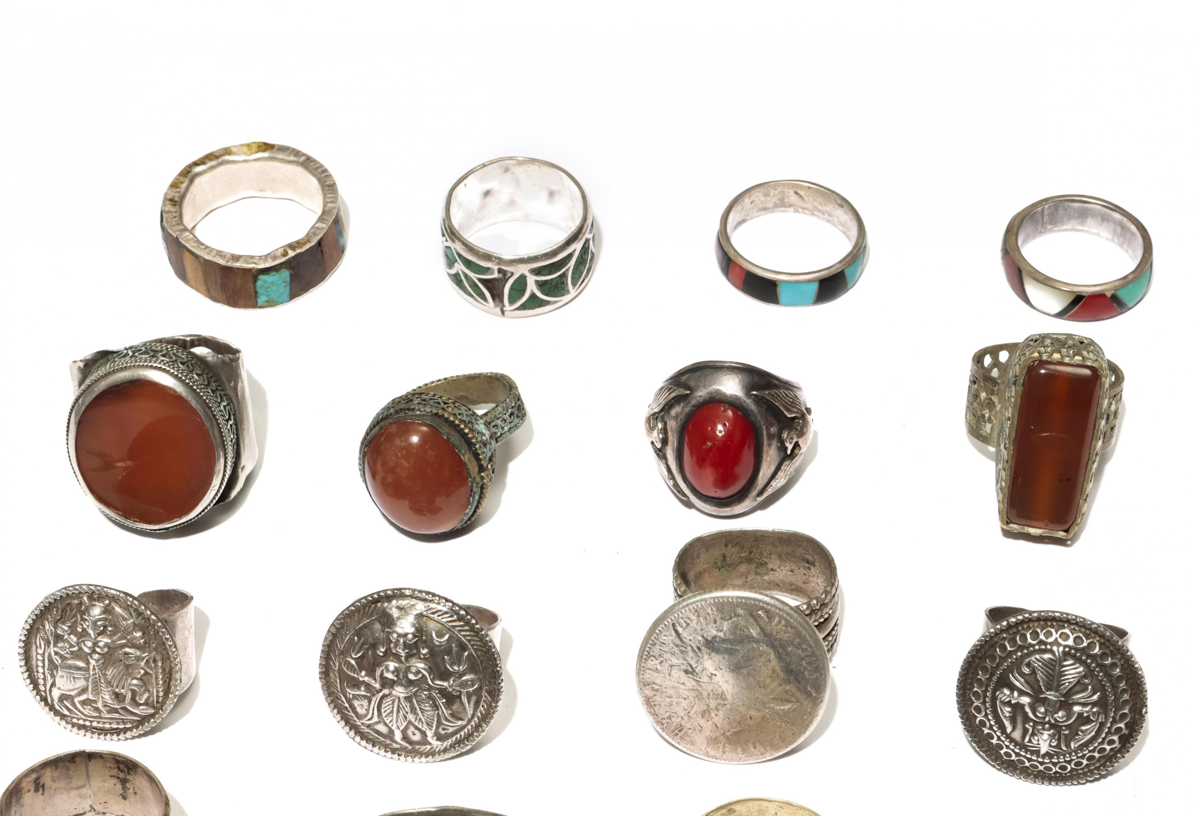 South East Asia - Tibet, a collection of various silver and metal alloy rings.