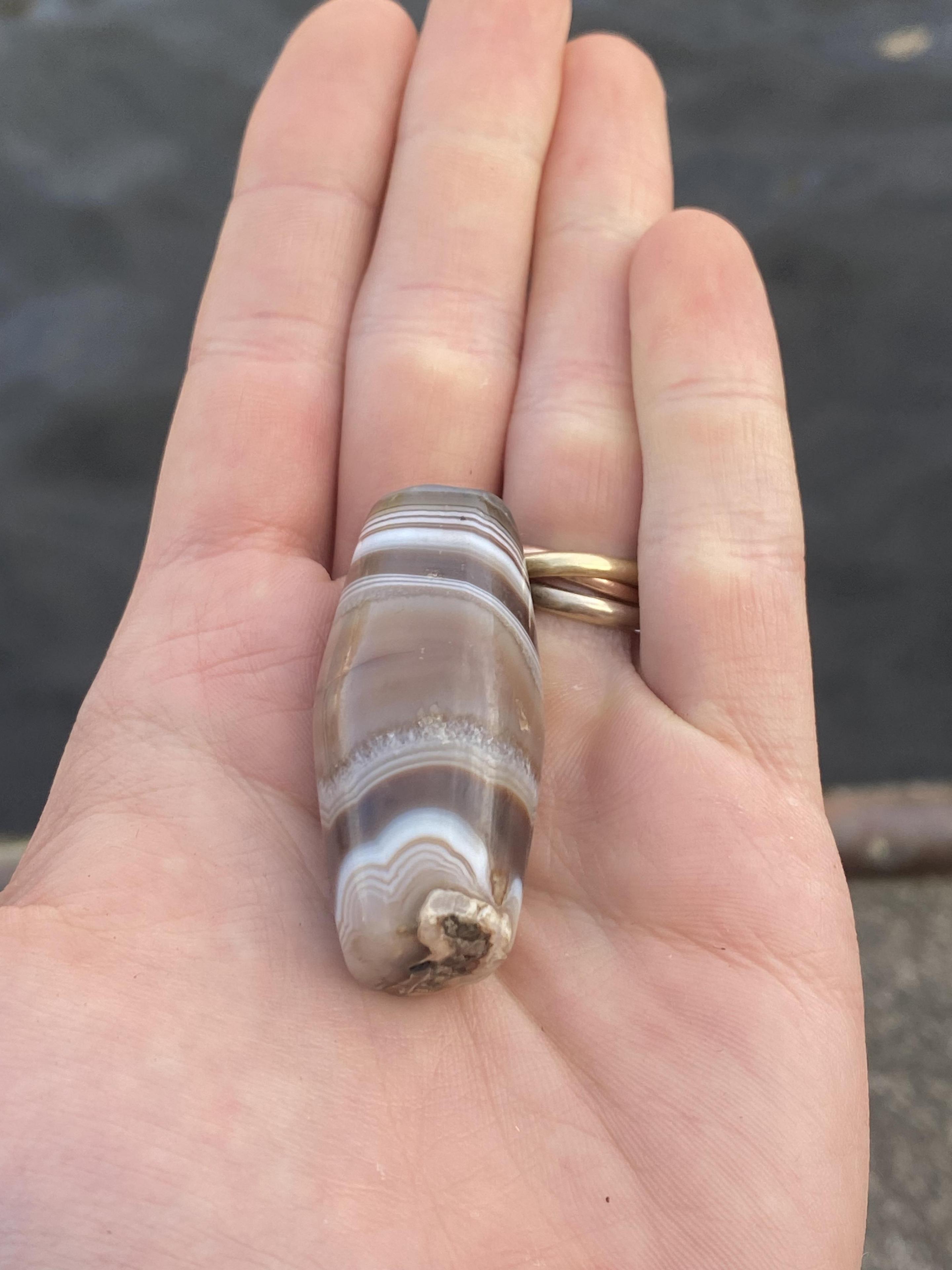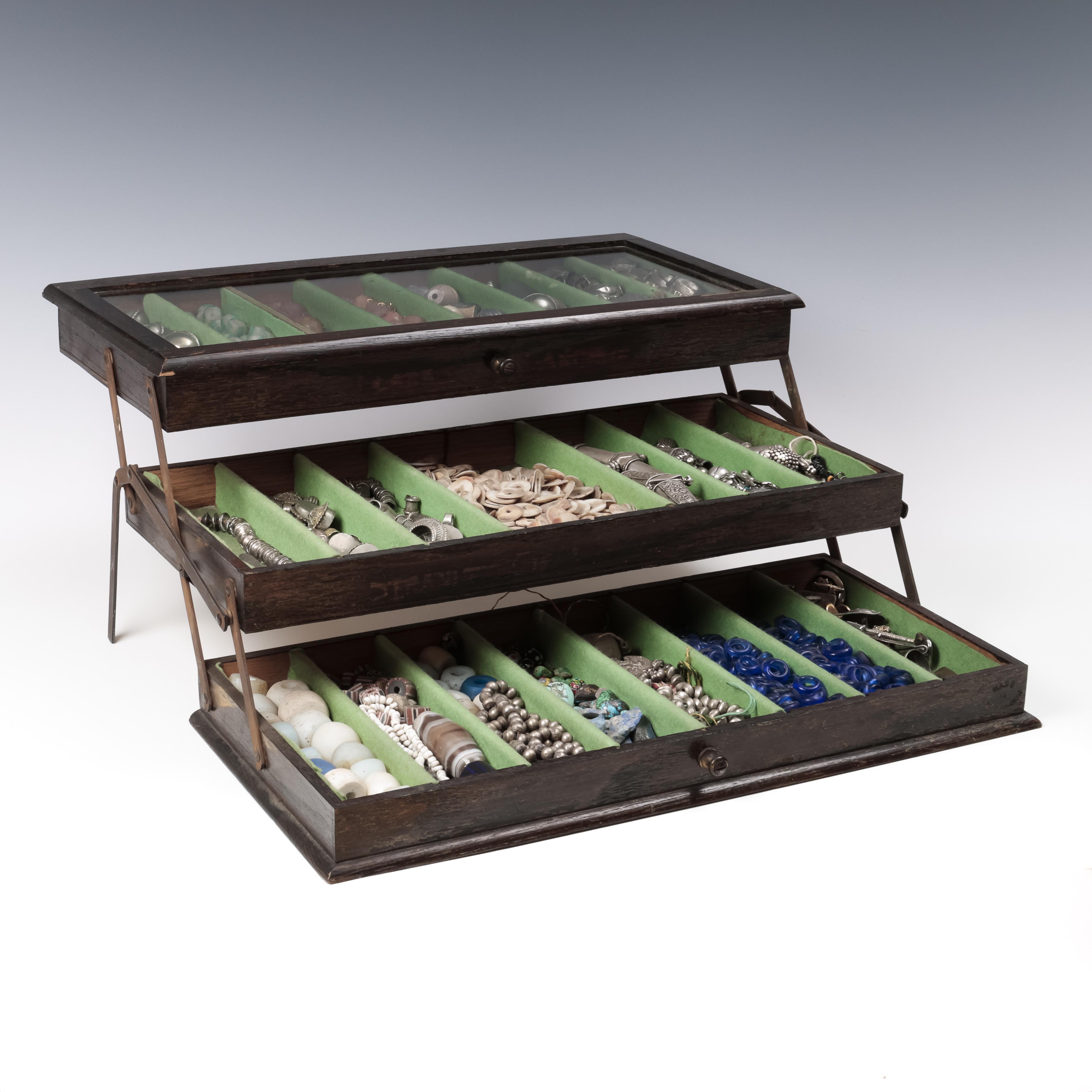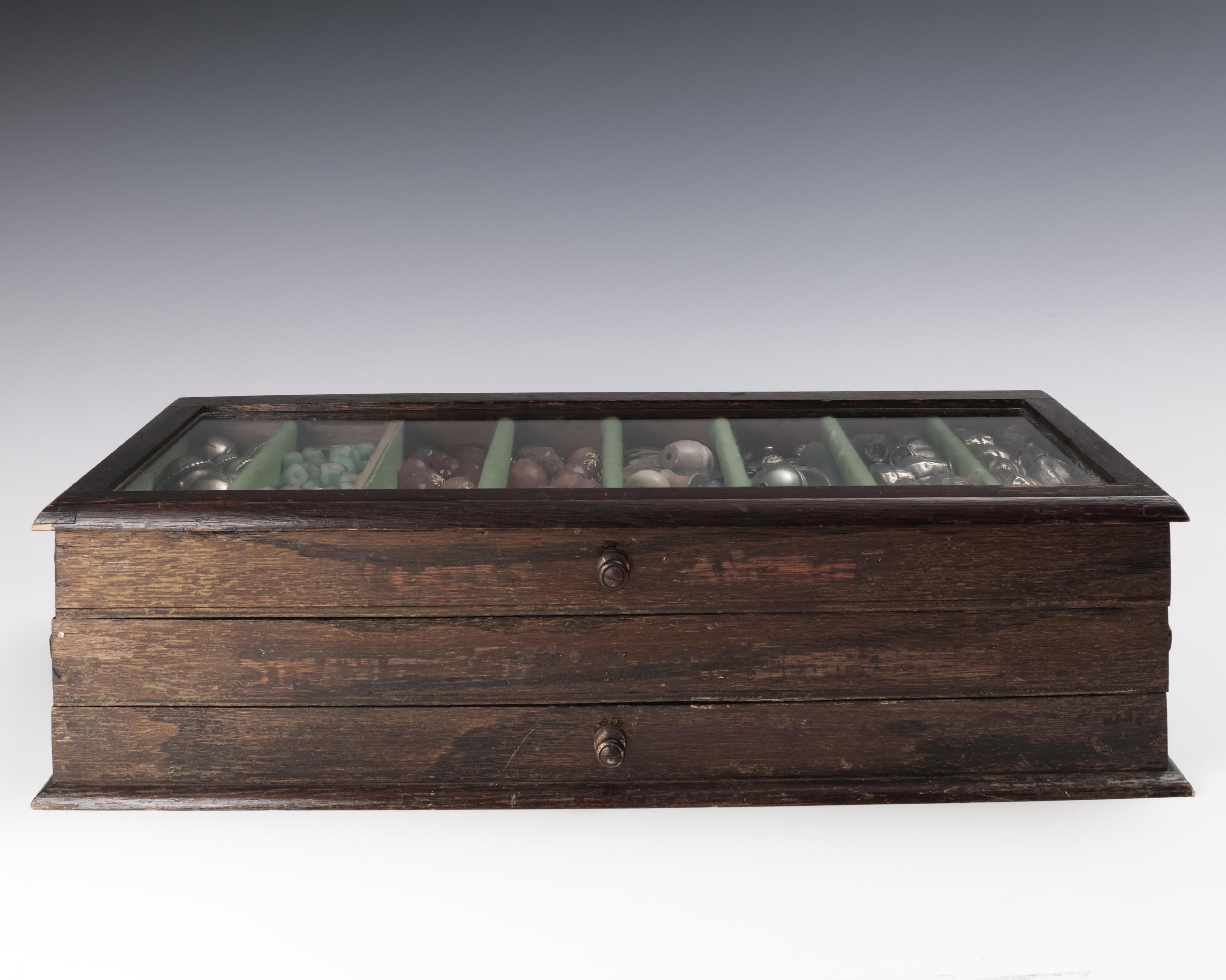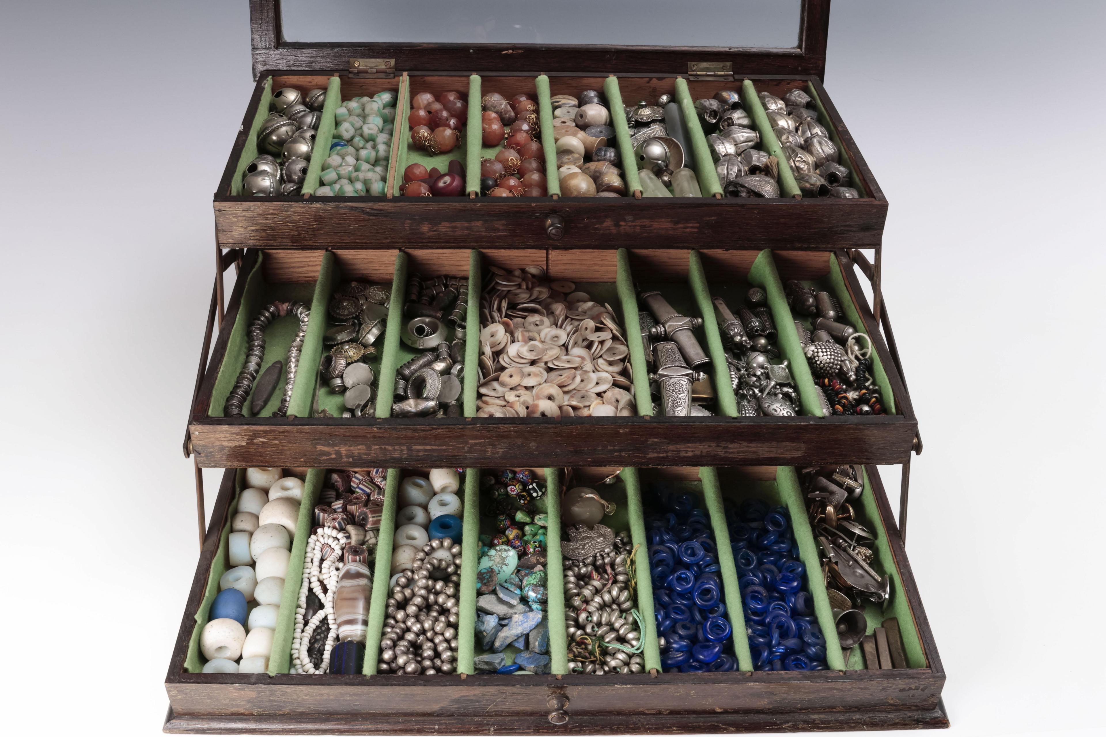 filled with a varied and plentiful collection of beads, amulets, chains, hand chisels and other items.