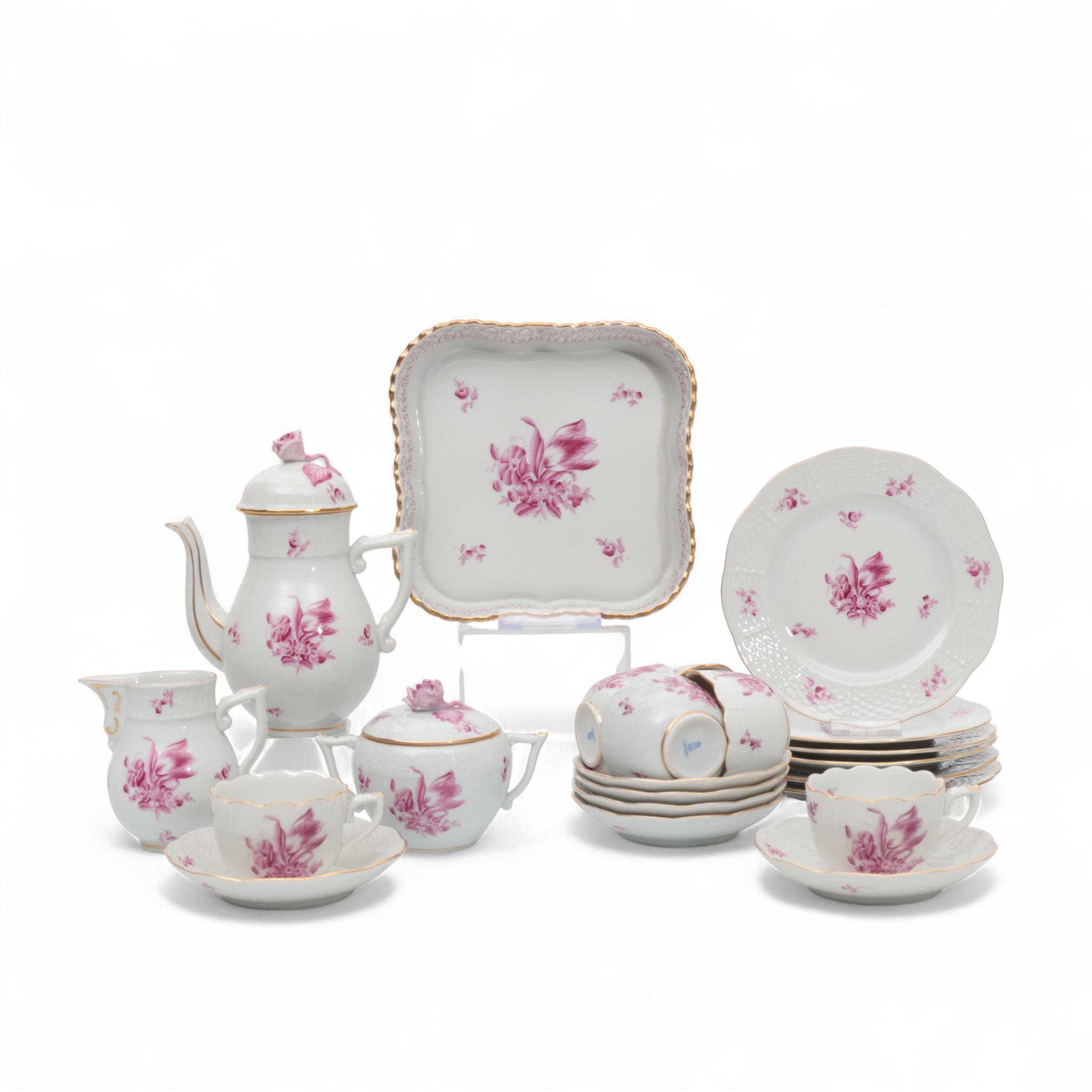Herend, wit roze mokkaservies, 'Bouquet de Tulipe Purpur', 20e eeuw';