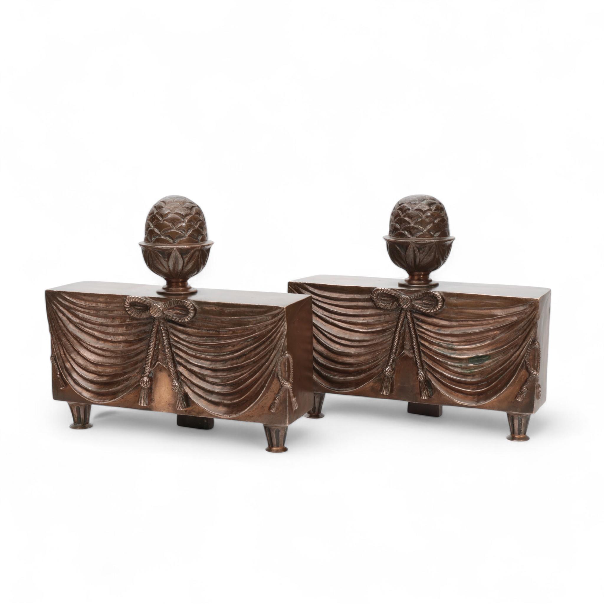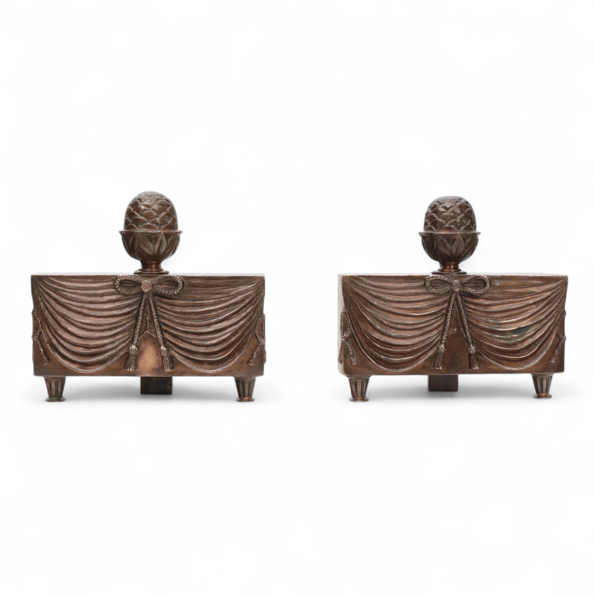 Paar gegoten koperen haardventers, Louis XVI stijl, 20e eeuw;