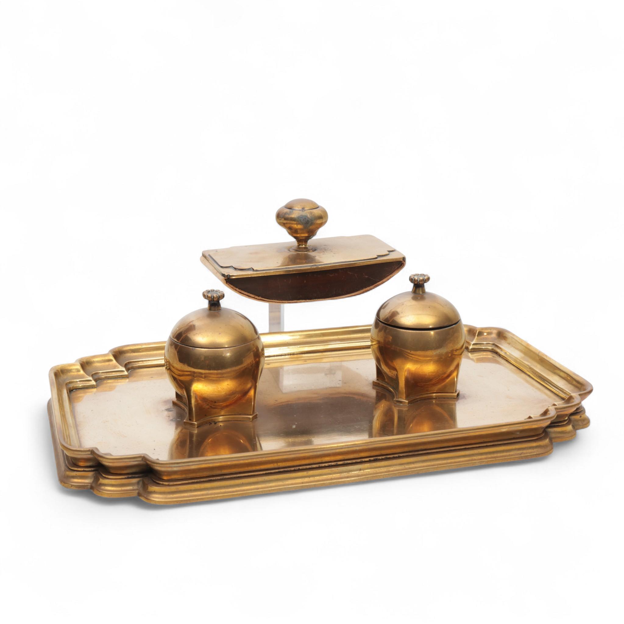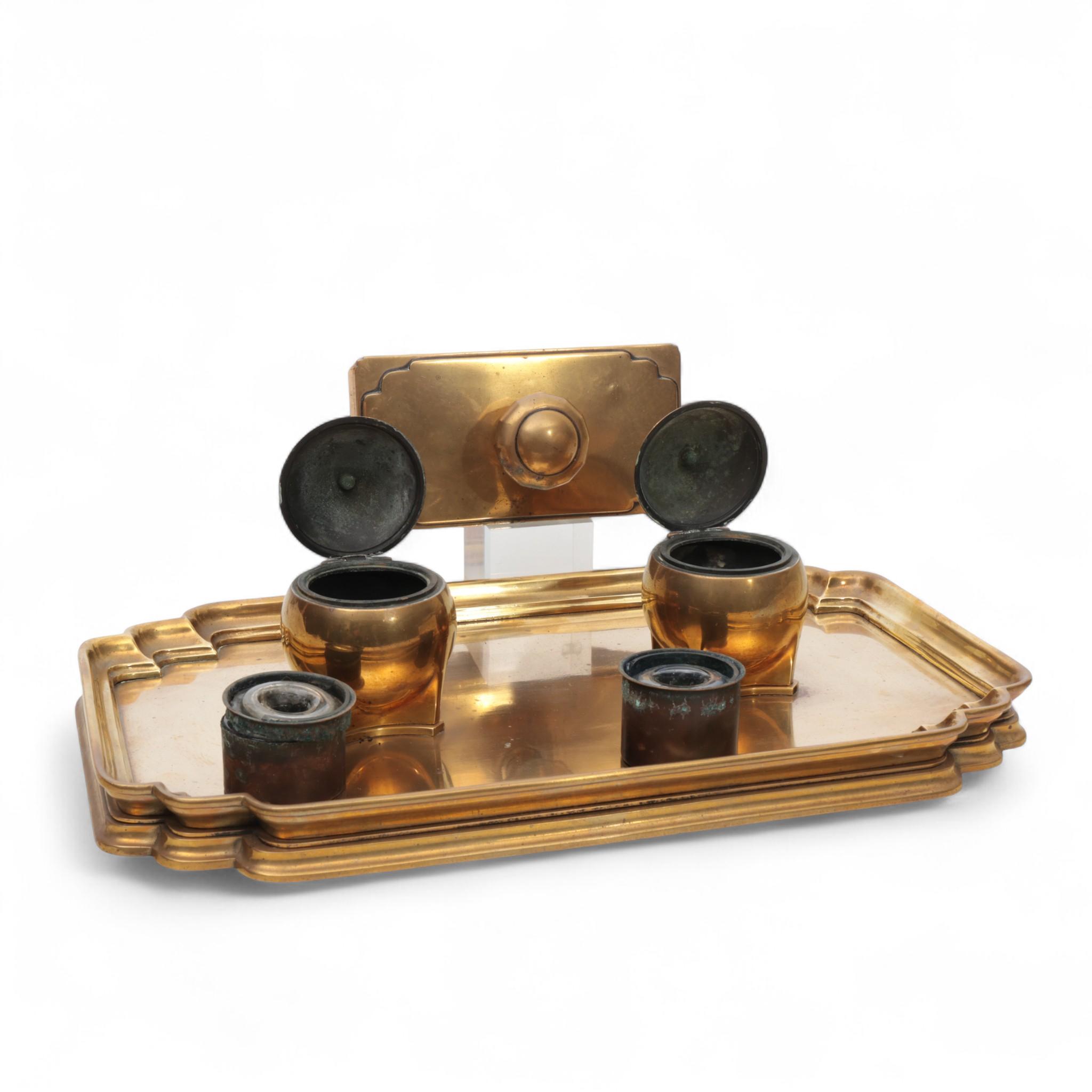Zwaar koperen bureau inktstel met gecontourneerde rand, circa 1910;