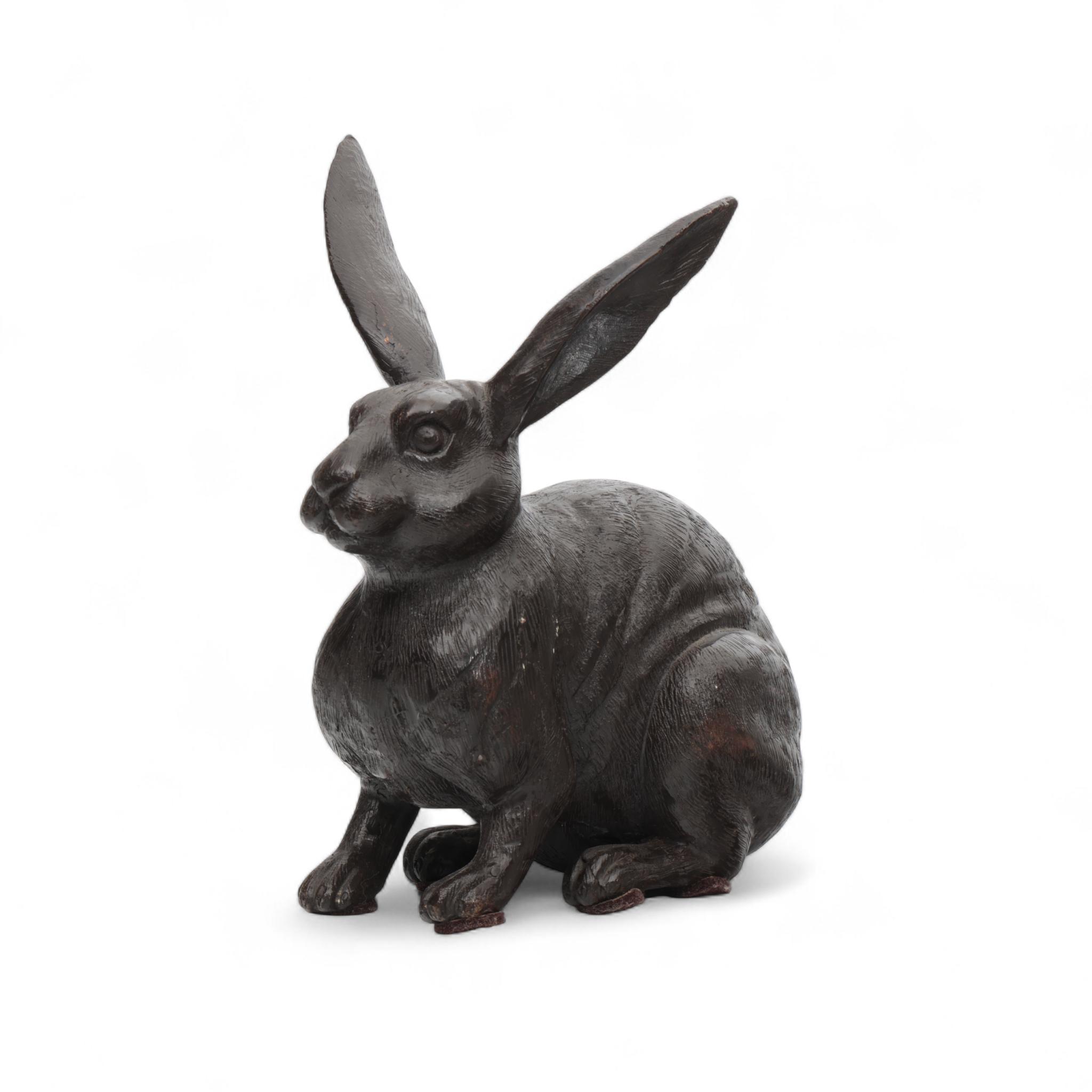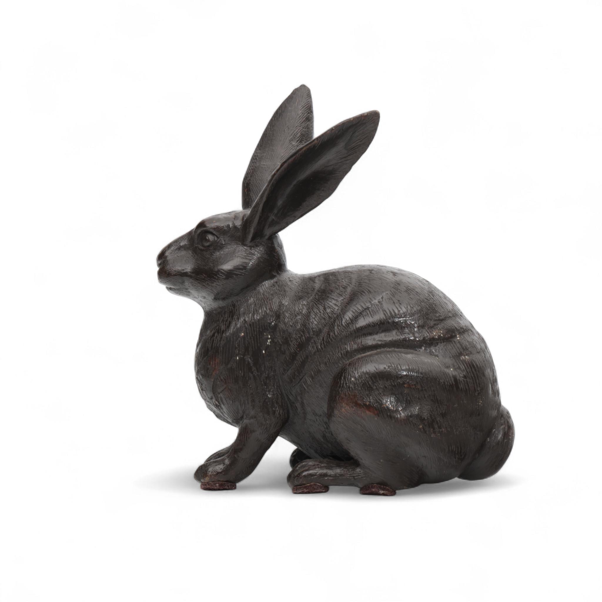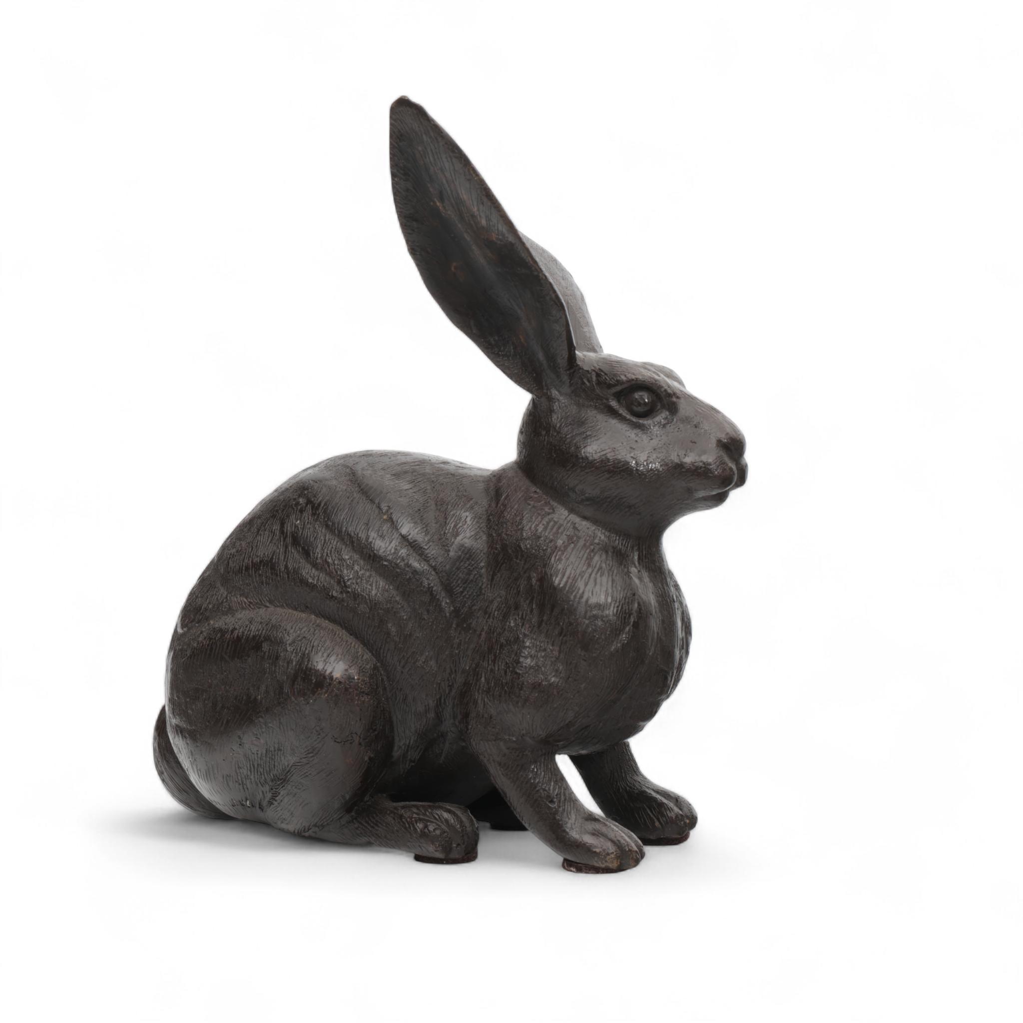 Bruin gepatineerd bronzen sculptuur van konijn, 20e eeuw