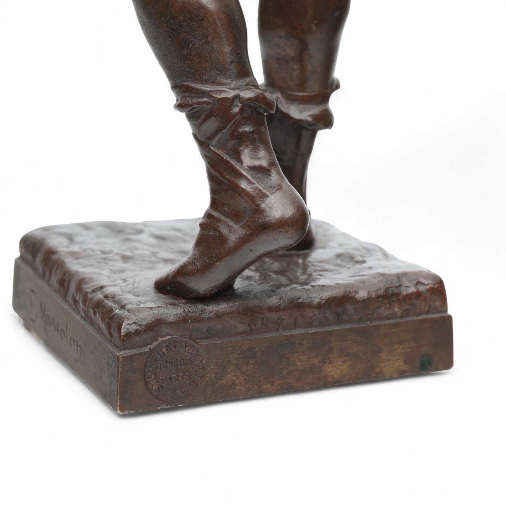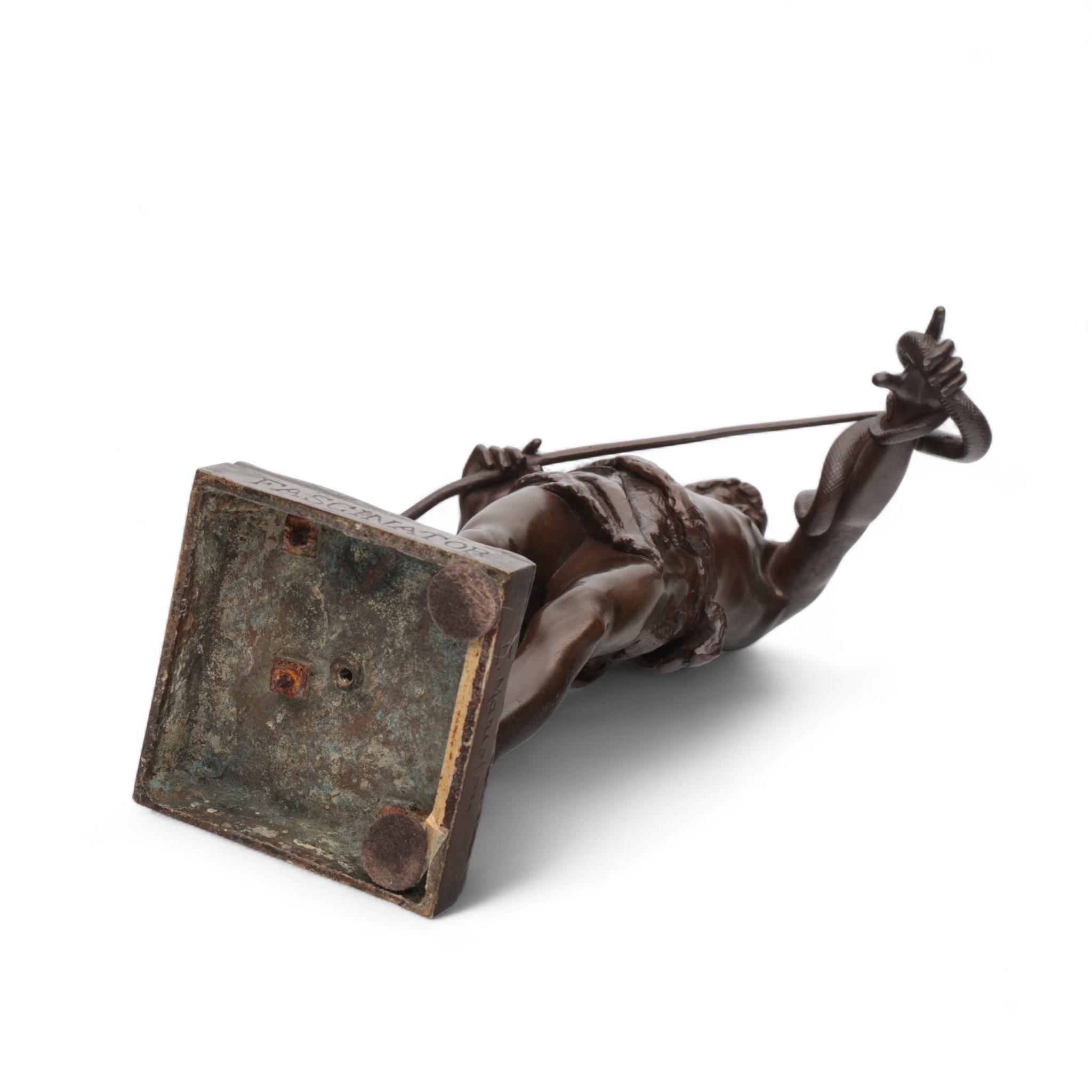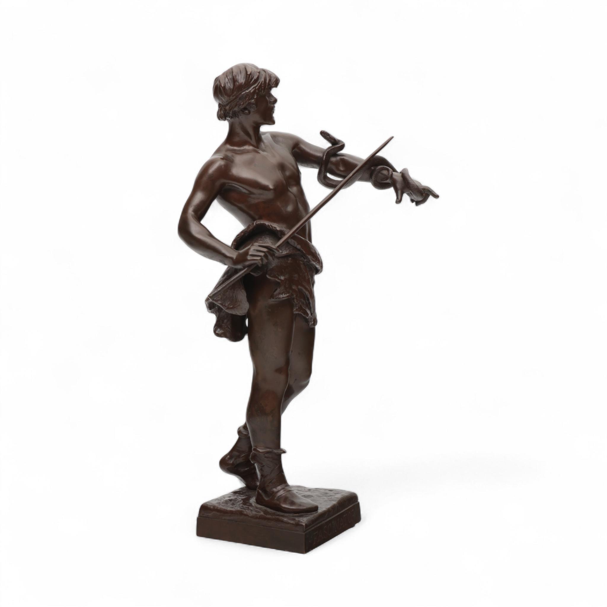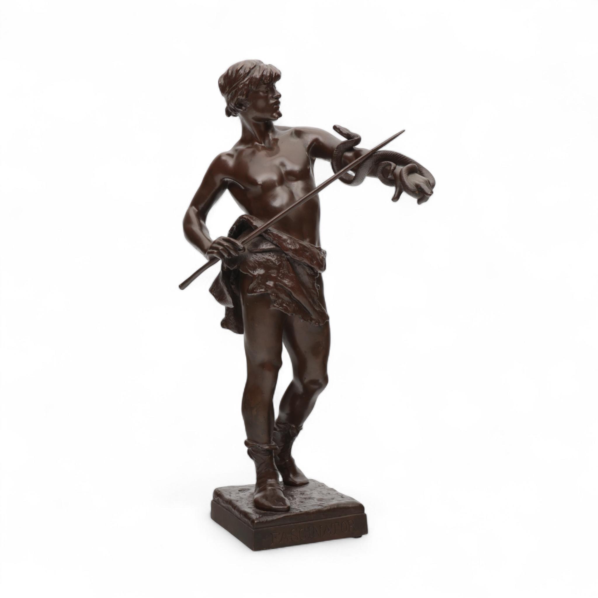 Eugène Marioton (1854-1933), bruin gepatineerd bronzen sculptuur , 'Fascinator', circa 1900;