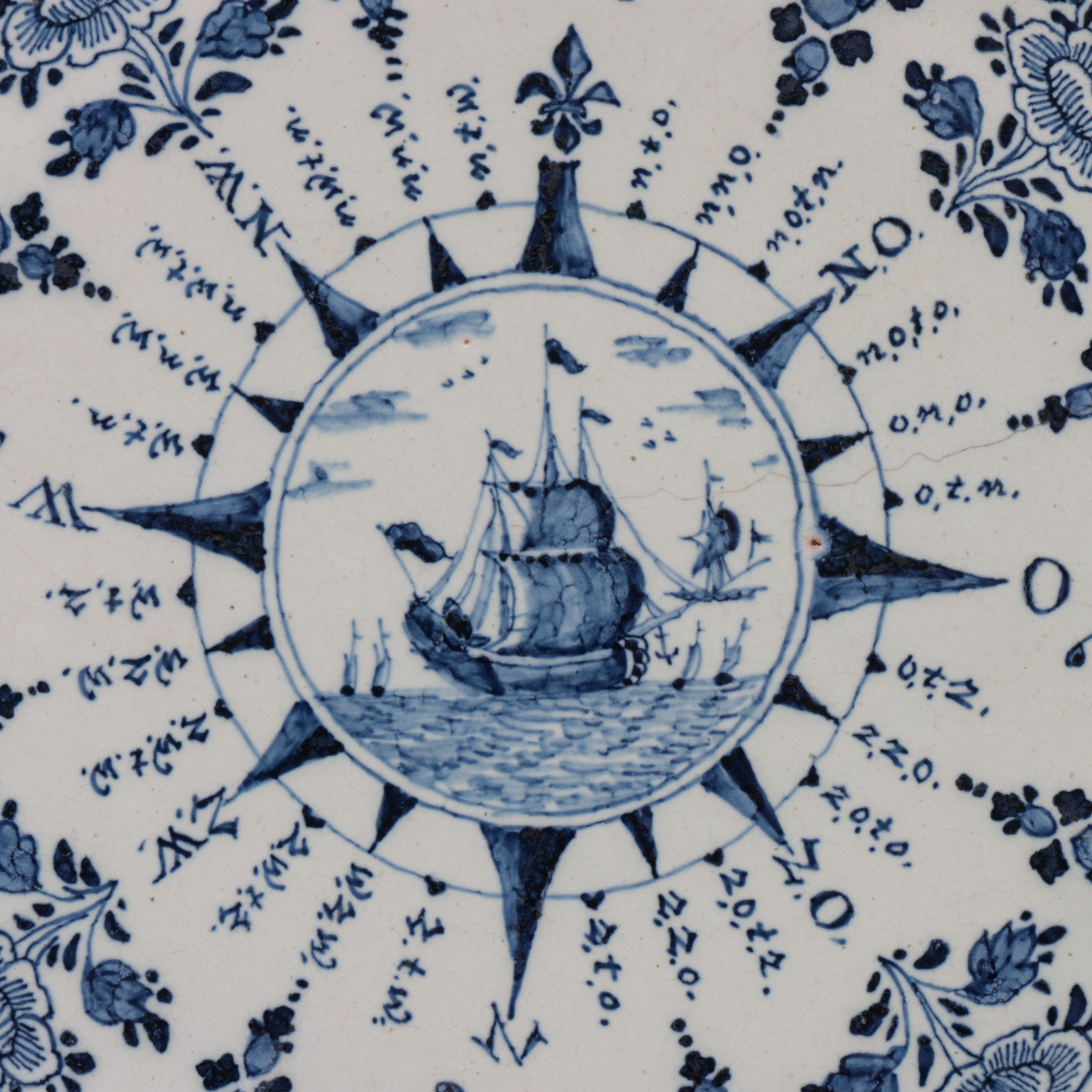 Uitgevoerd met voorstelling van schip waaromheen kompasroos. (chips, haarscheur).
