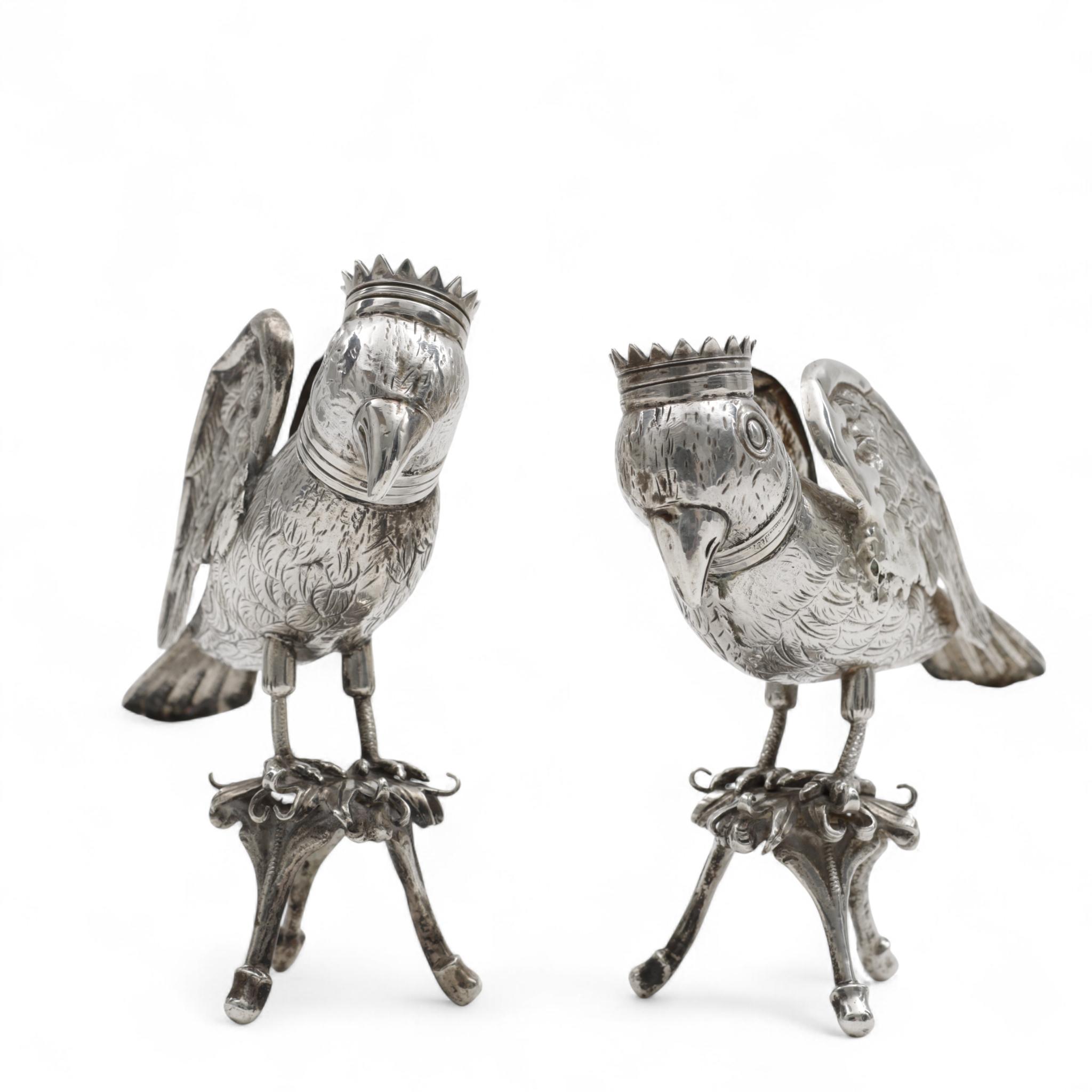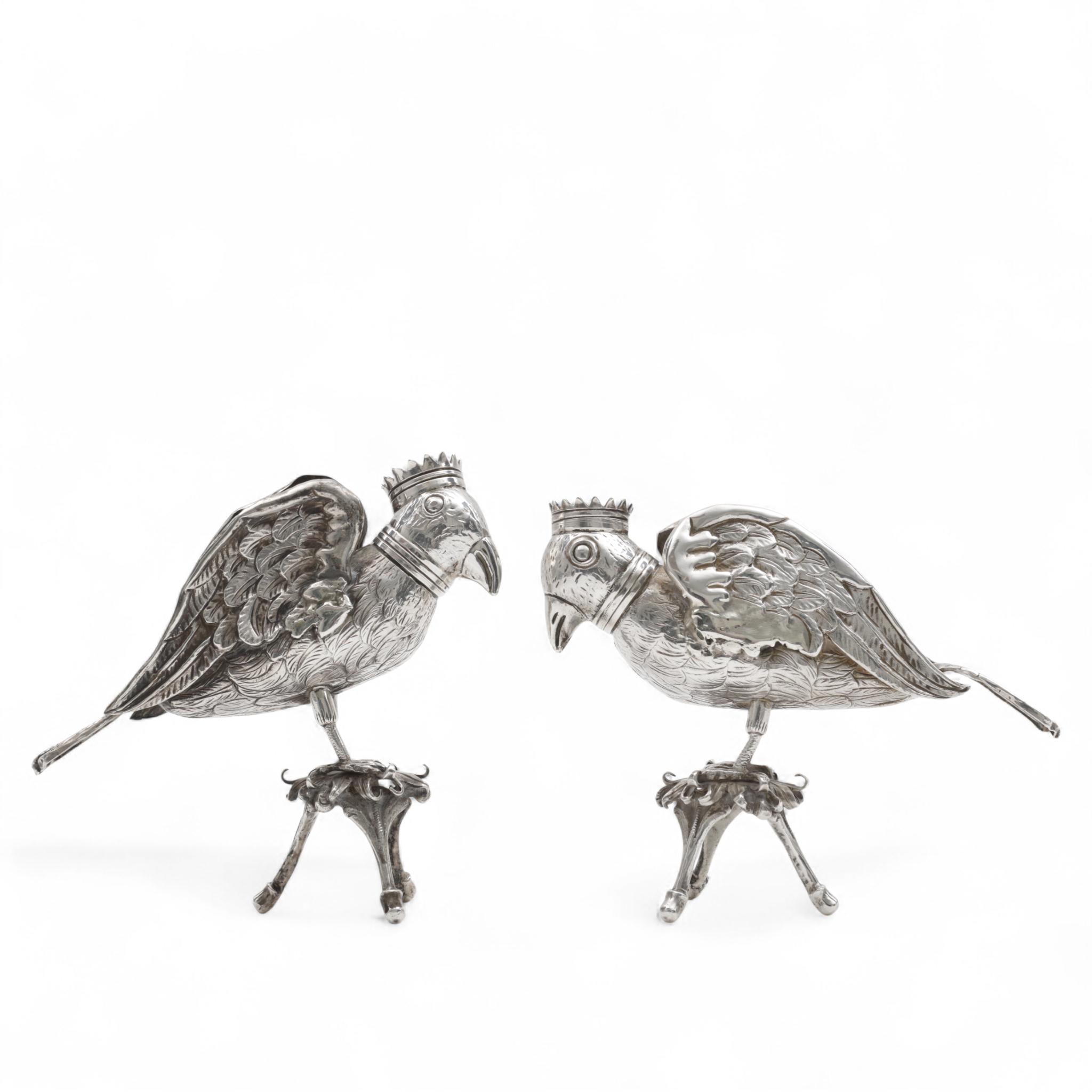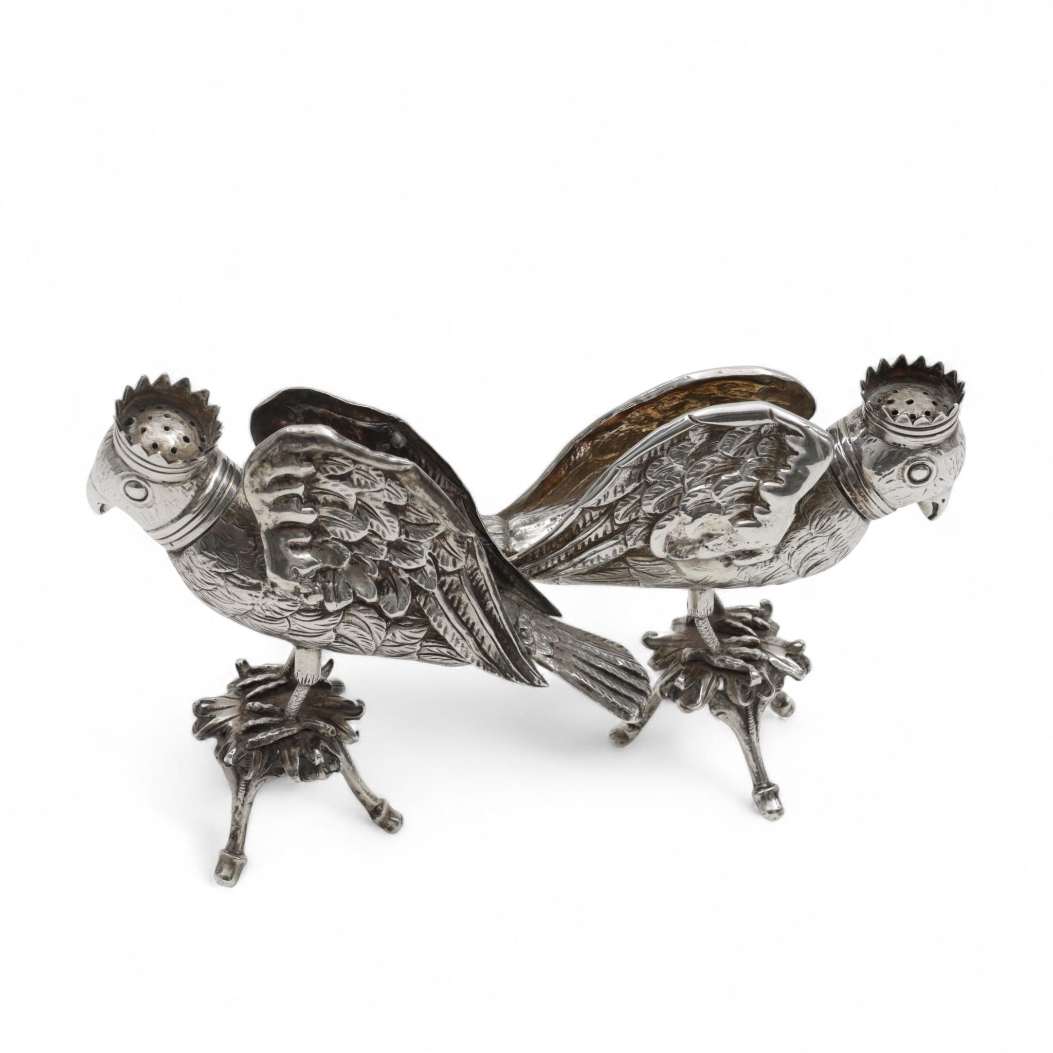 Zuiderlijke Nederland of België paar peper- en zoutstrooiers in vorm van Schutters- of Koningsvogels, ca. 1800,