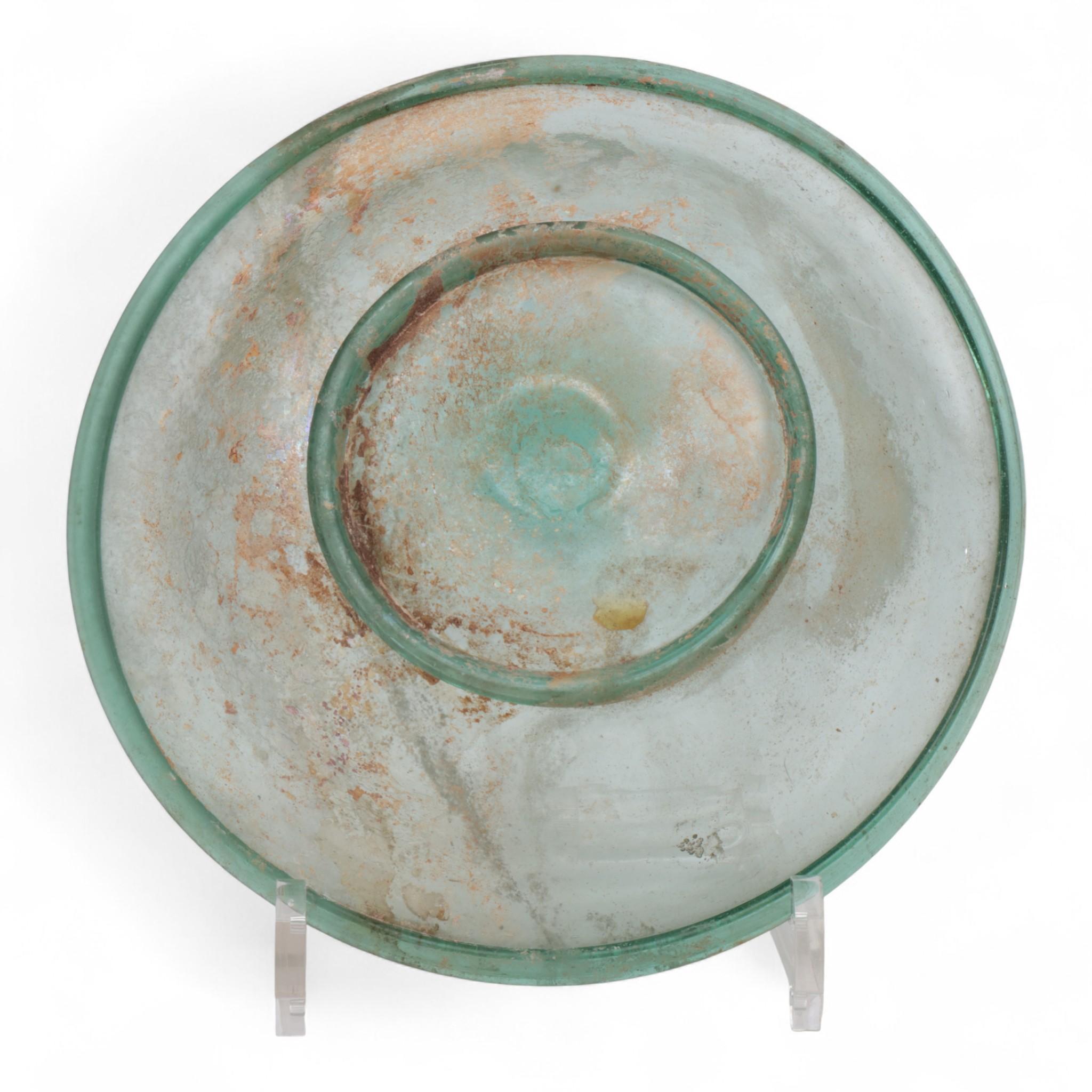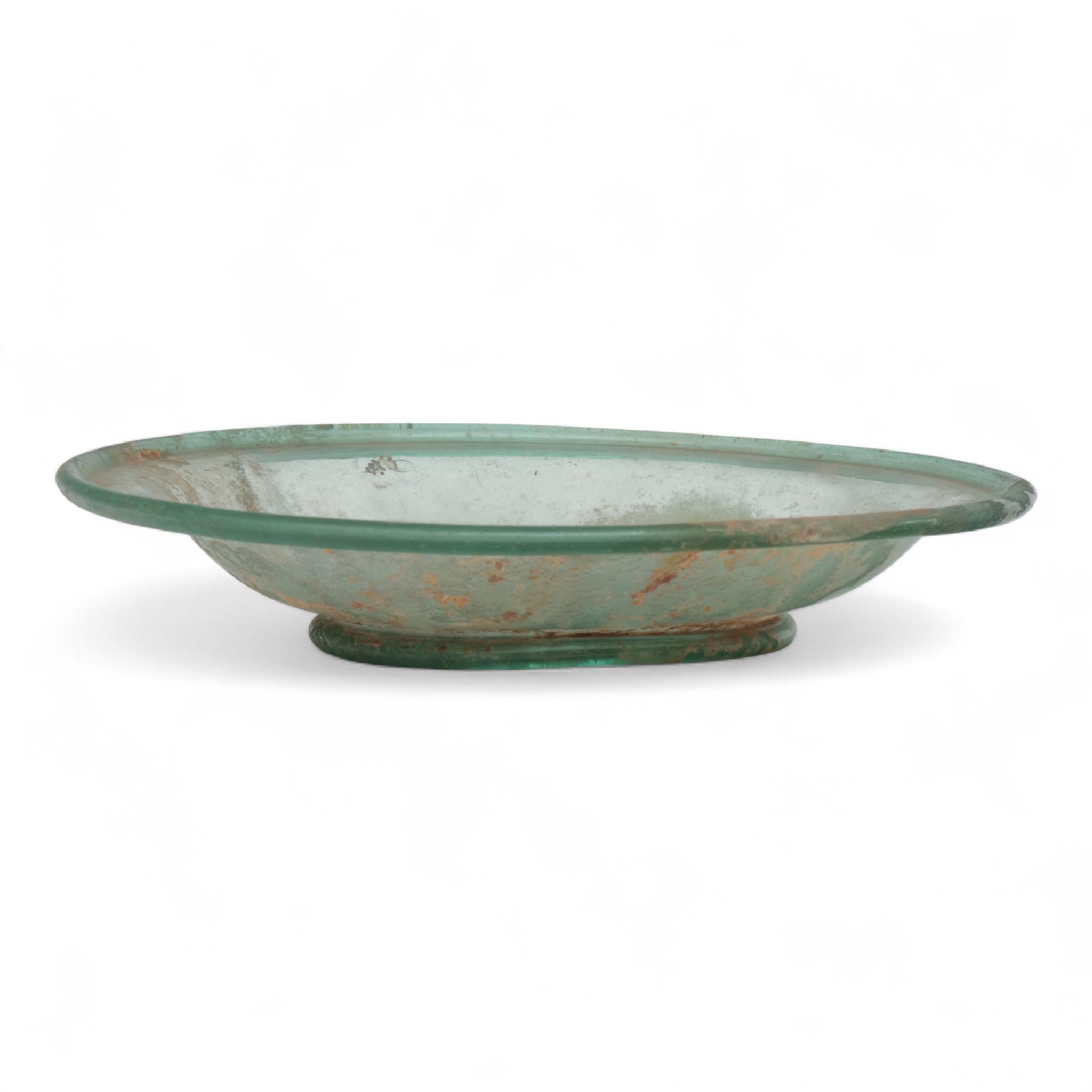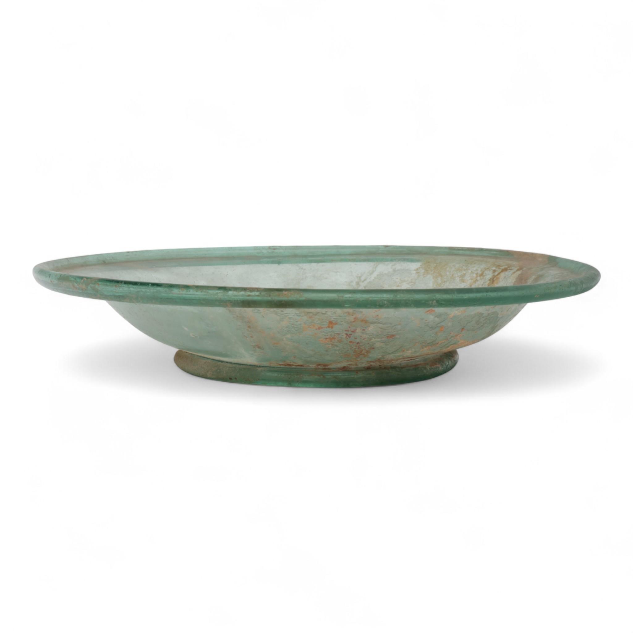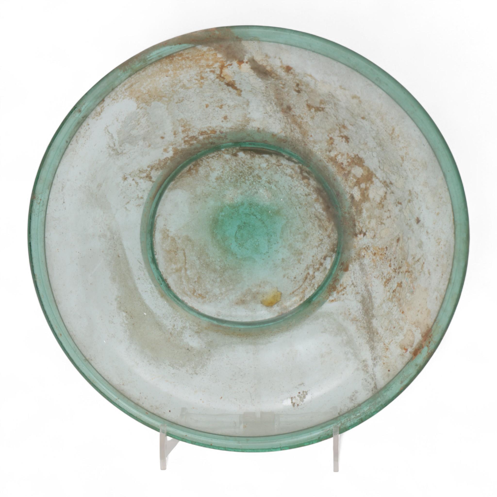 A large Roman green glass dish, 2nd - 3rd century AD,