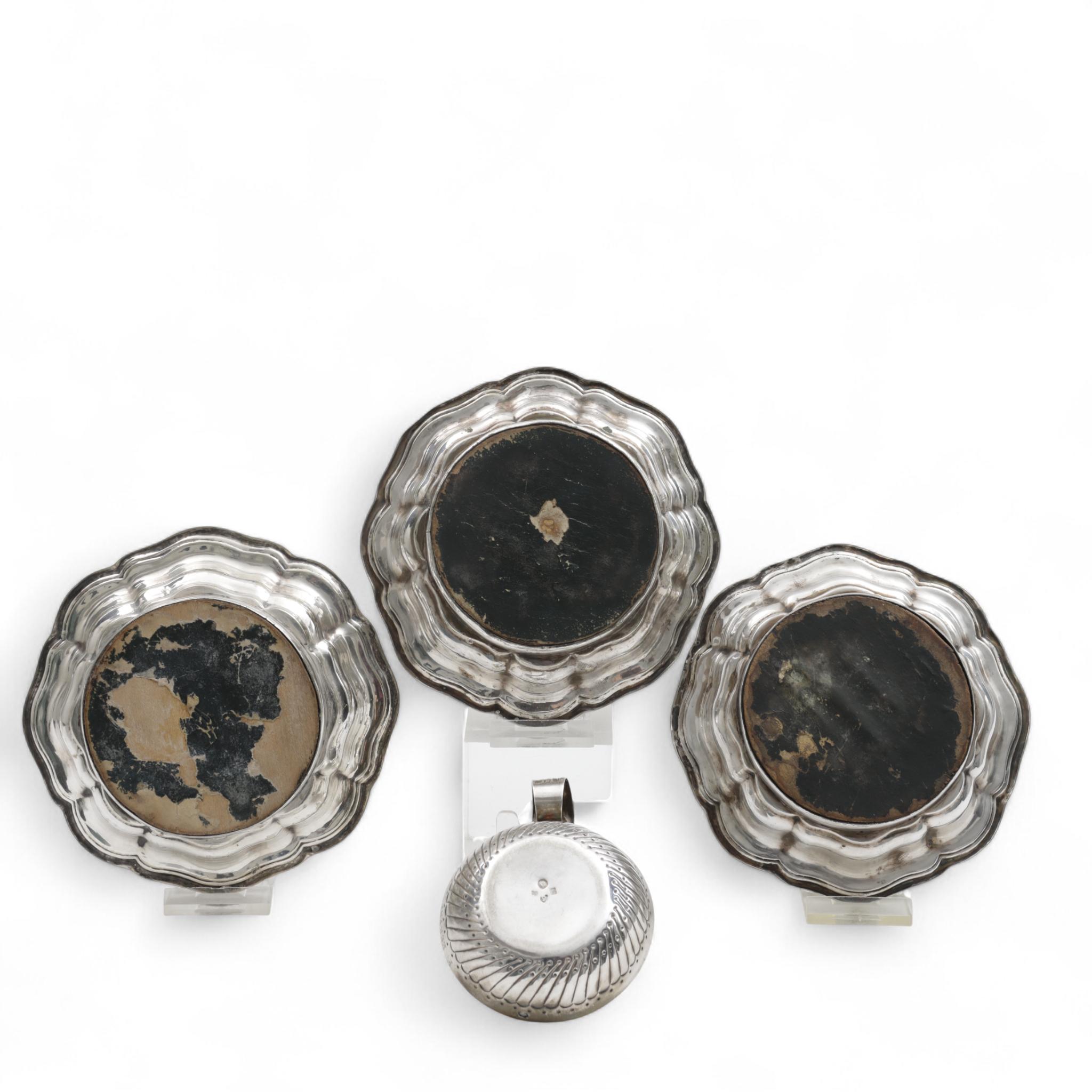 Duitsland, set van drie flessenbakken met ONEDEL montuur en Zuidelijke Nederlanden, één tastevin, 19e eeuw,