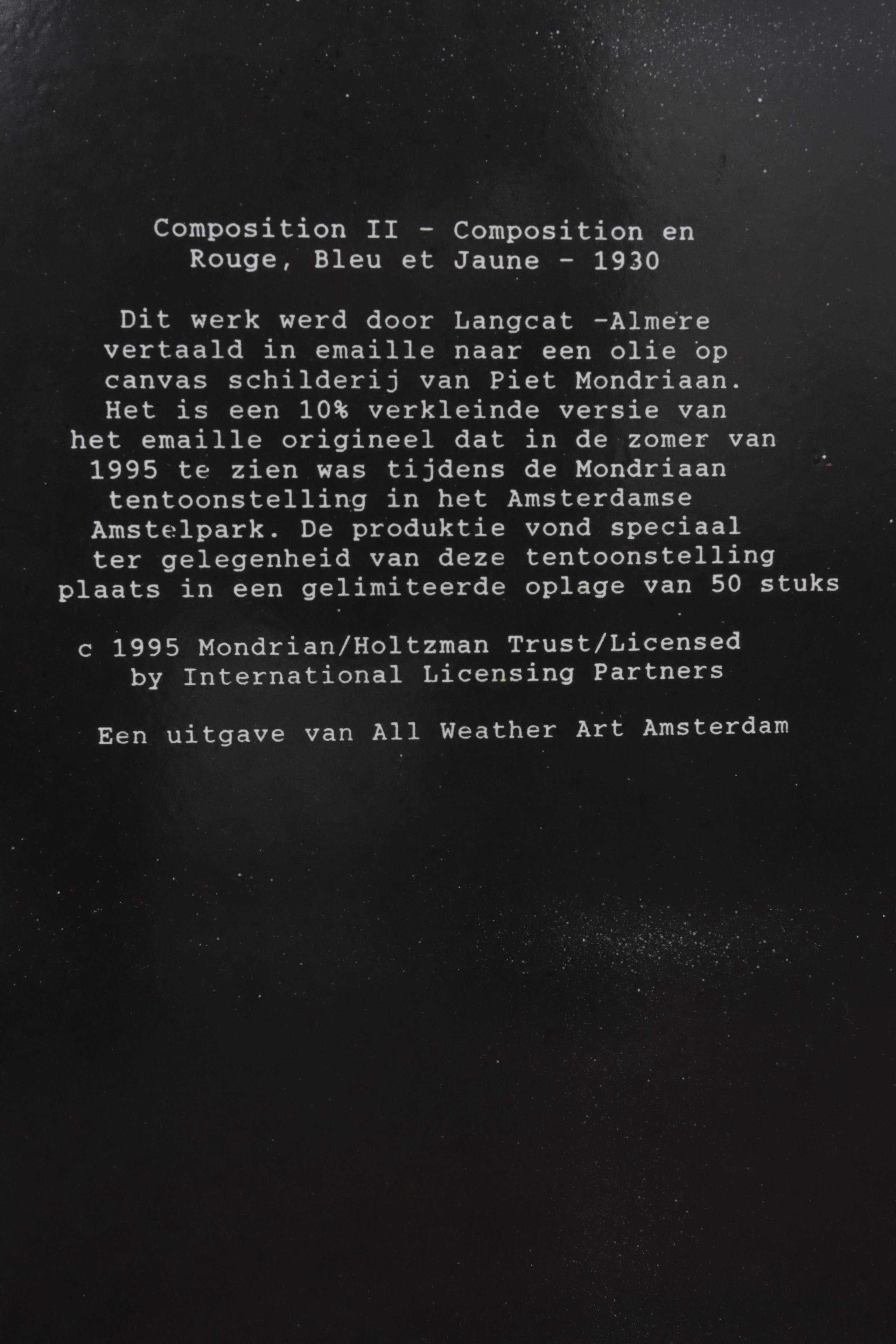 Naar Mondriaan, vier emaille borden, Langcat Almere