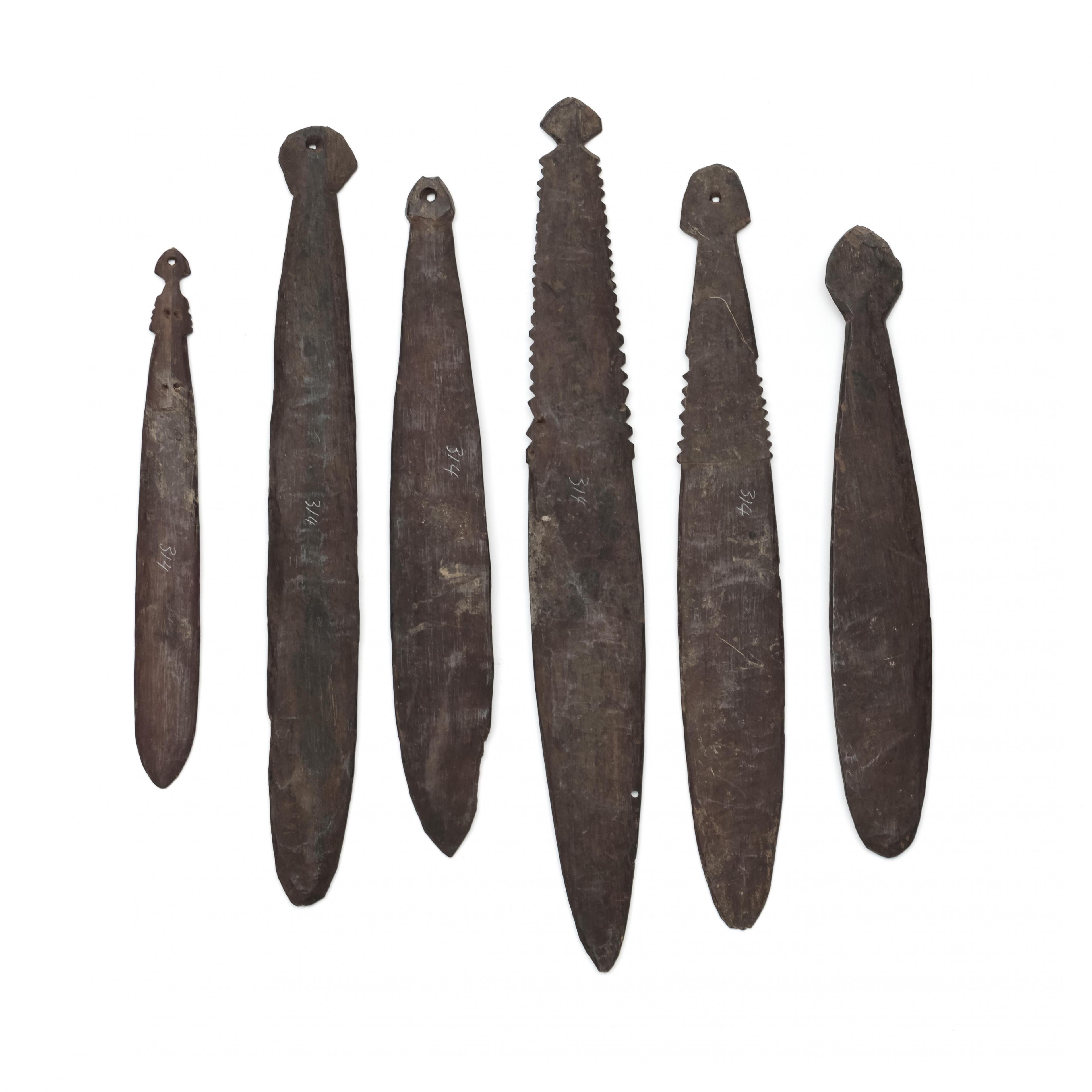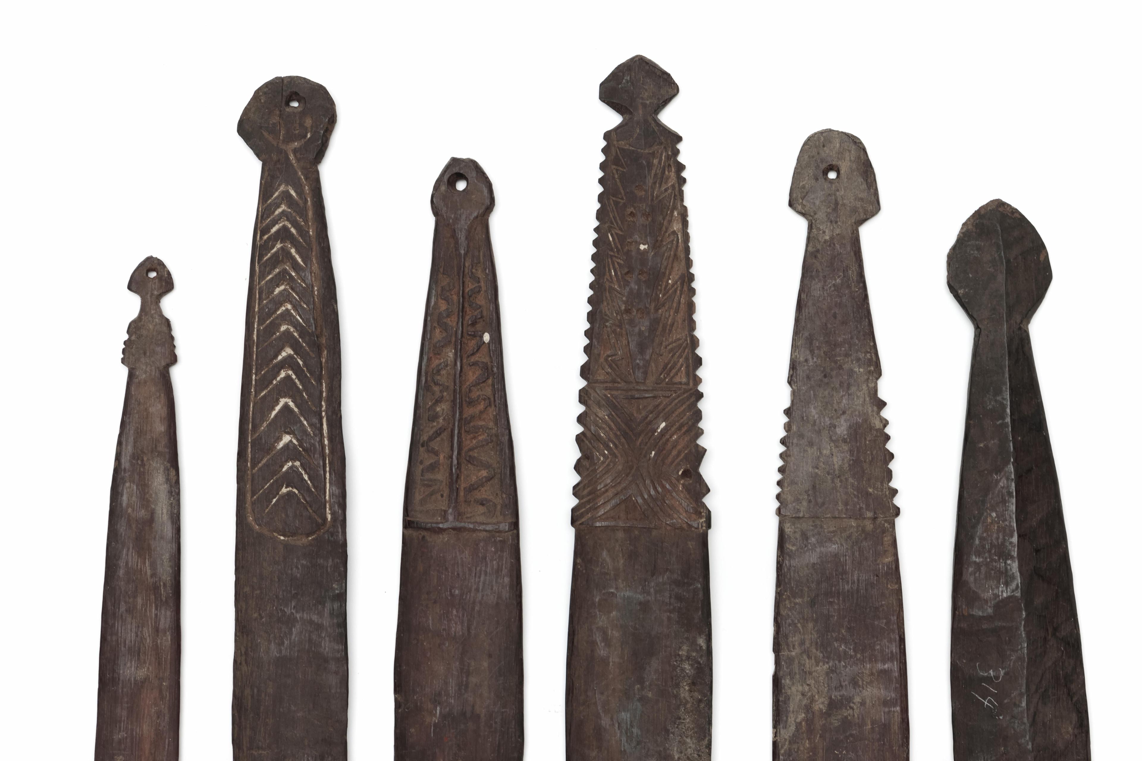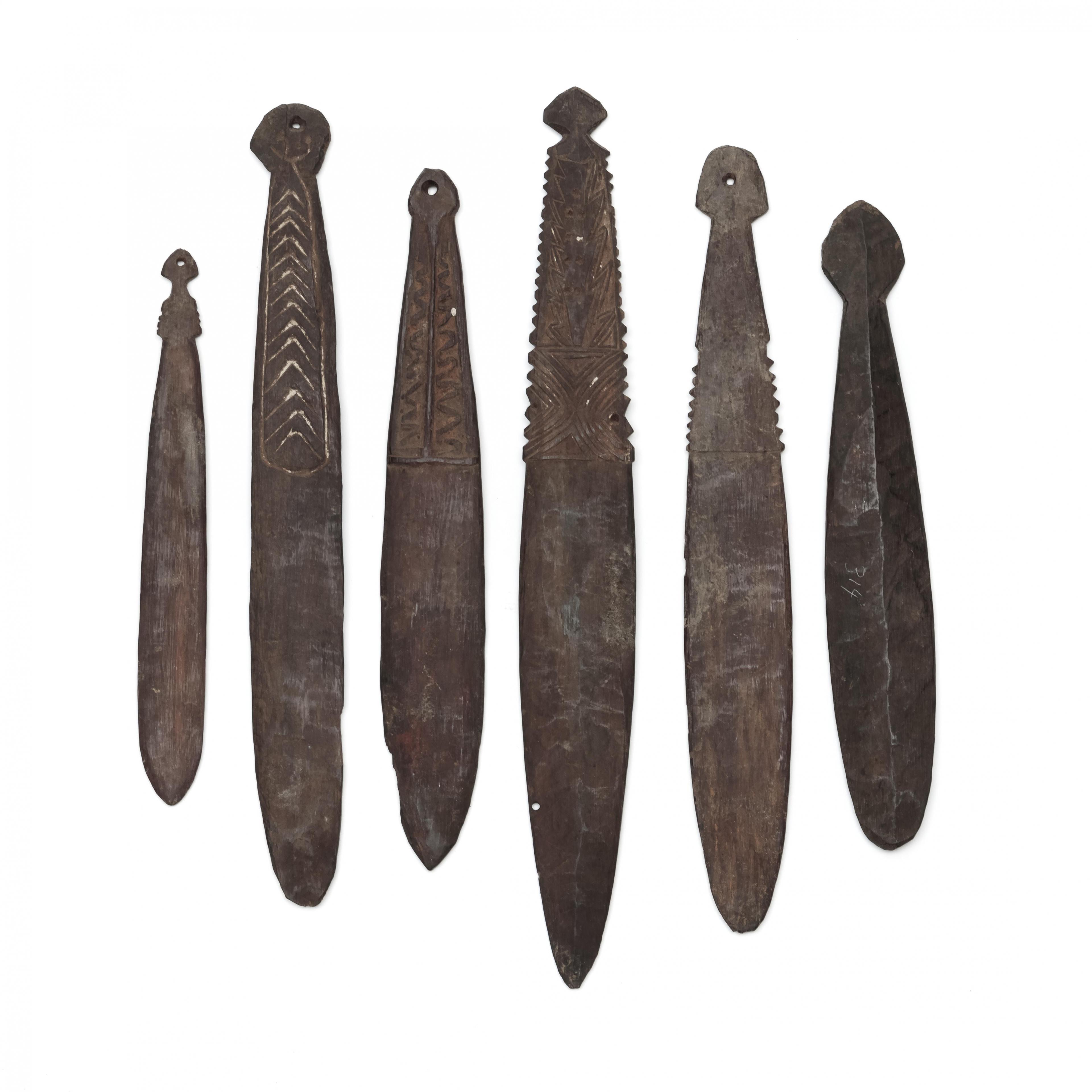 P.N. Guinea, Papua Gulf, a collection of six bull roarers;