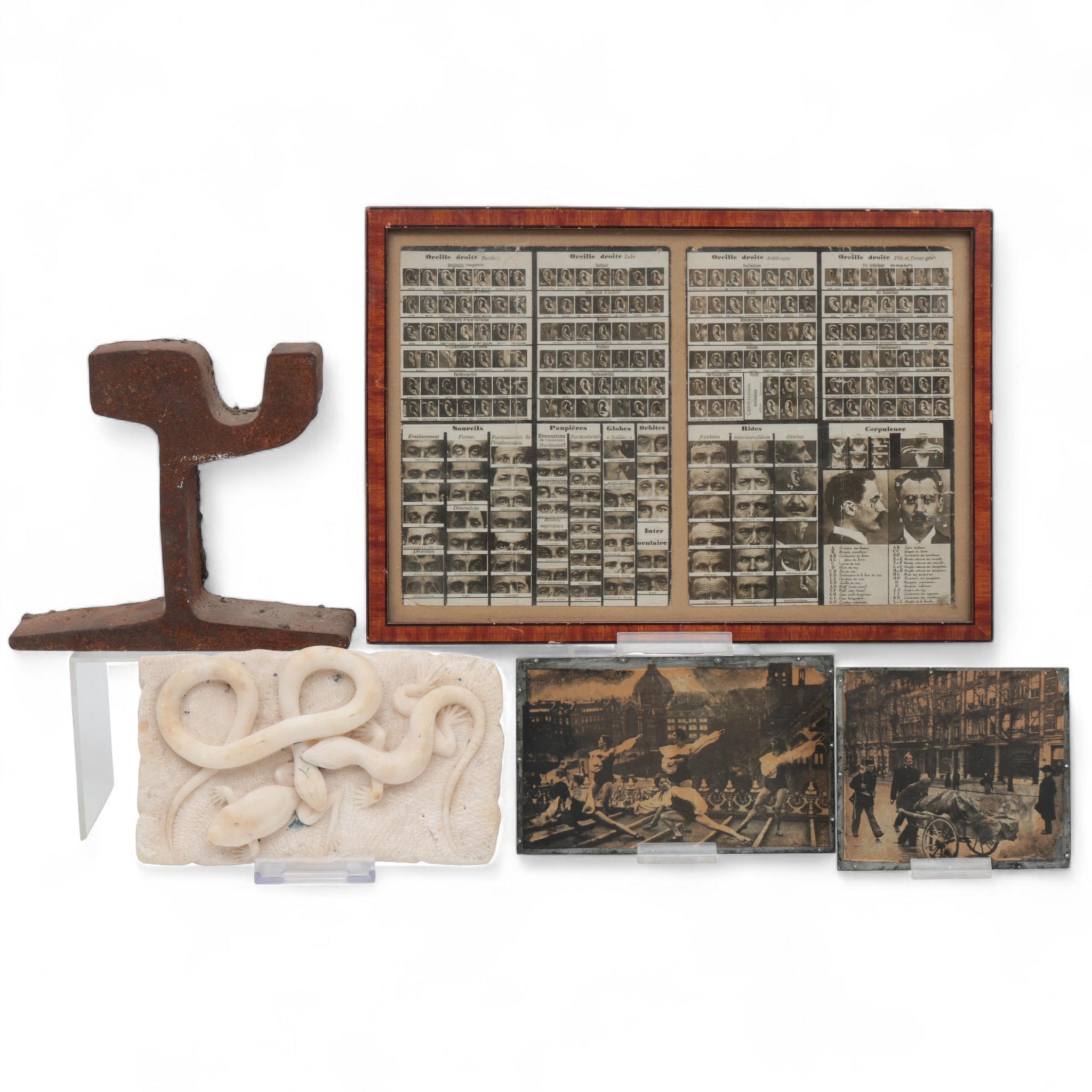 w.o. marmeren sculptuur van slang, hagedis en kikker.