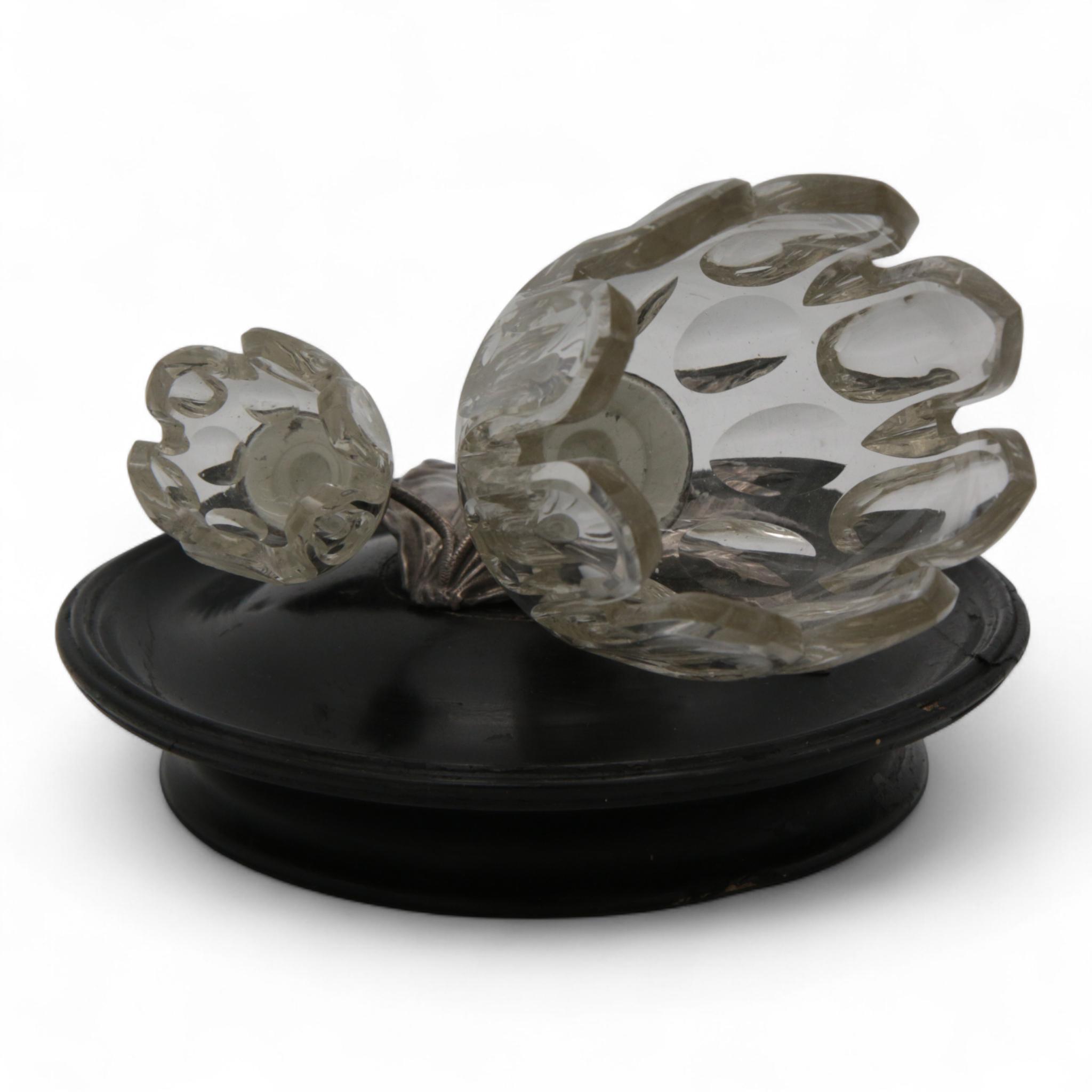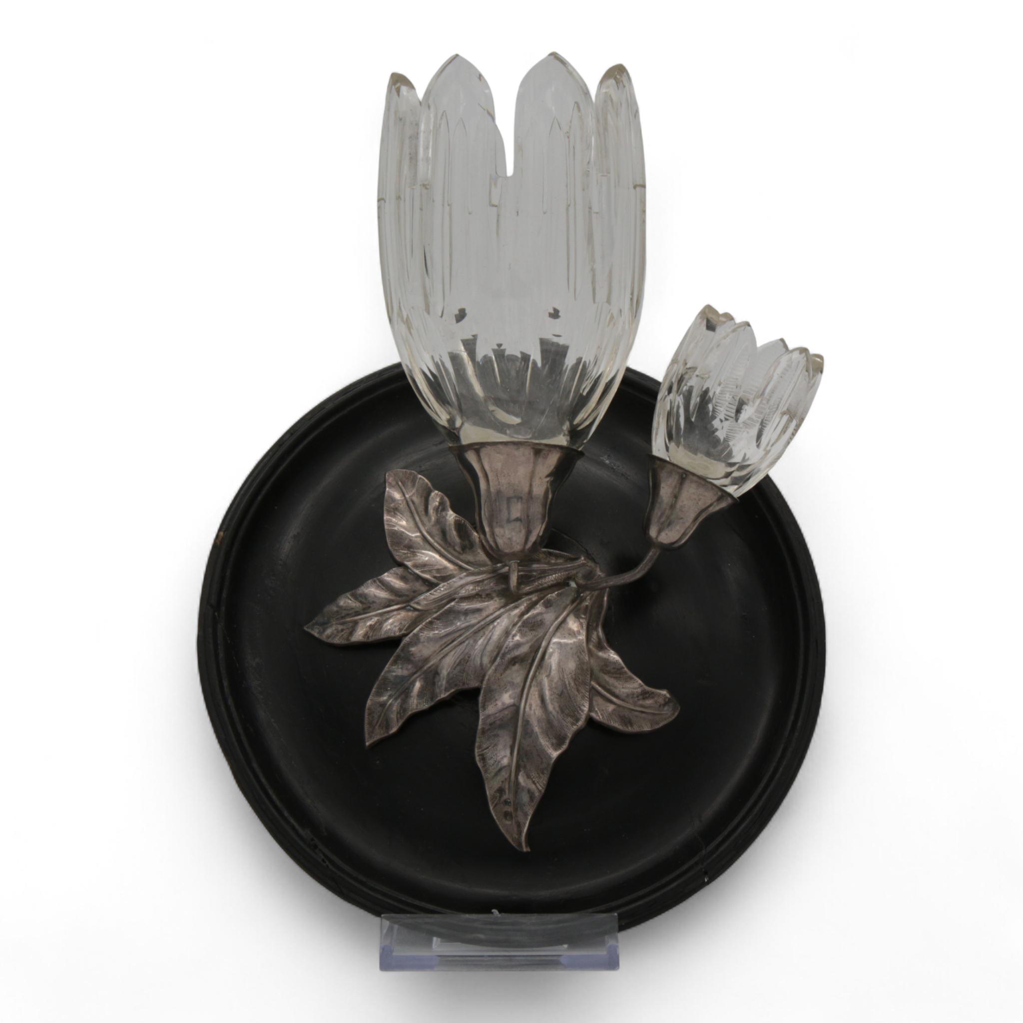 Sigarenhouder, kristal met zilveren montering op gezwart houten voet, 19e eeuw,