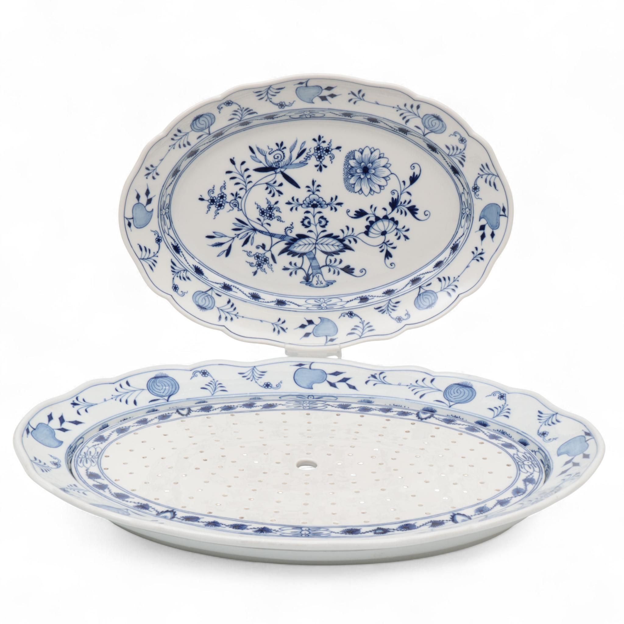 Meissen, blauw wit porseleinen lekschaal en dienschaal, Zwiebelmuster, 1860-1924;