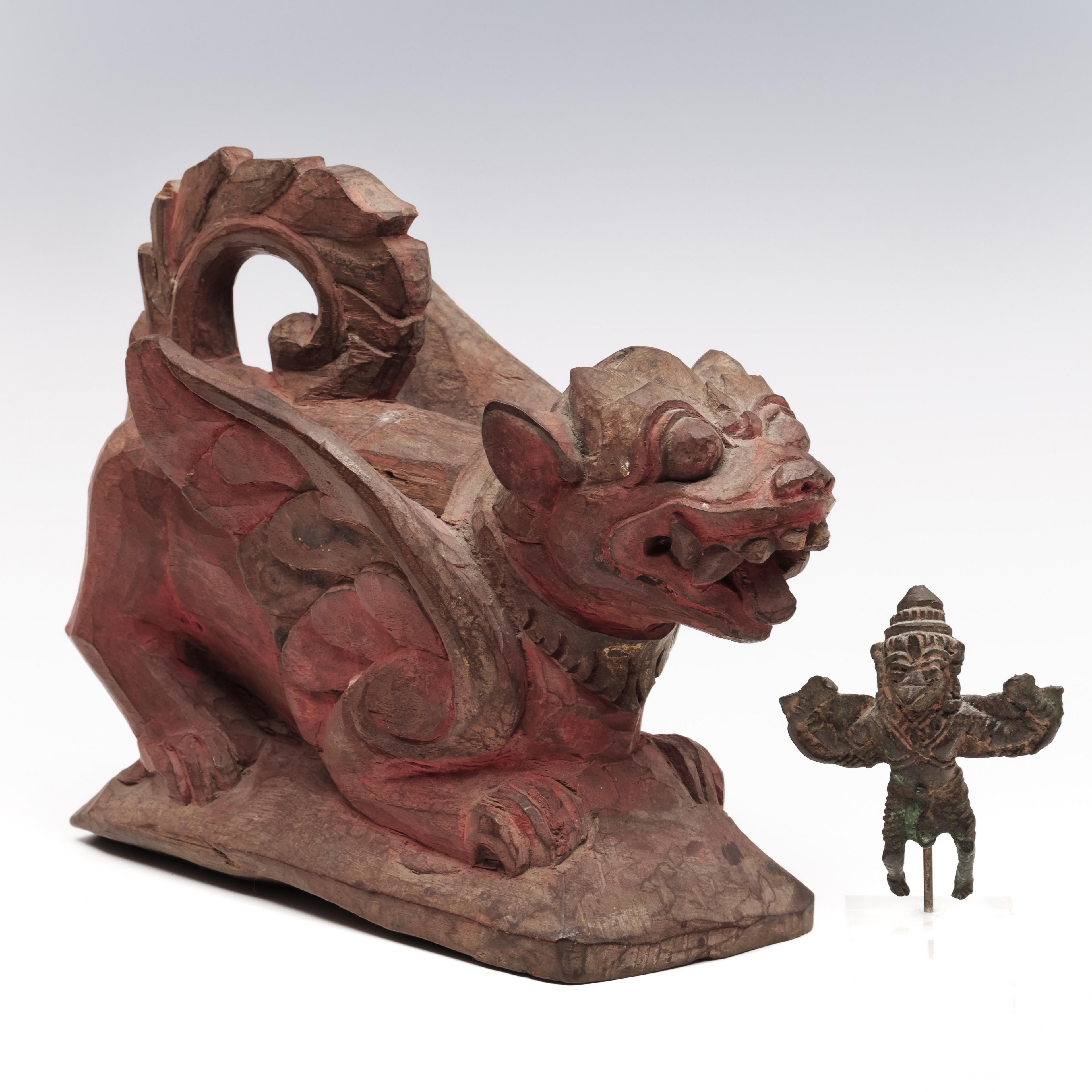 Bali, a small wooden treasure box, ca. 1900 and a bronze figure of Garuda, 19th century,
