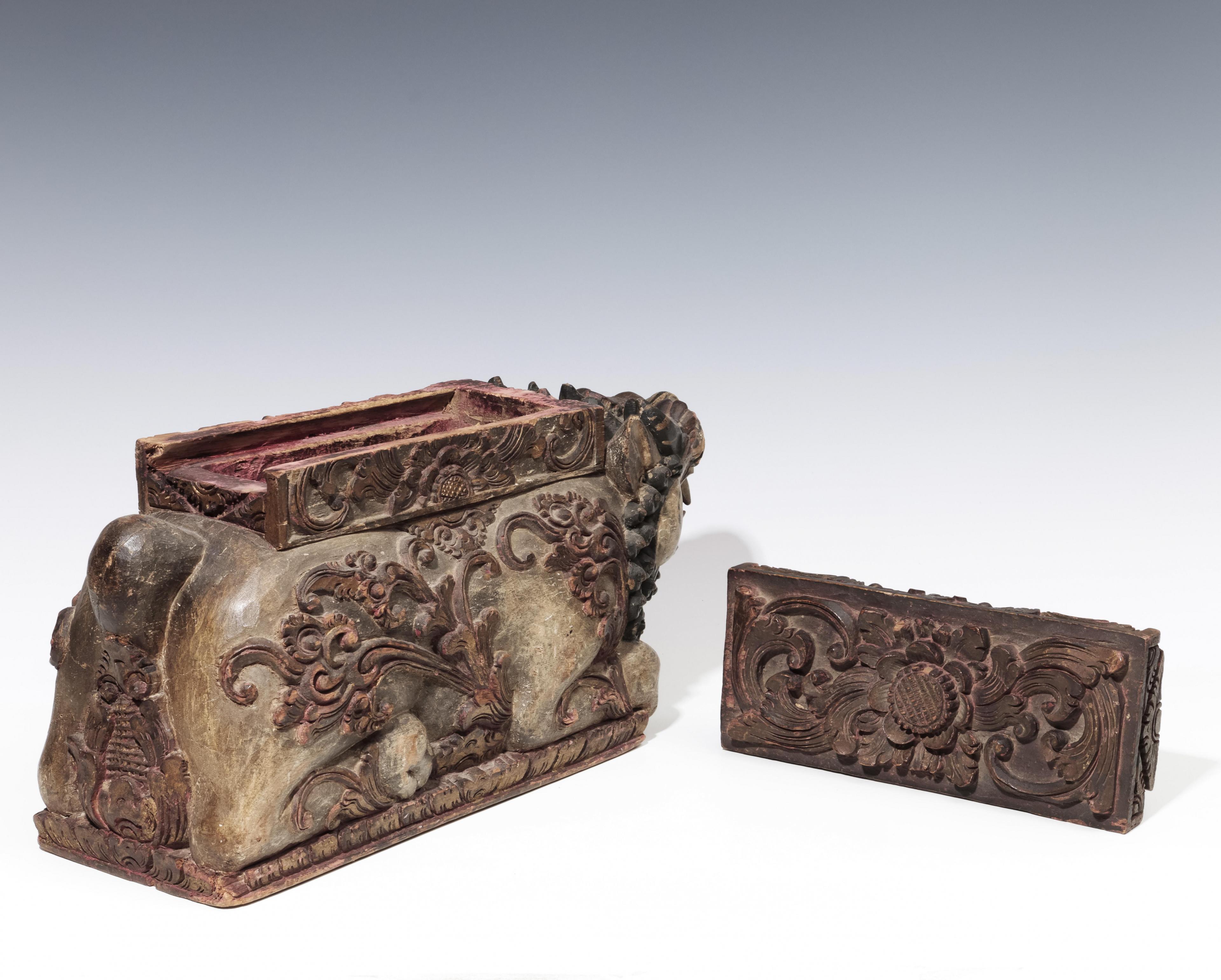 Bali, a fine high relief carved wooden offering box, sajen, ca. 1900;