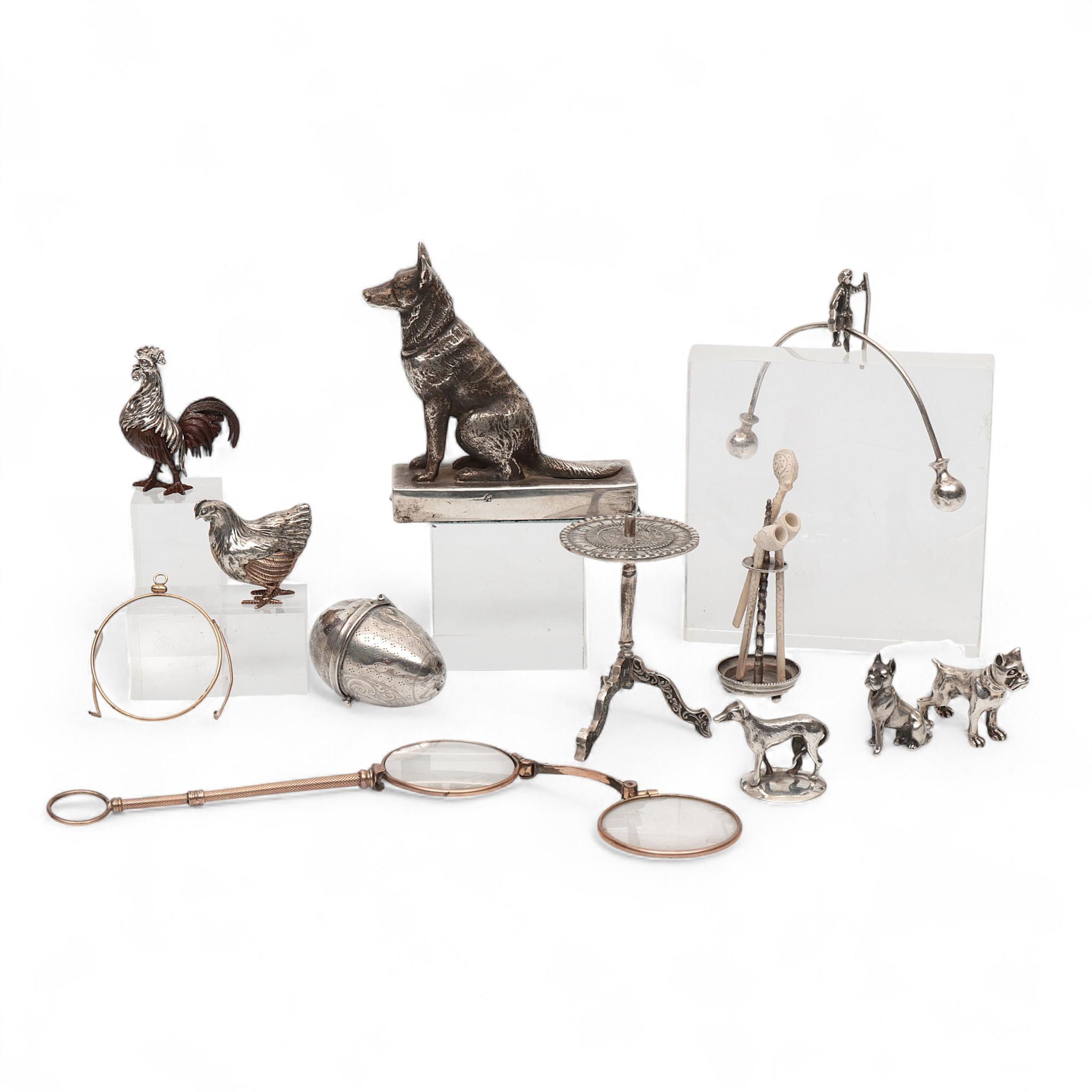 14 krt gouden monocle, diverse miniaturen en beeldwerk, 19e en 20e eeuw,
