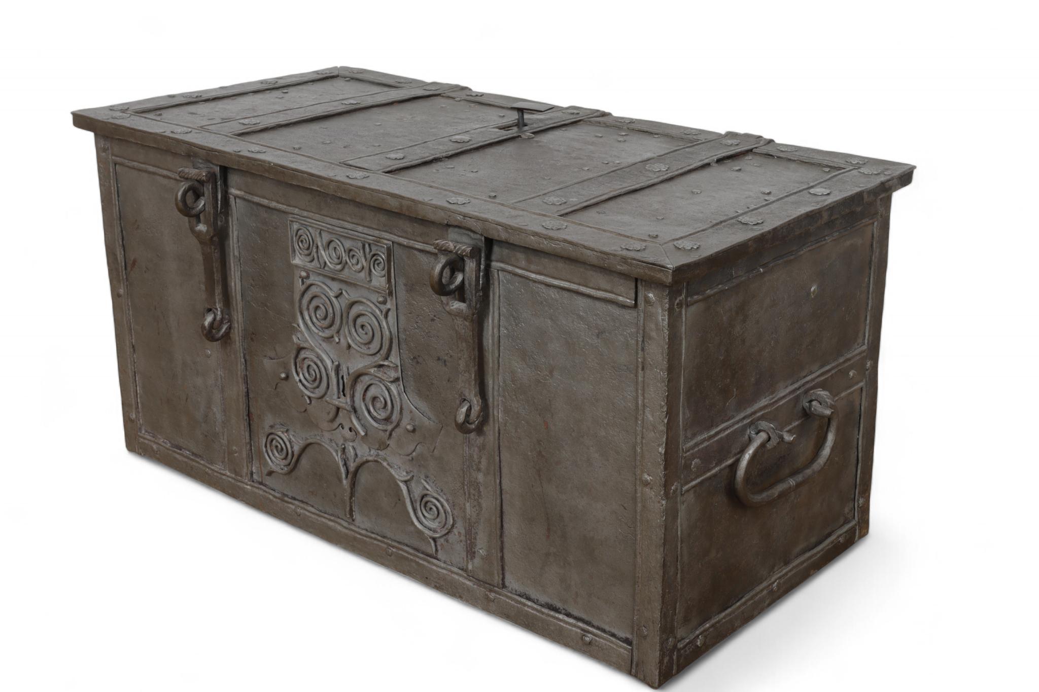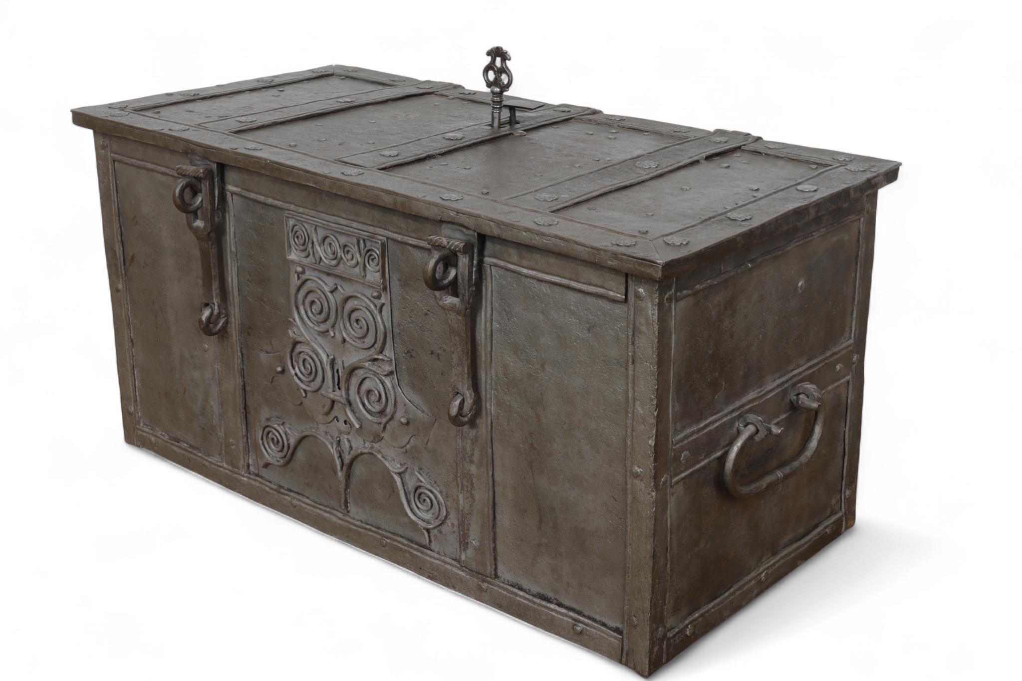 Neurenberg, smeedijzeren grijs/groen gelakte geldkist, 18e eeuw;