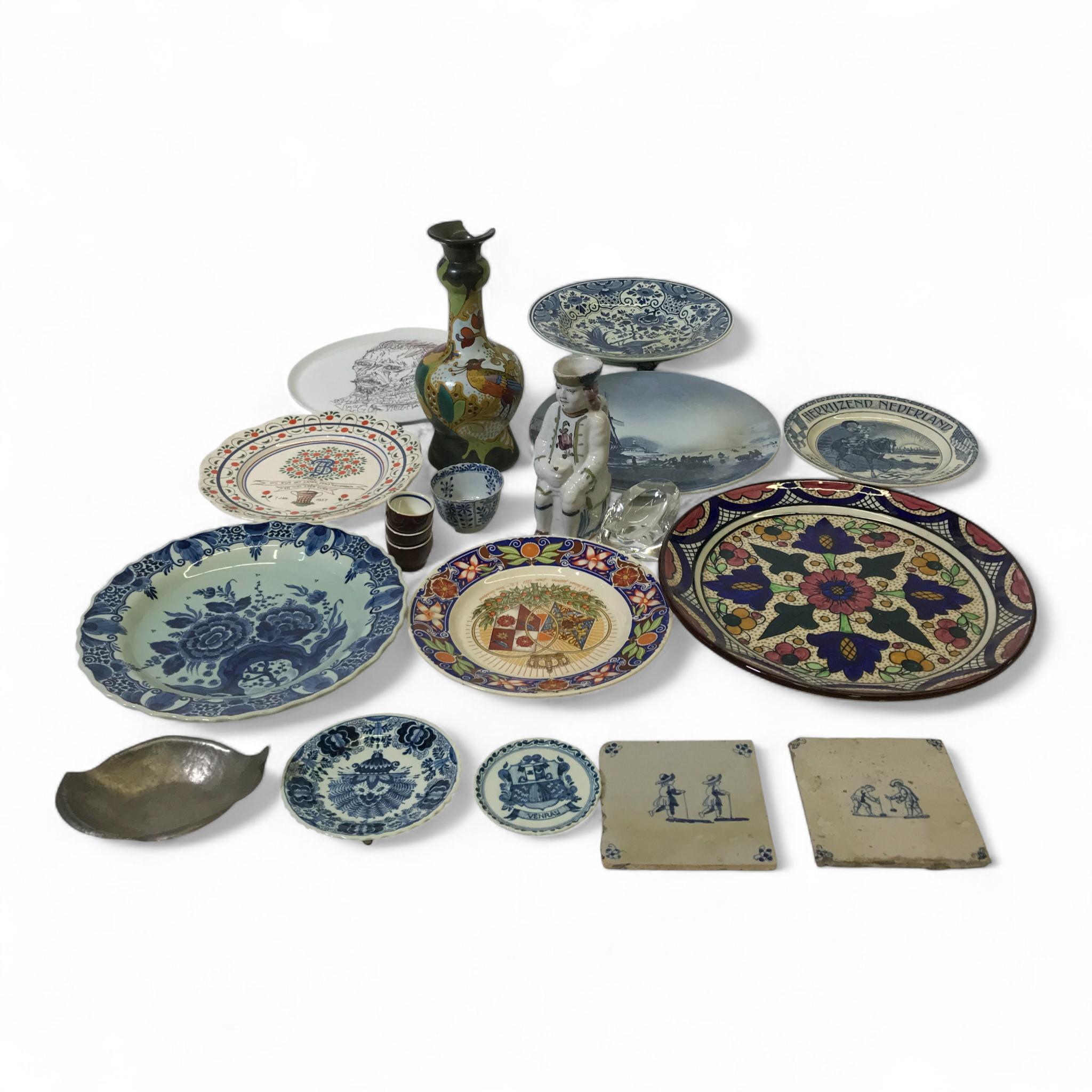 w.o. blauw wit schotels Porceleyne Fles, plateel vaas, tegels en kopjes.