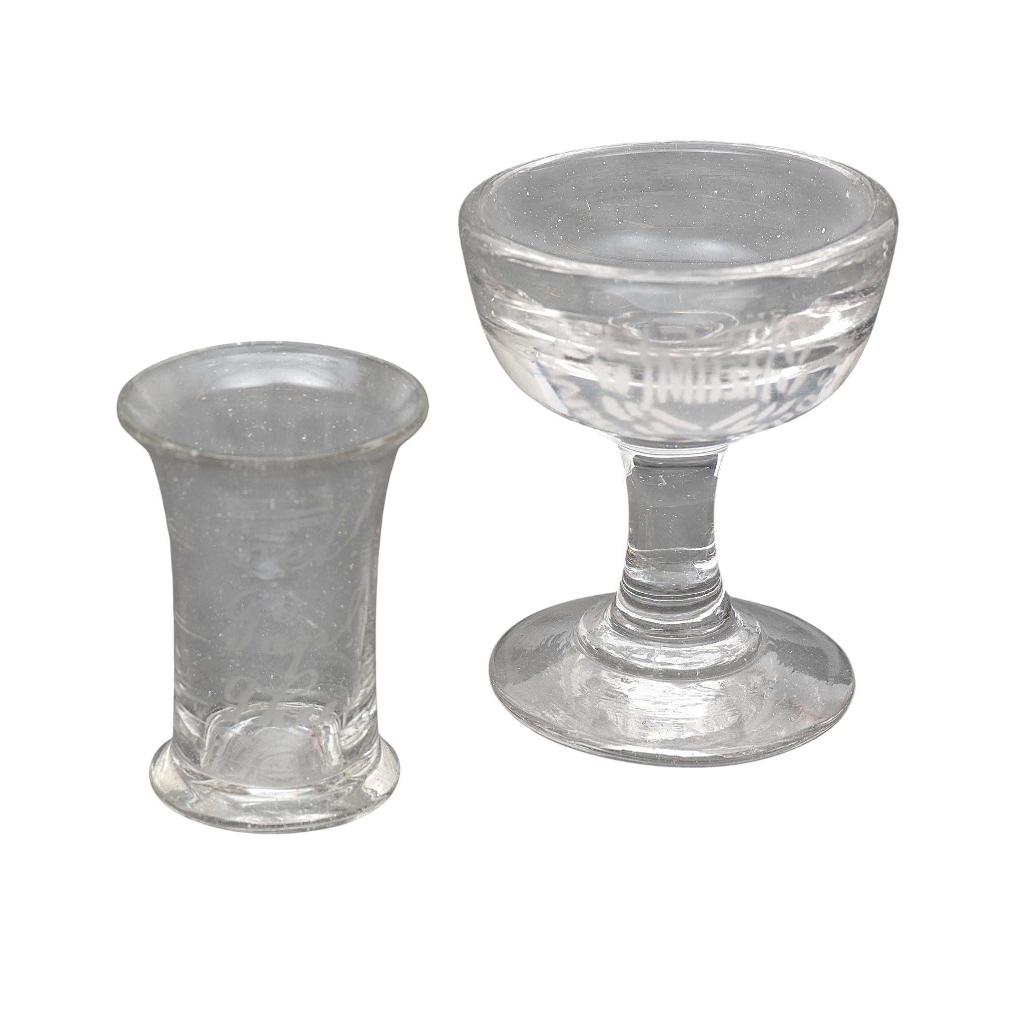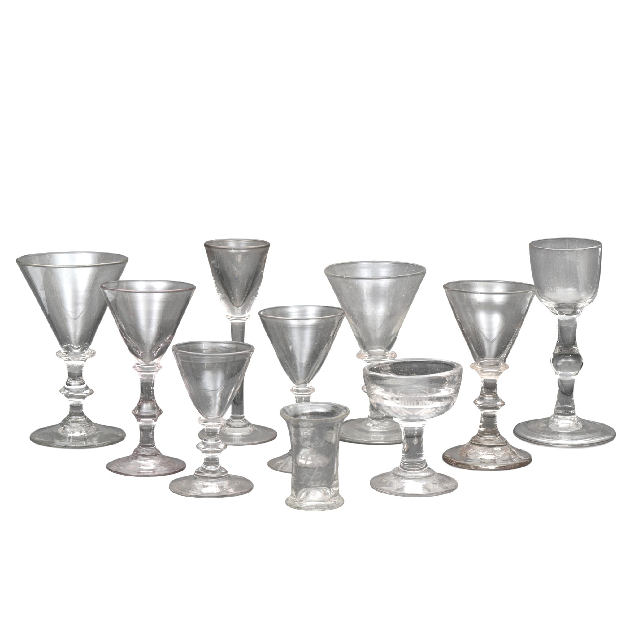 w.o. wijnglazen in verschillende hoogtes en borrelglas. Hierbij maatbekertje.