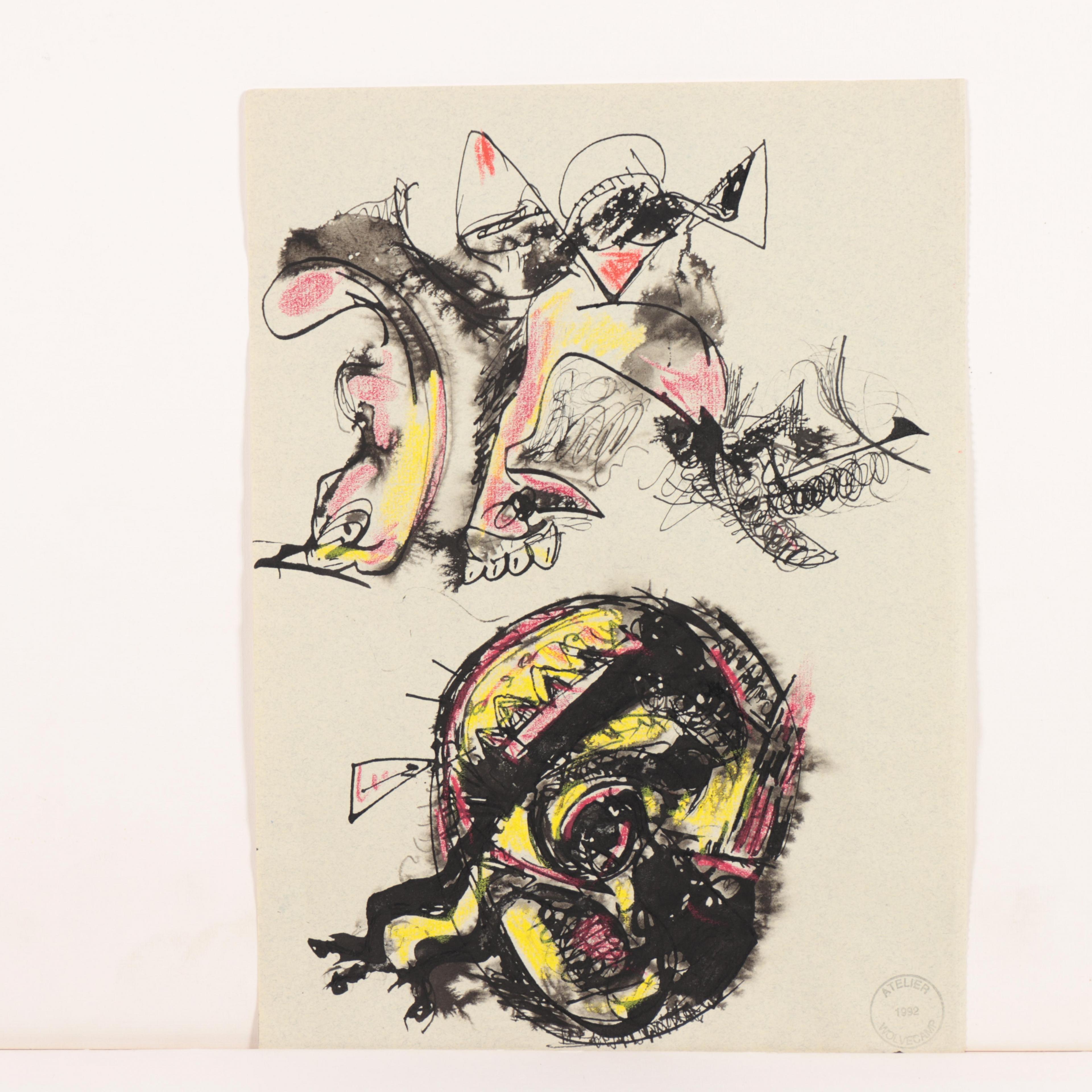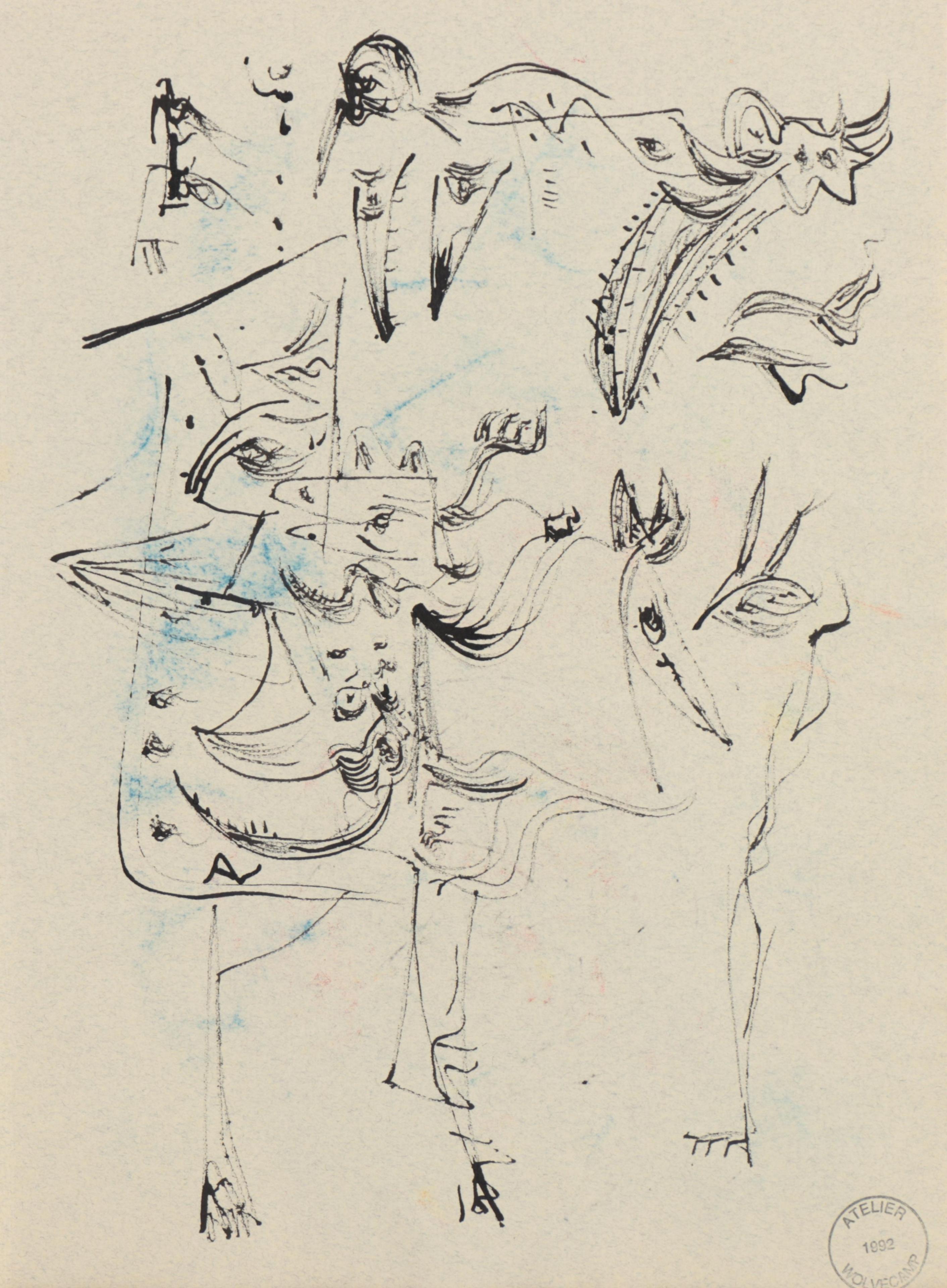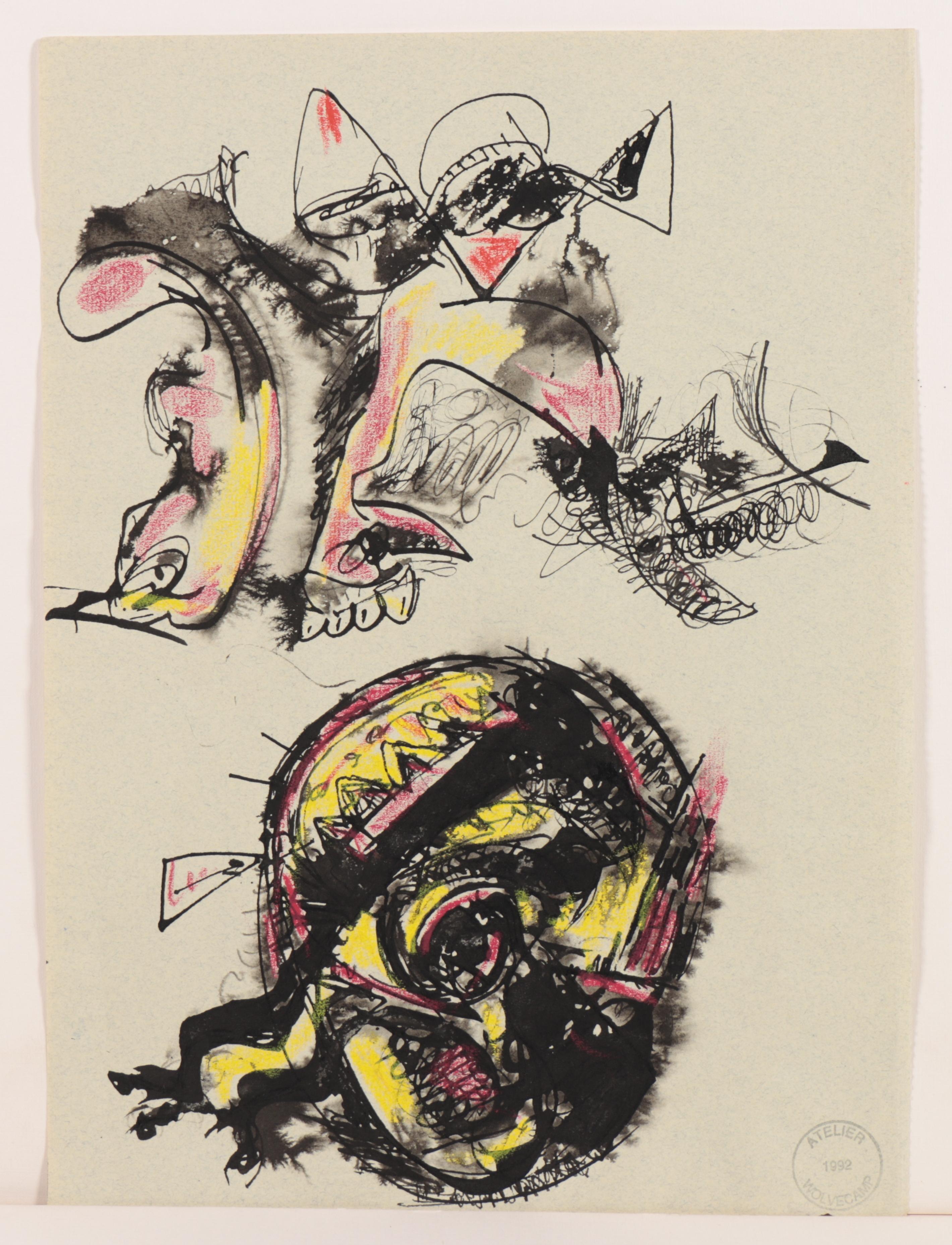 driemaal inkt en pastel, aan beide kanten tekening, met atelierstempel, 20 x 14 cm. 21 x 30 cm., 31 x 24 cm.