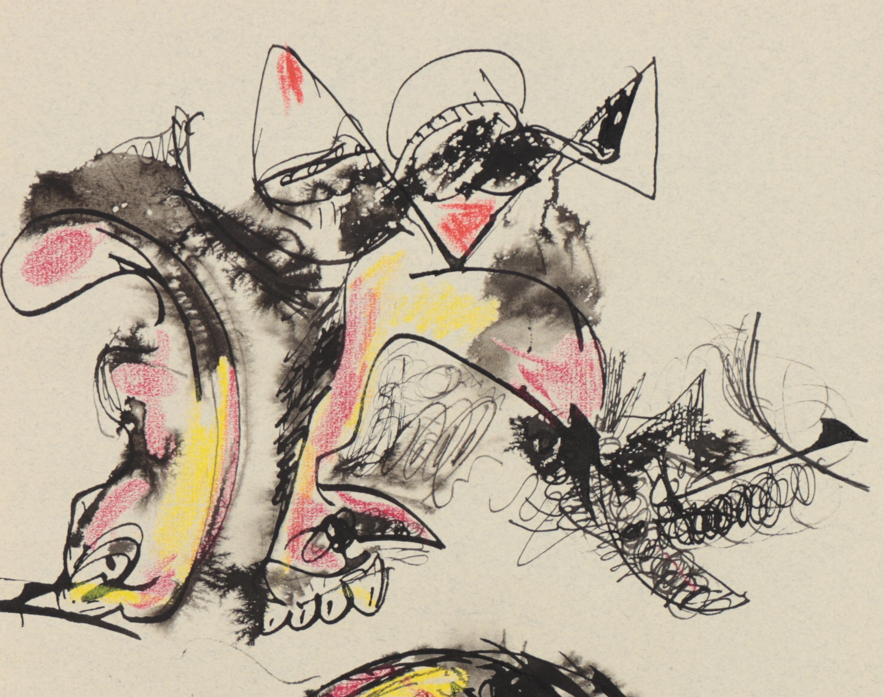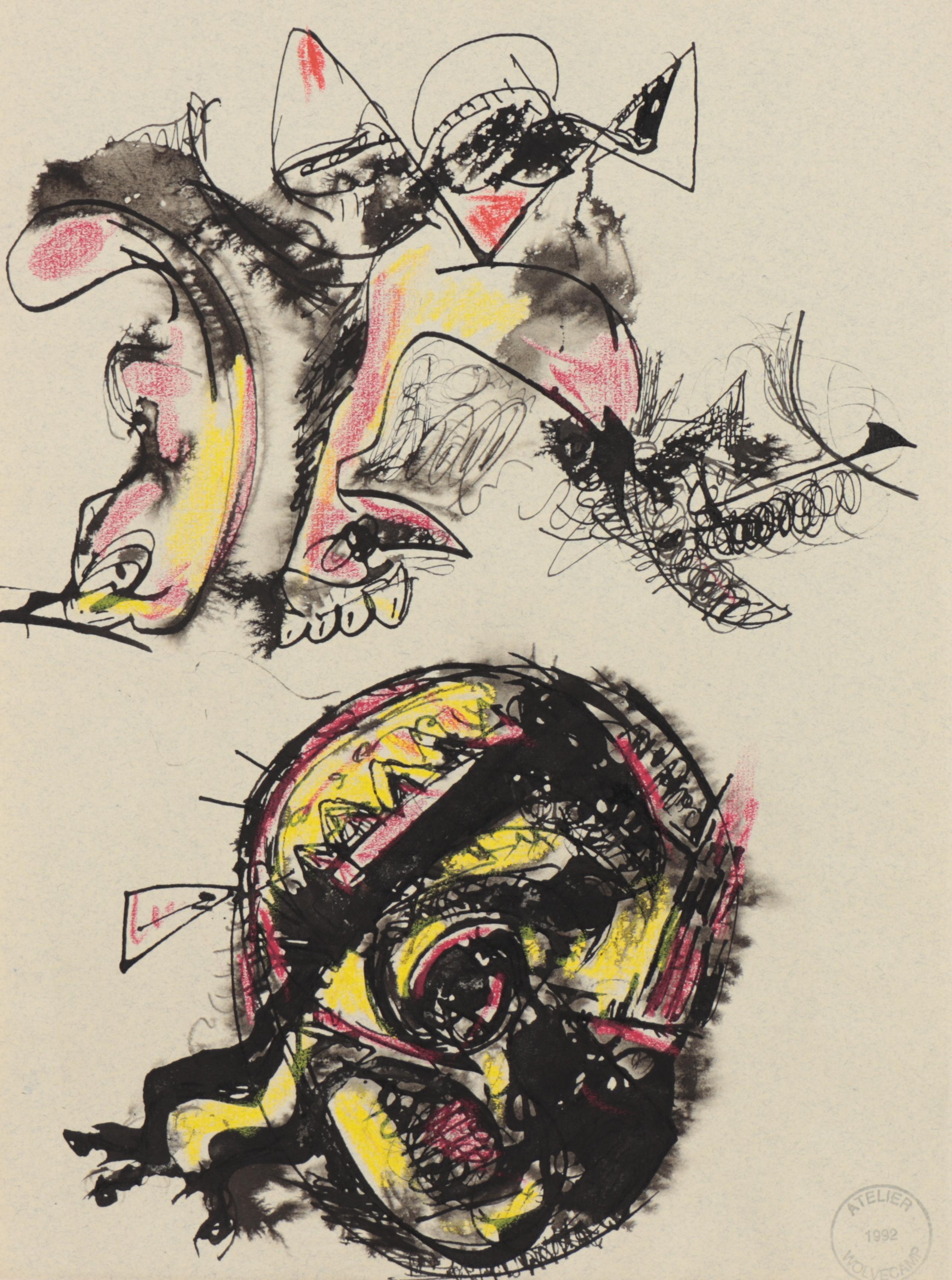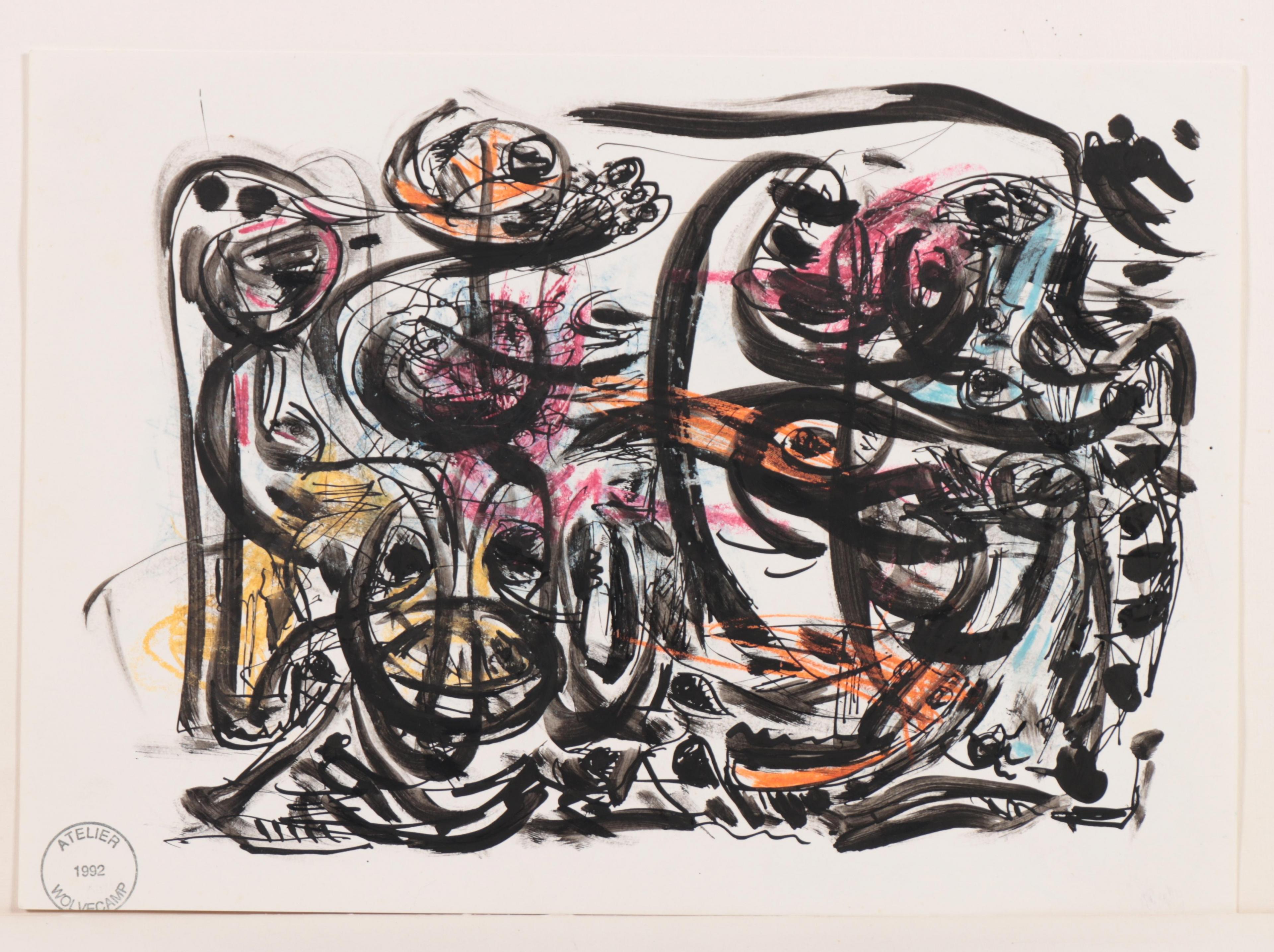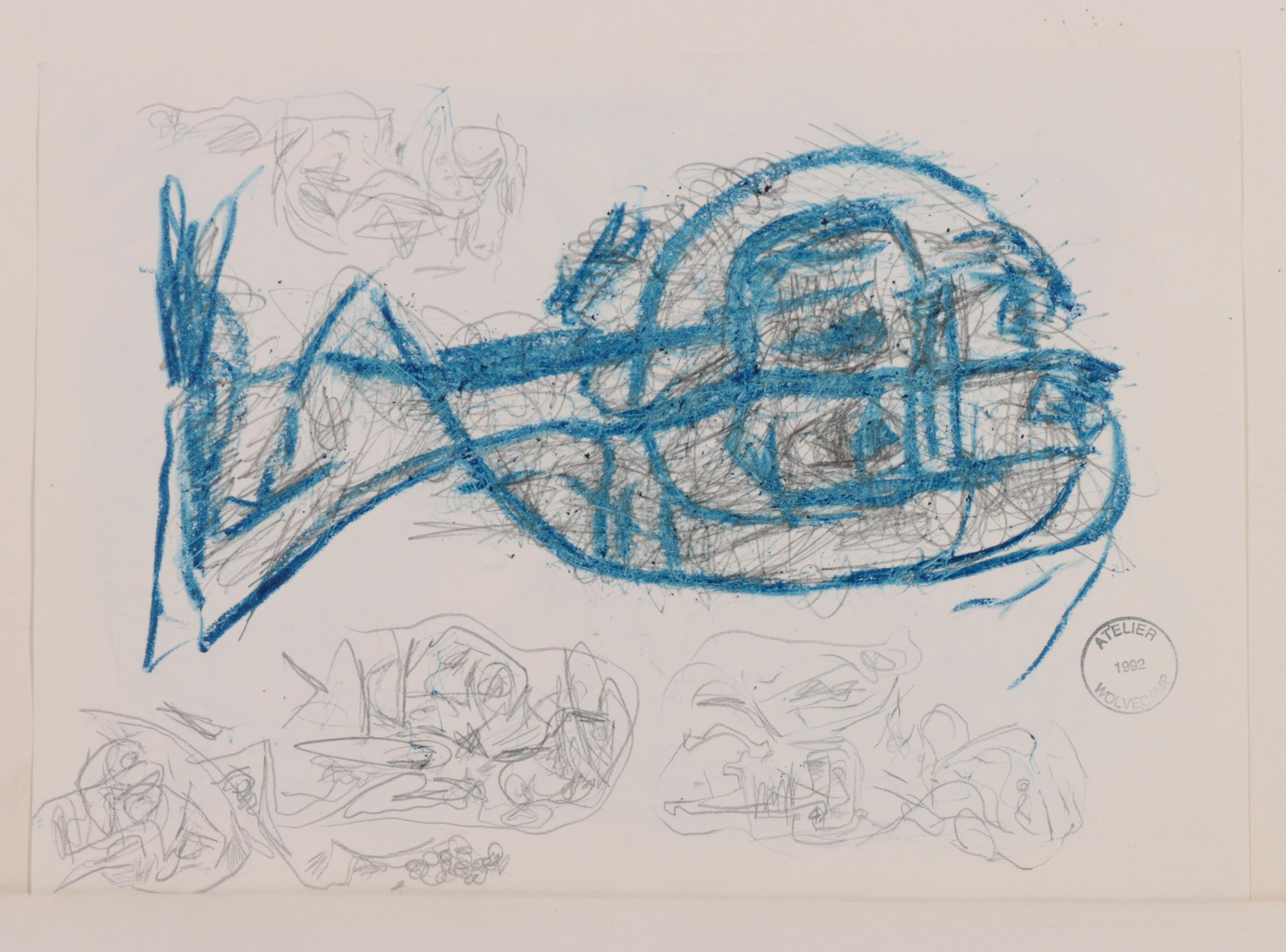driemaal inkt en pastel, aan beide kanten tekening, met atelierstempel, 20 x 14 cm. 21 x 30 cm., 31 x 24 cm.