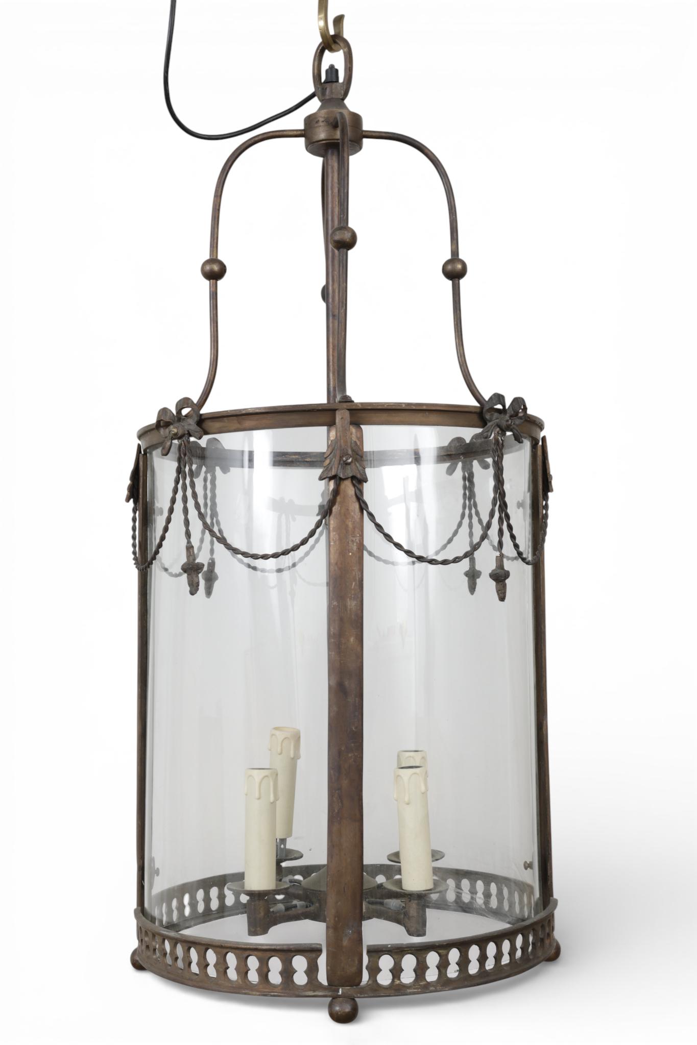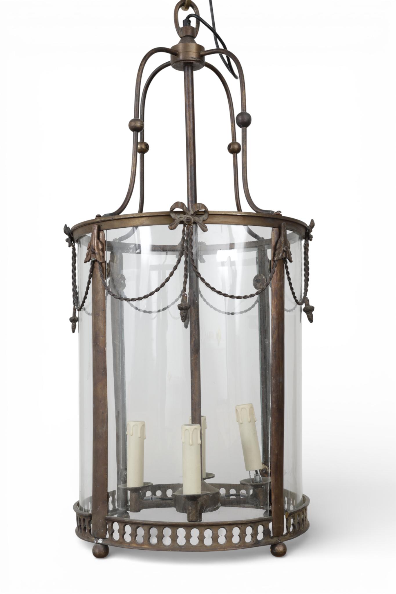 Messing vierlichts hallantaarn in Louis XVI-stijl,