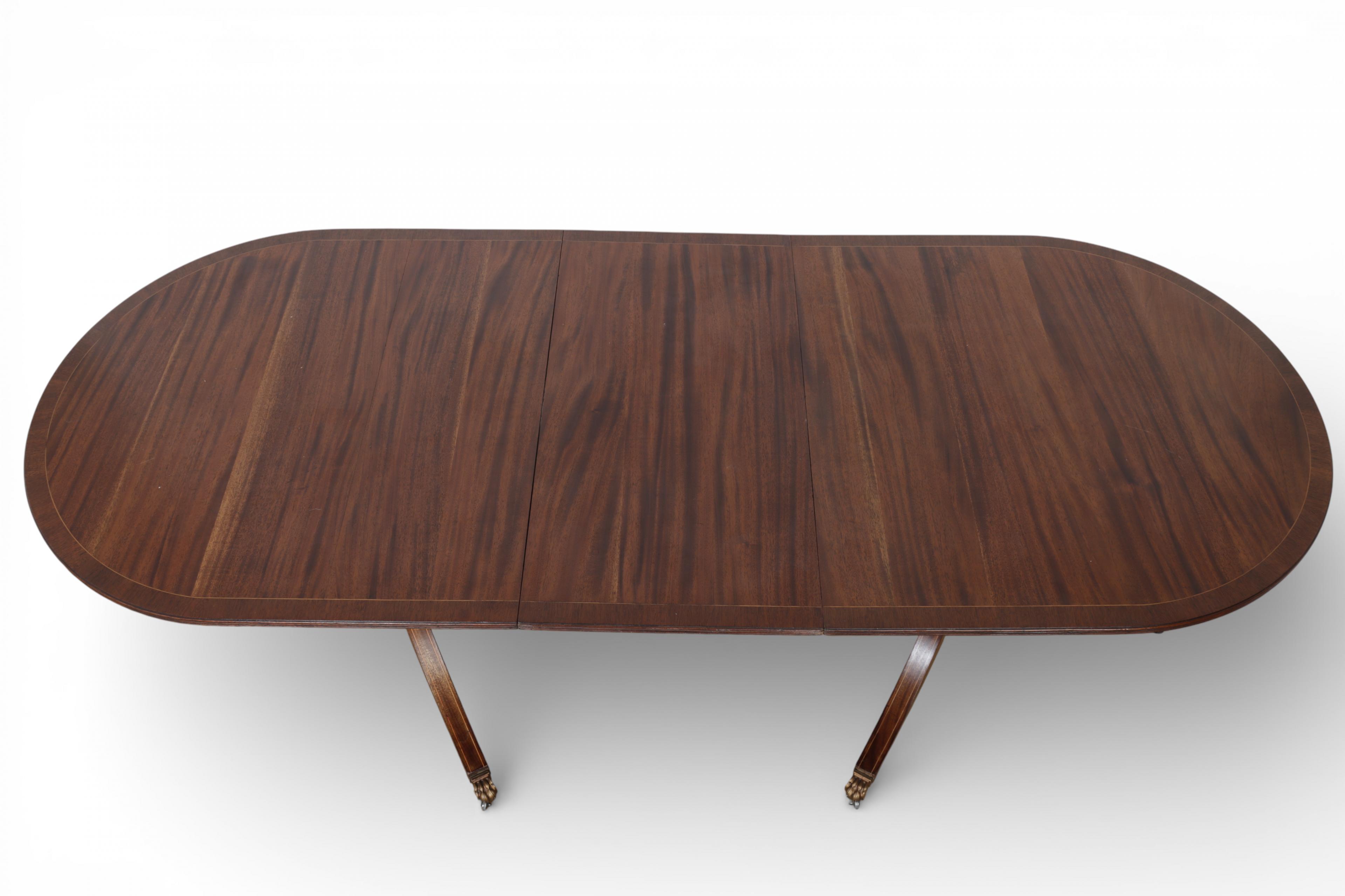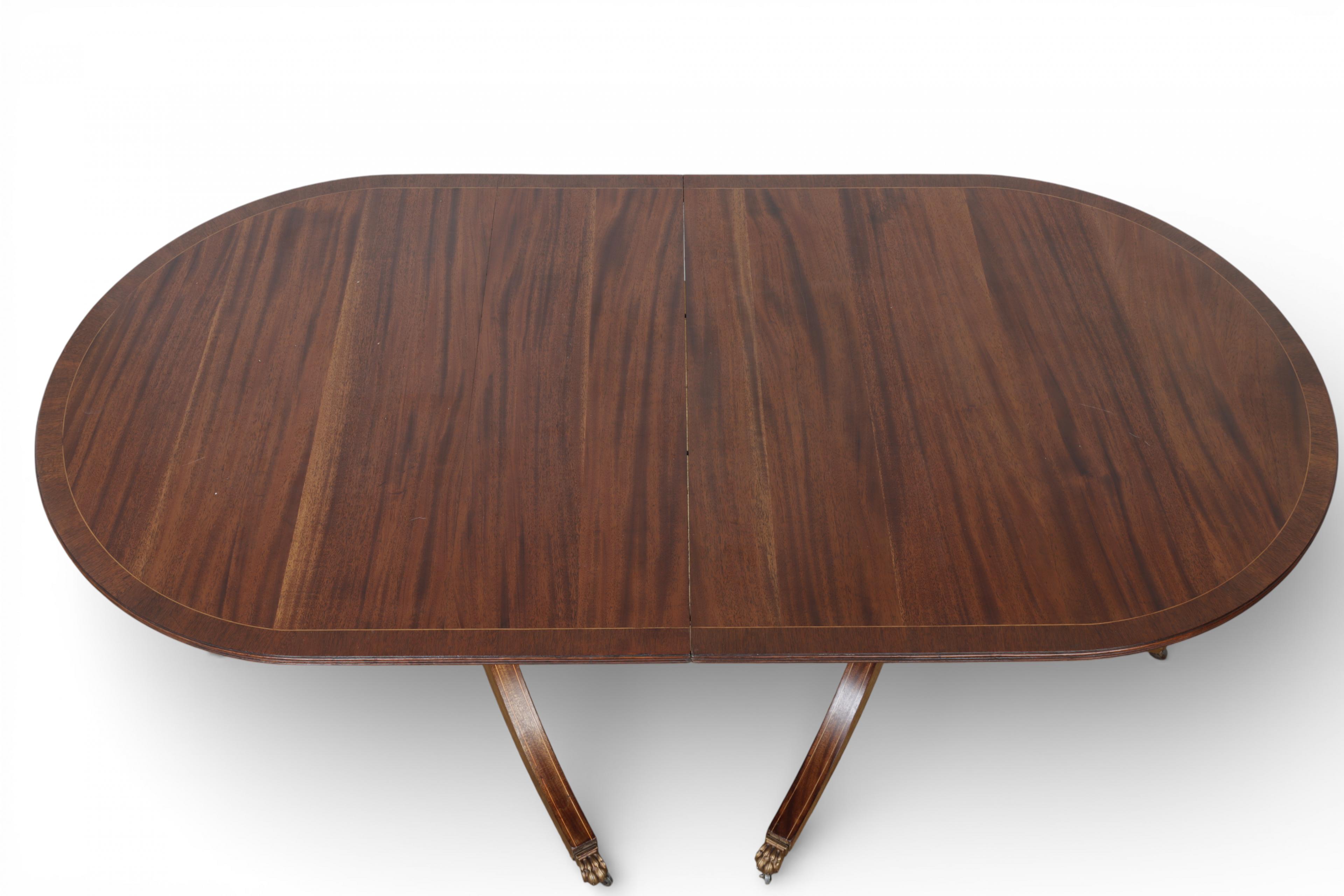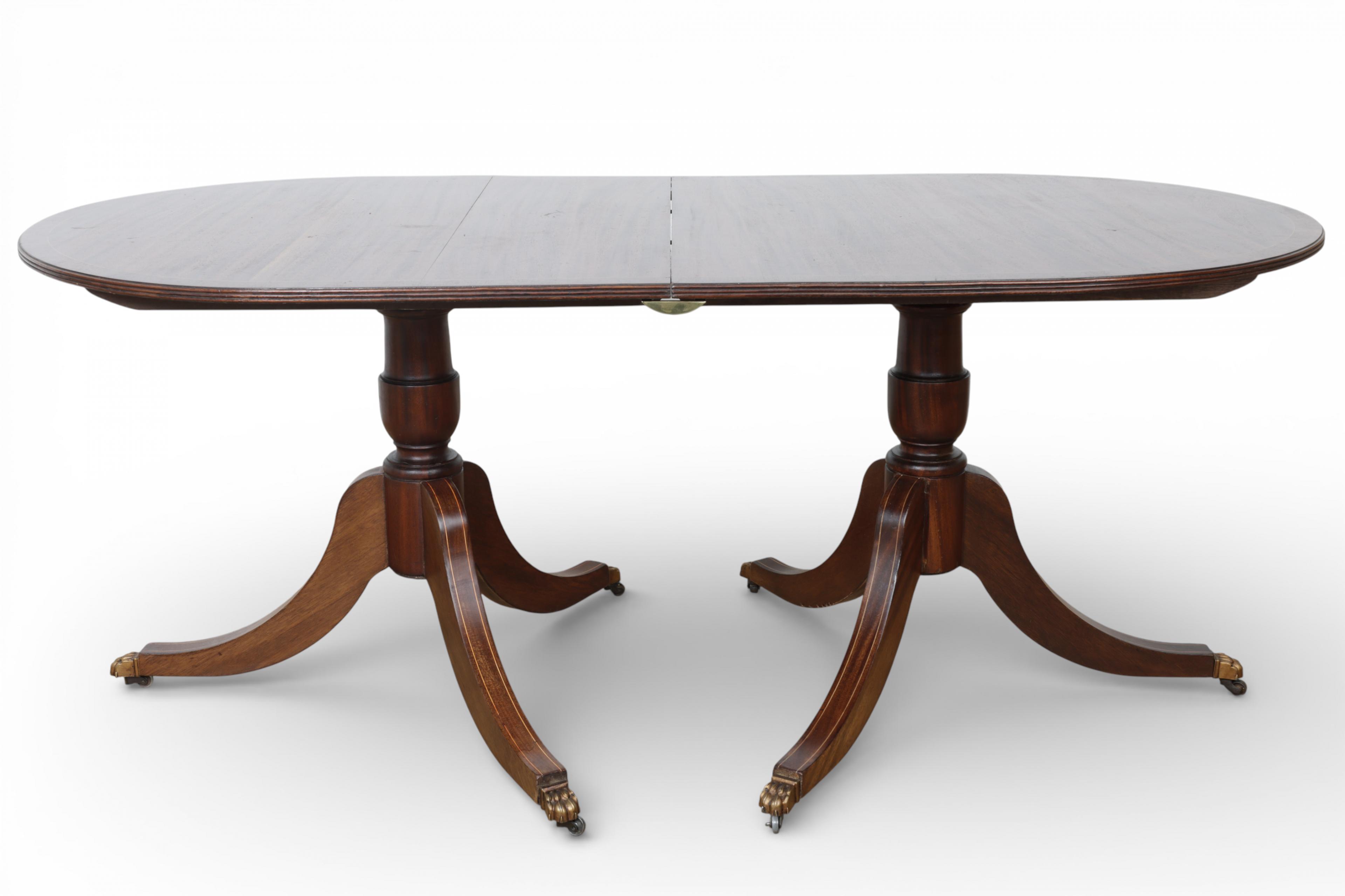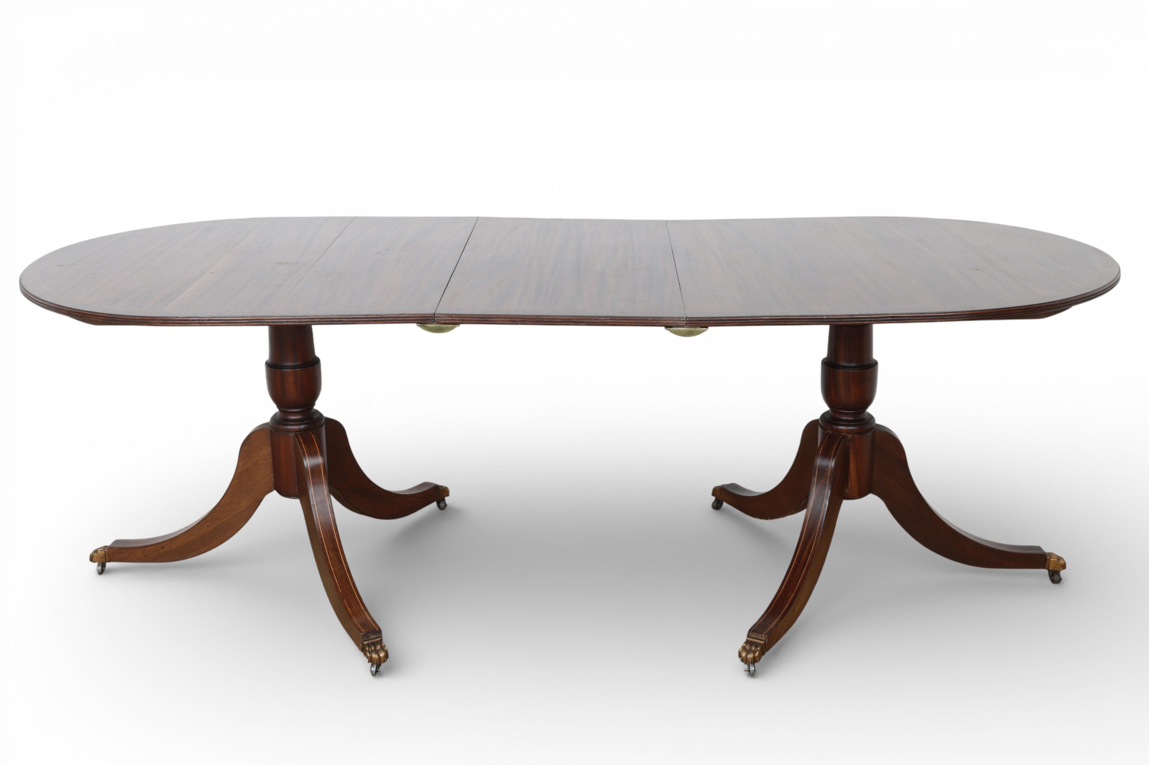 Engeland, mahoniehouten twin pillar eettafel, Sheraton stijl, 20e eeuw,