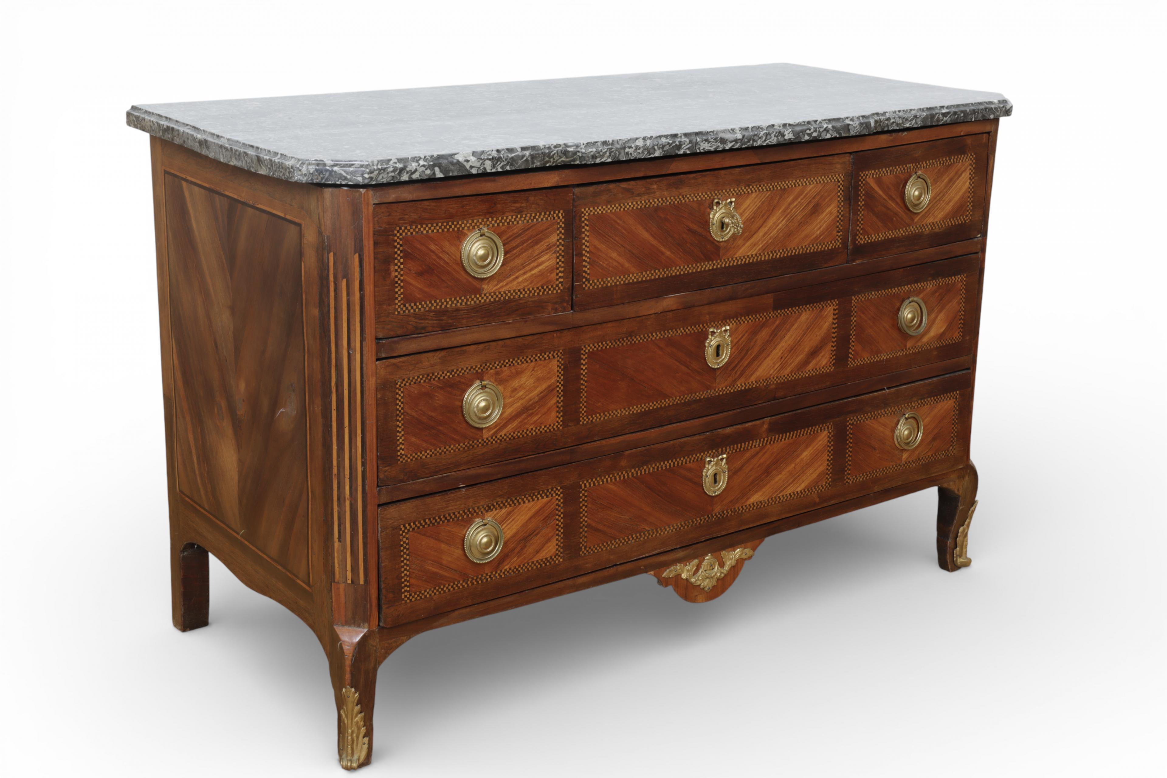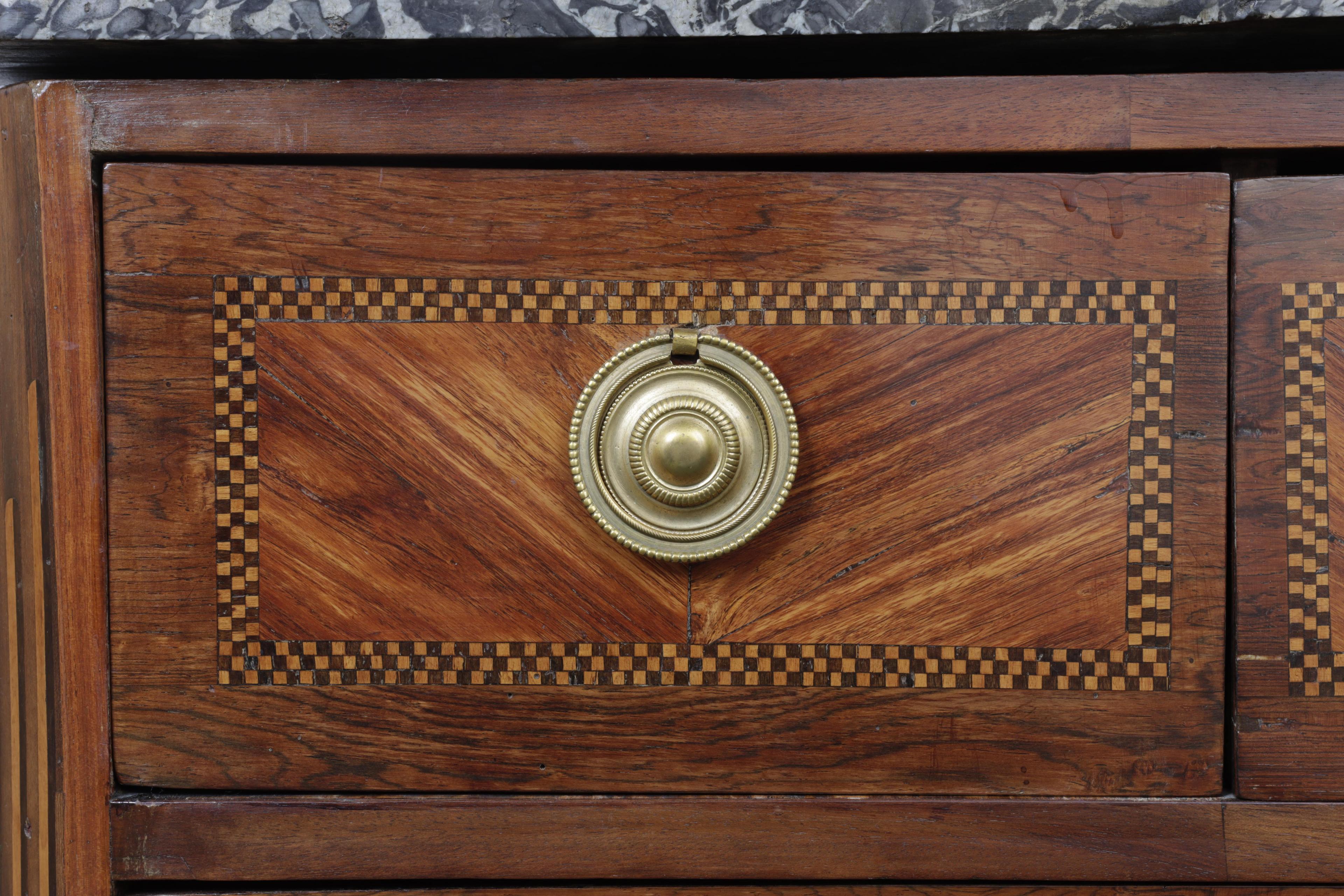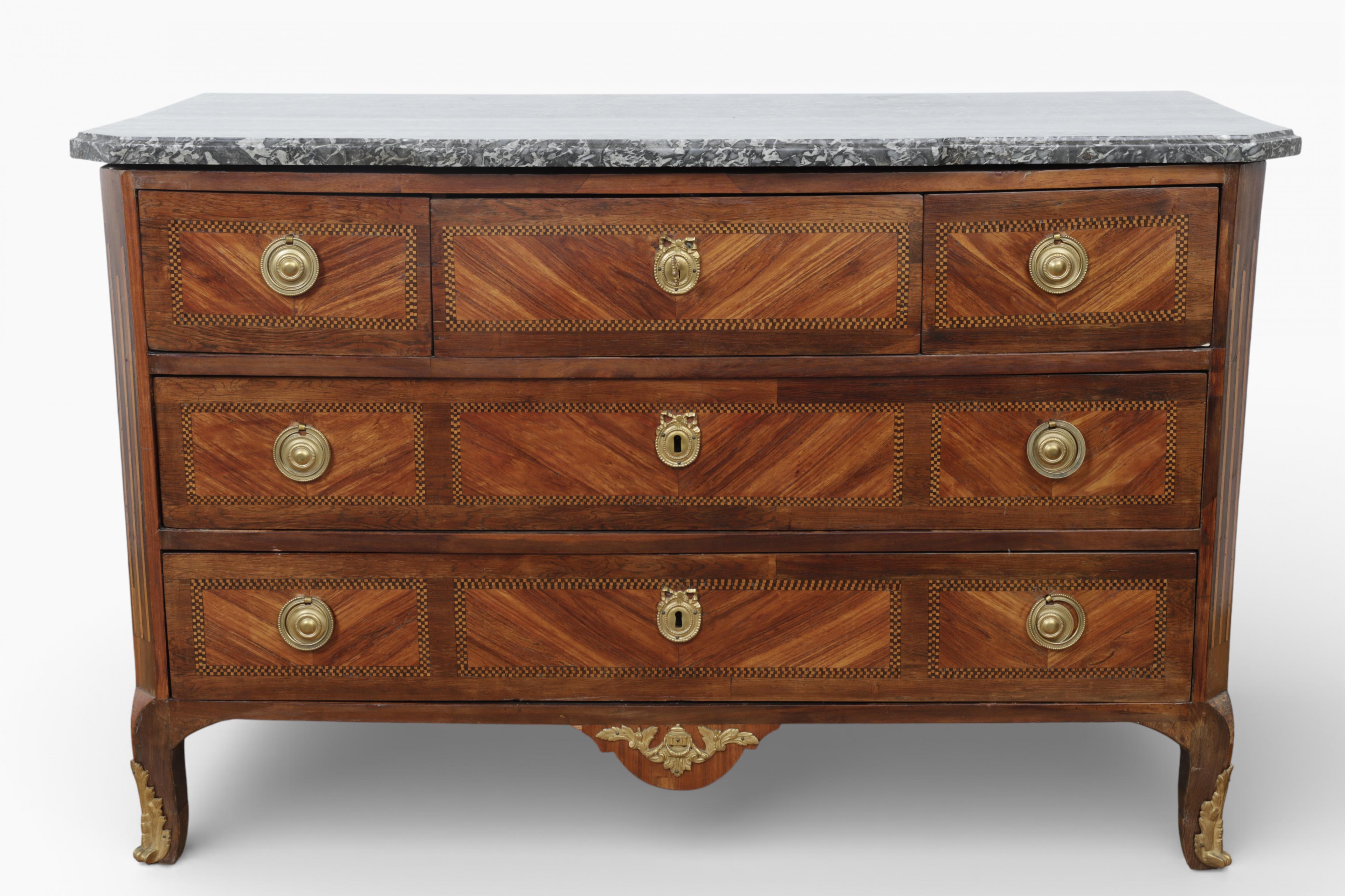 Frankrijk, rozen- en mahoniehouten commode, Transitie, 18e eeuw,
