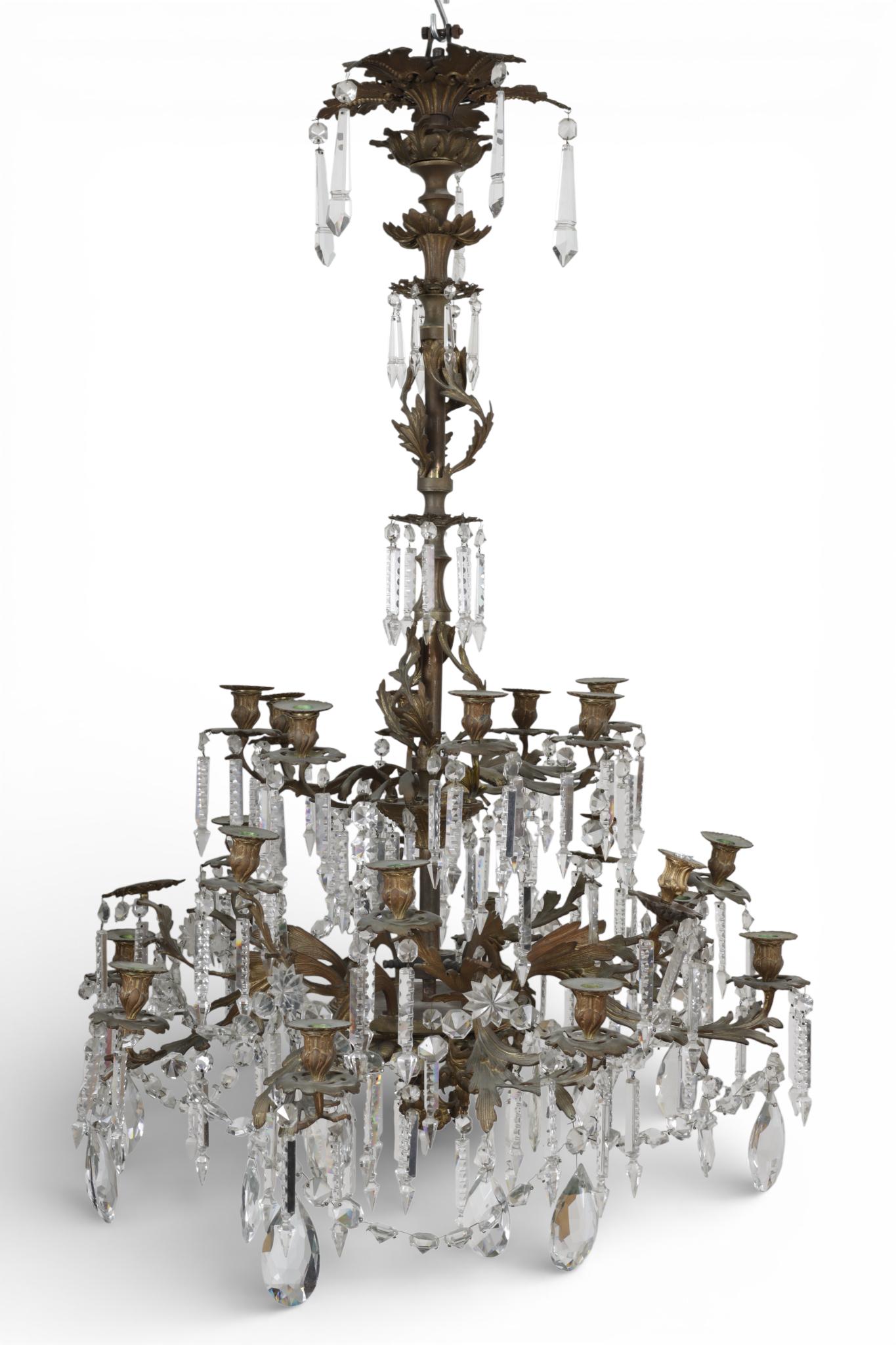 met acanthusbladeren en kristallen prisma' s en pegels (incompleet; twee kaarsenhouders niet origineel, wwarvan één defect)