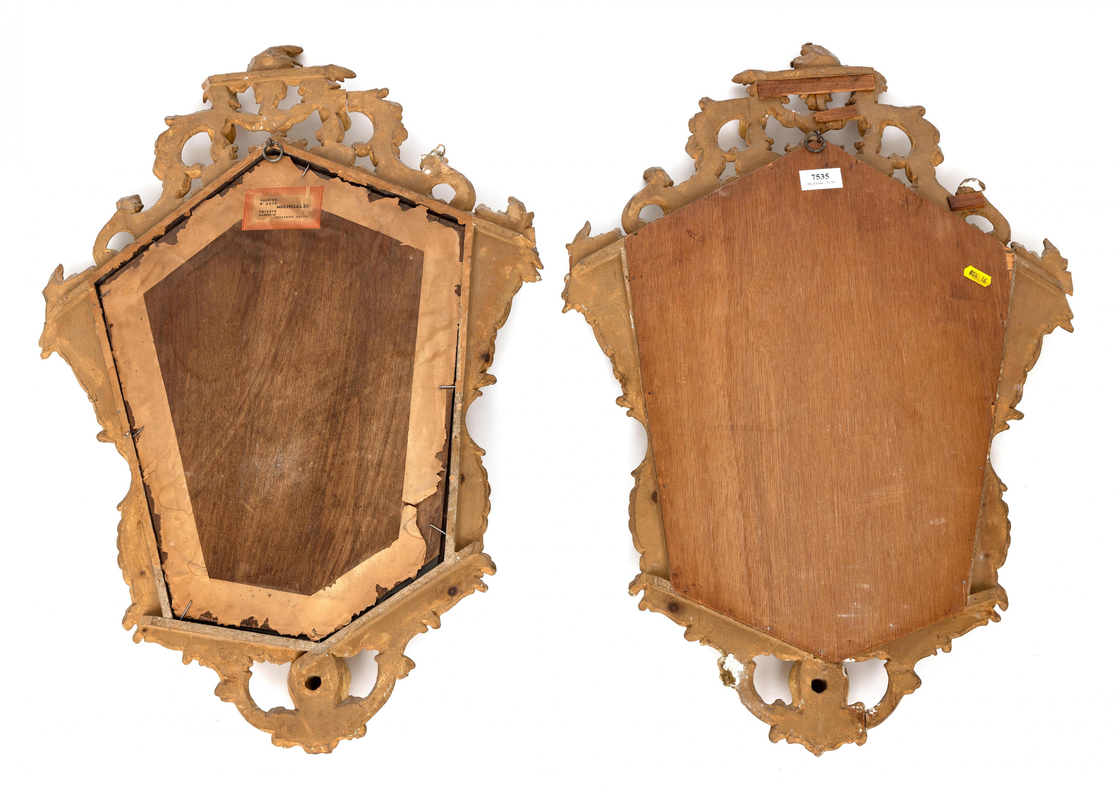 Frankrijk, paar spiegels in met bladgoud vergulde lijsten, Louis XV stijl, 19e eeuw.