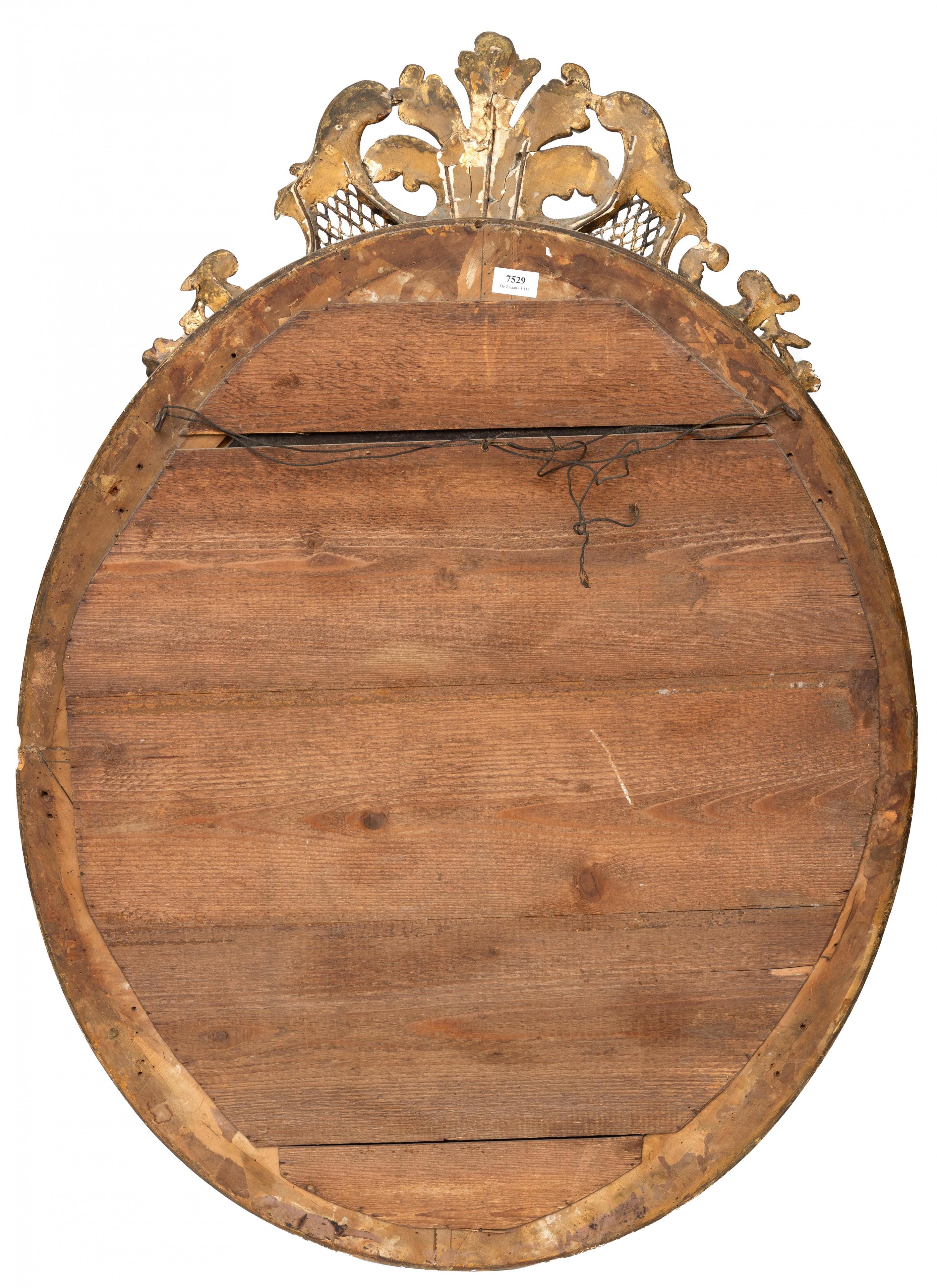Frankrijk, gefacetteerde ovale spiegel in verguld houten lijst in Louis XV-stijl, 19e eeuw