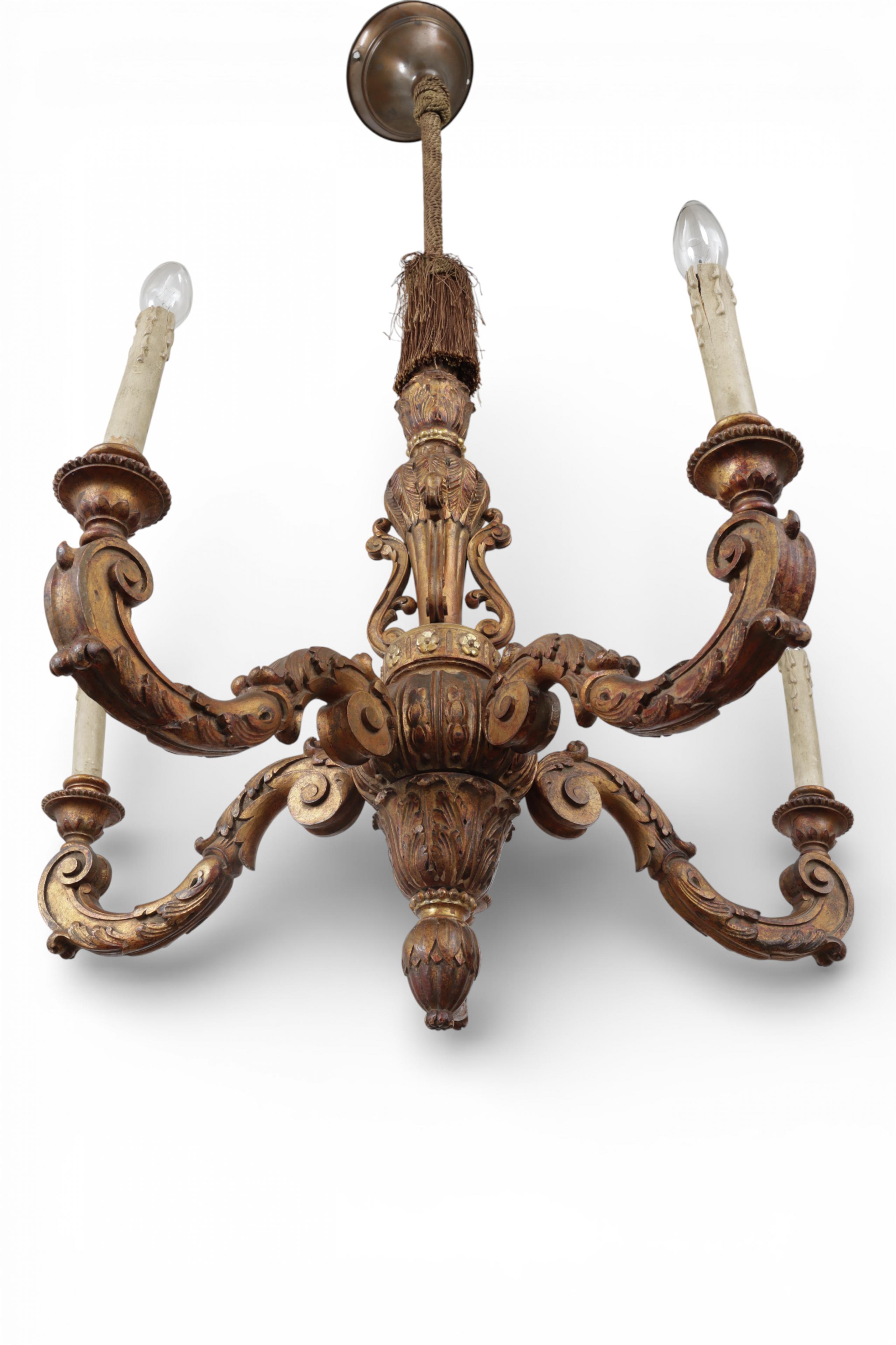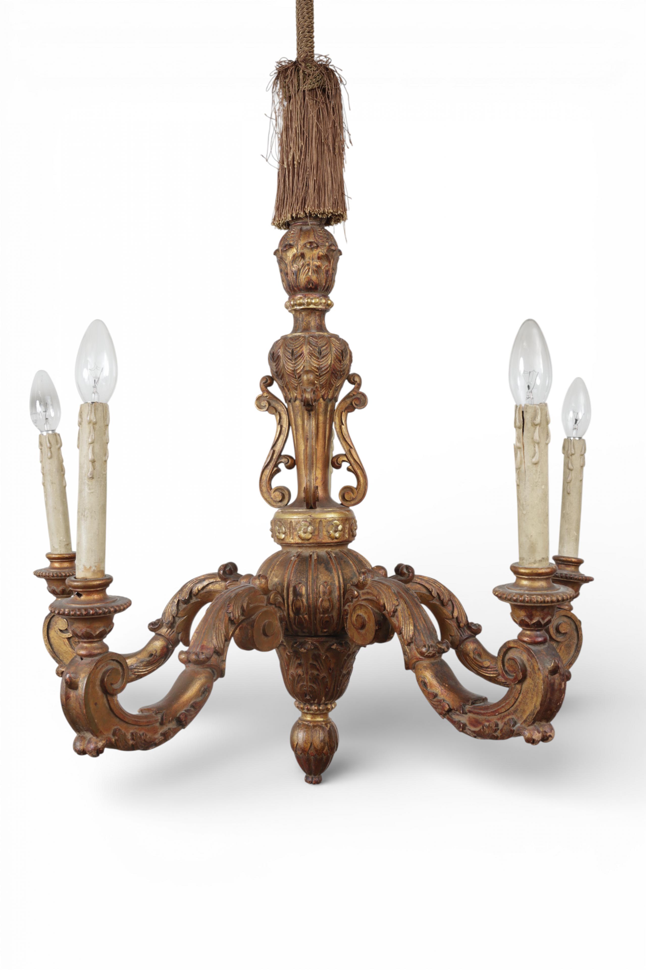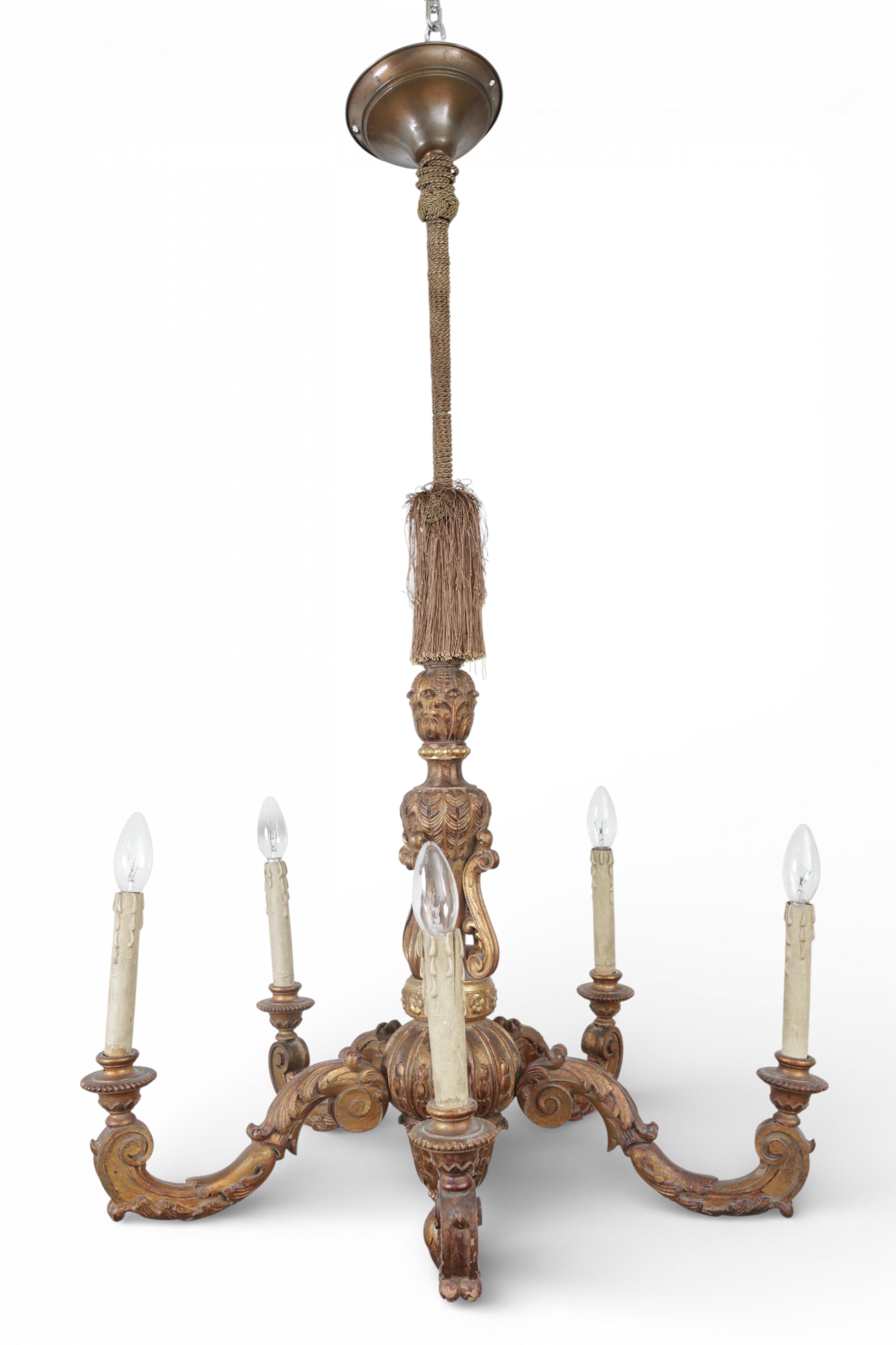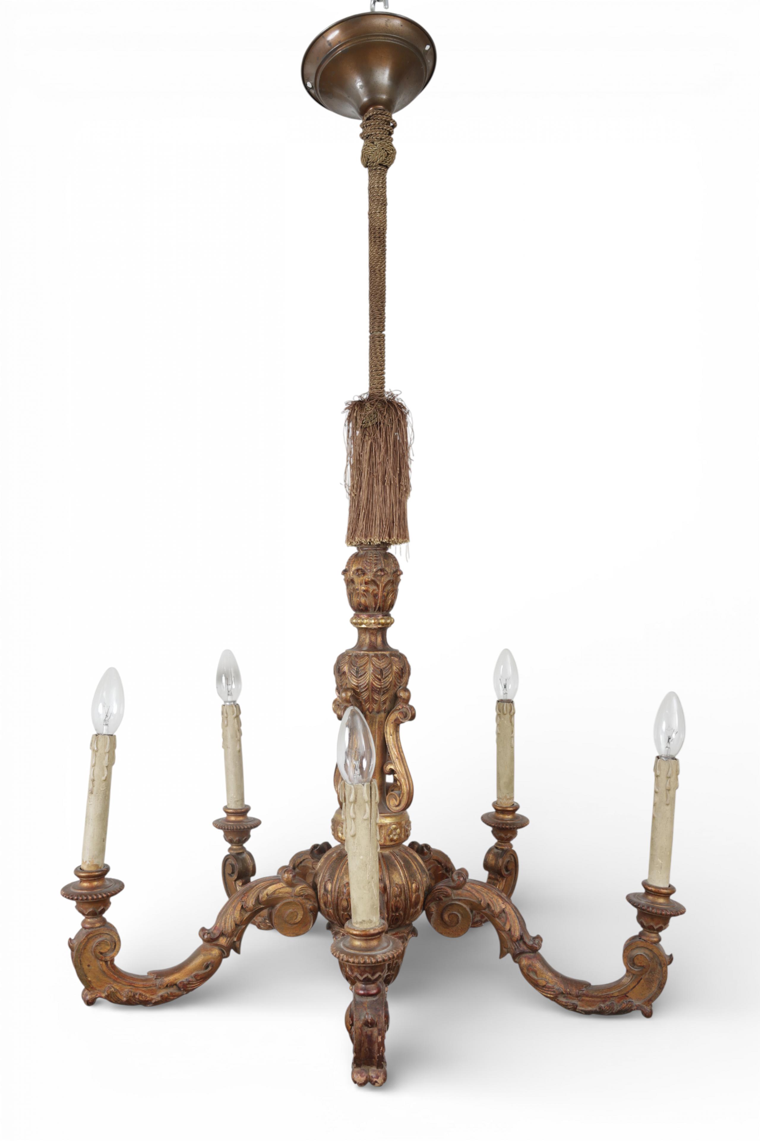 Frankrijk, verguld beukenhouten geëlektrificeerde vijflichts kaarsenkroon in Regence-stijl, circa 1900