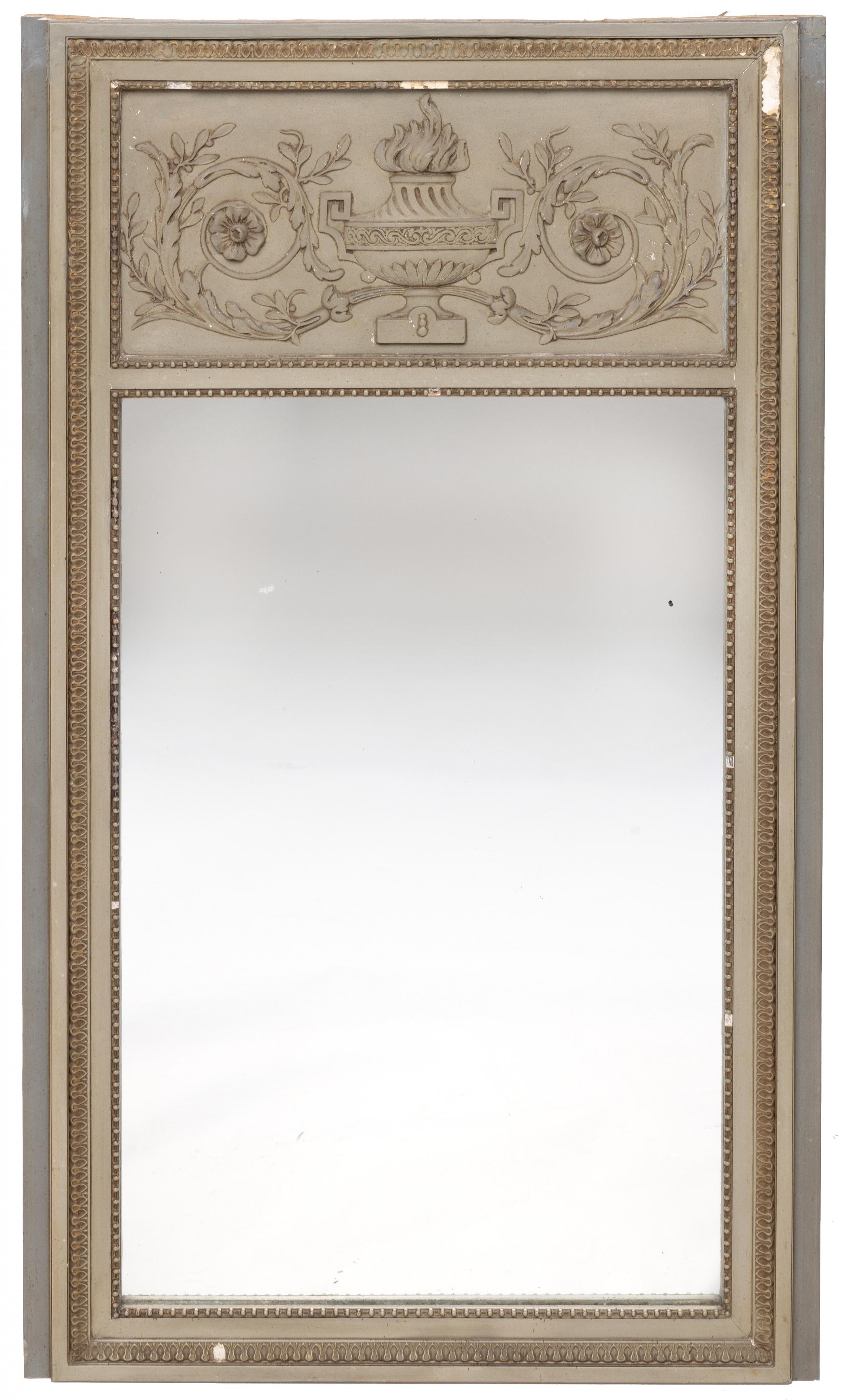 Rechthoekige spiegel in grijs laqué beukenhouten lijst, Louis XVI, circa 1800,