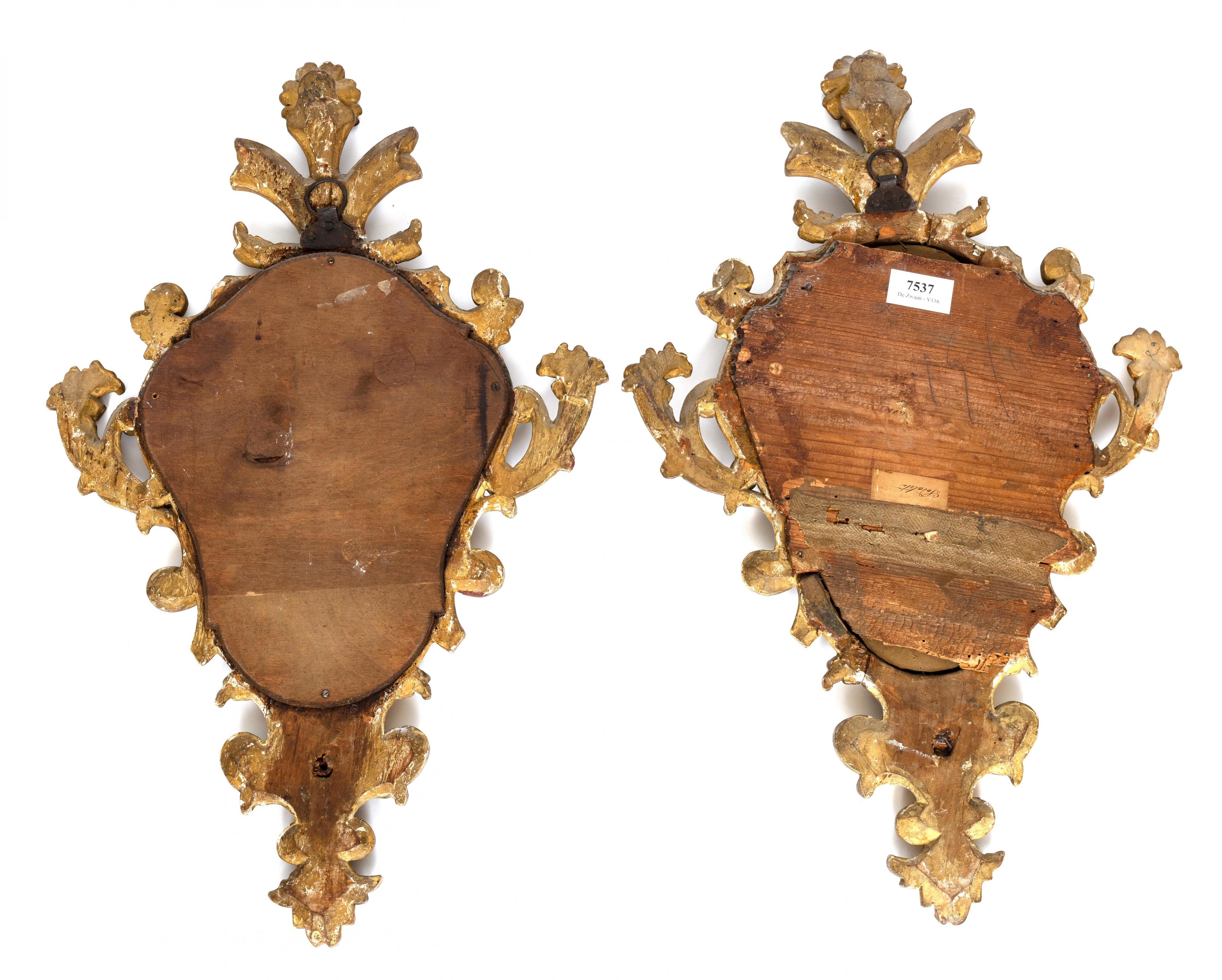 Frankrijk, paar kleine spiegels in verguld houten lijsten, Louis XV, 18e eeuw;