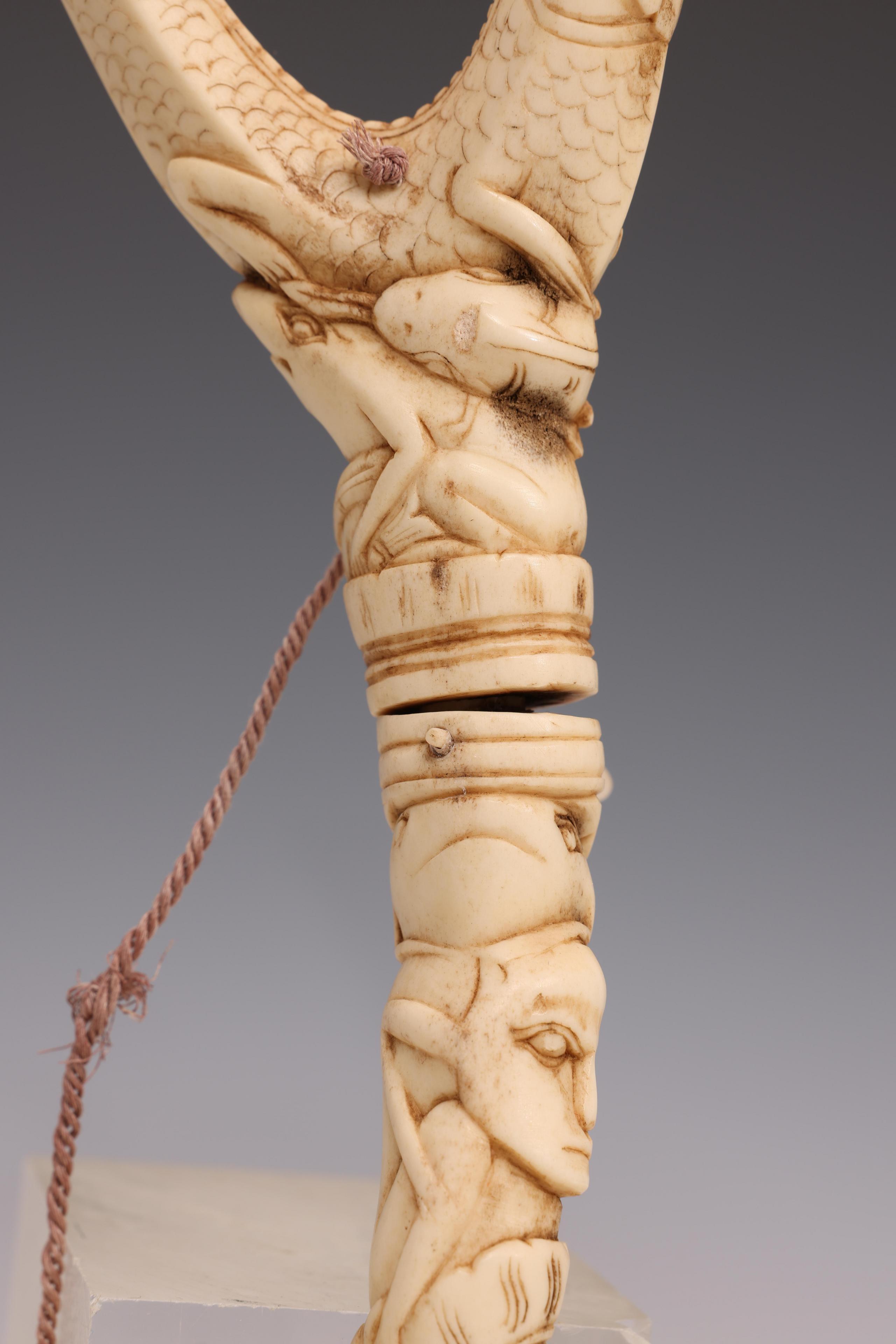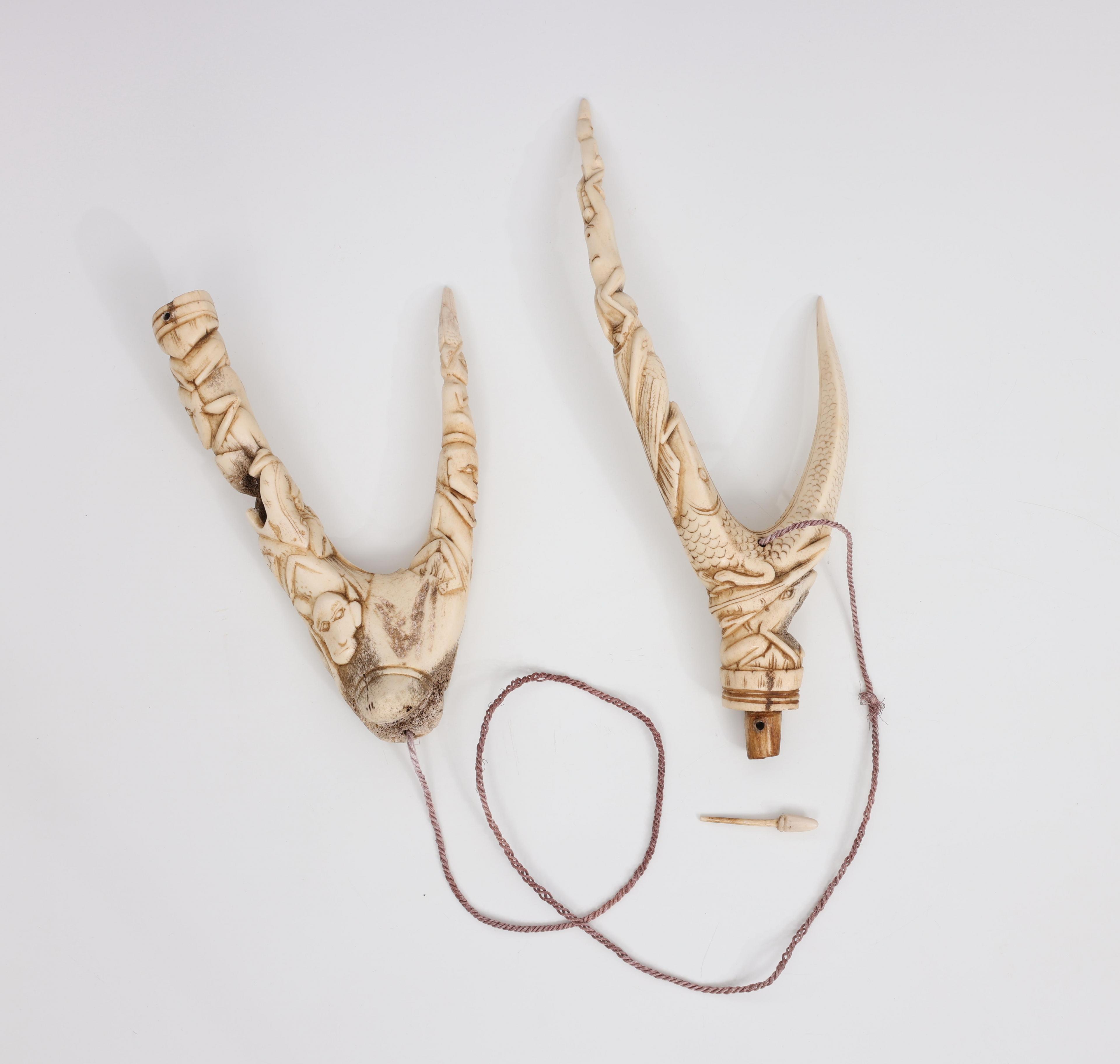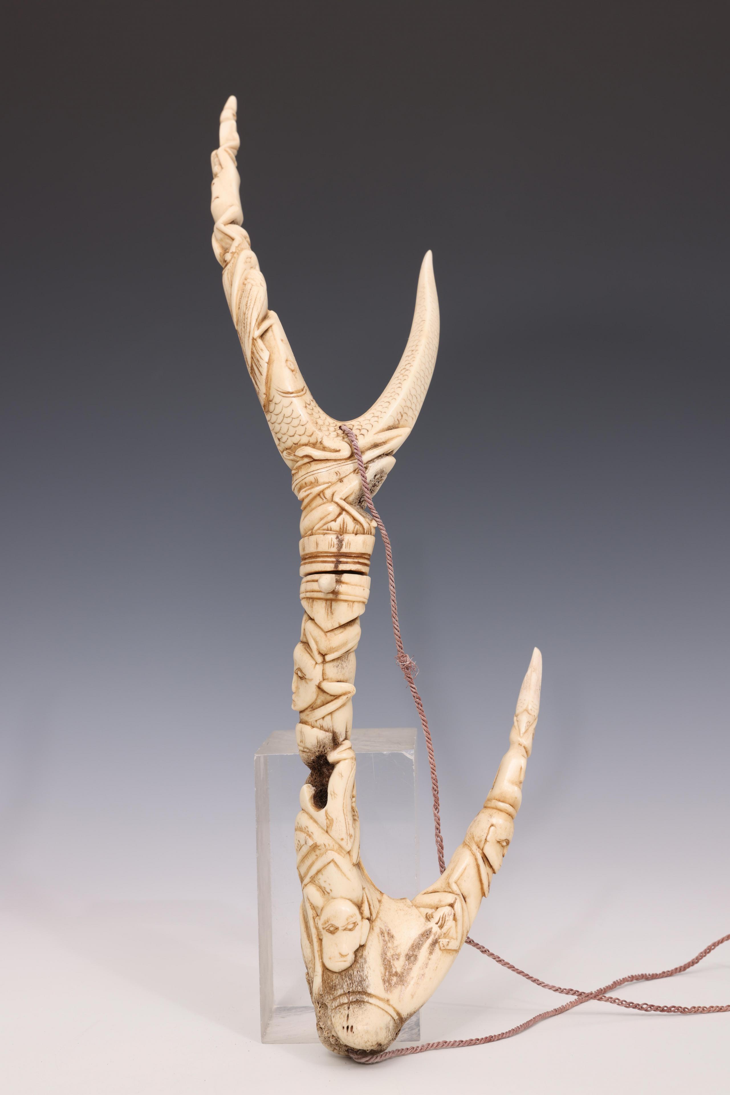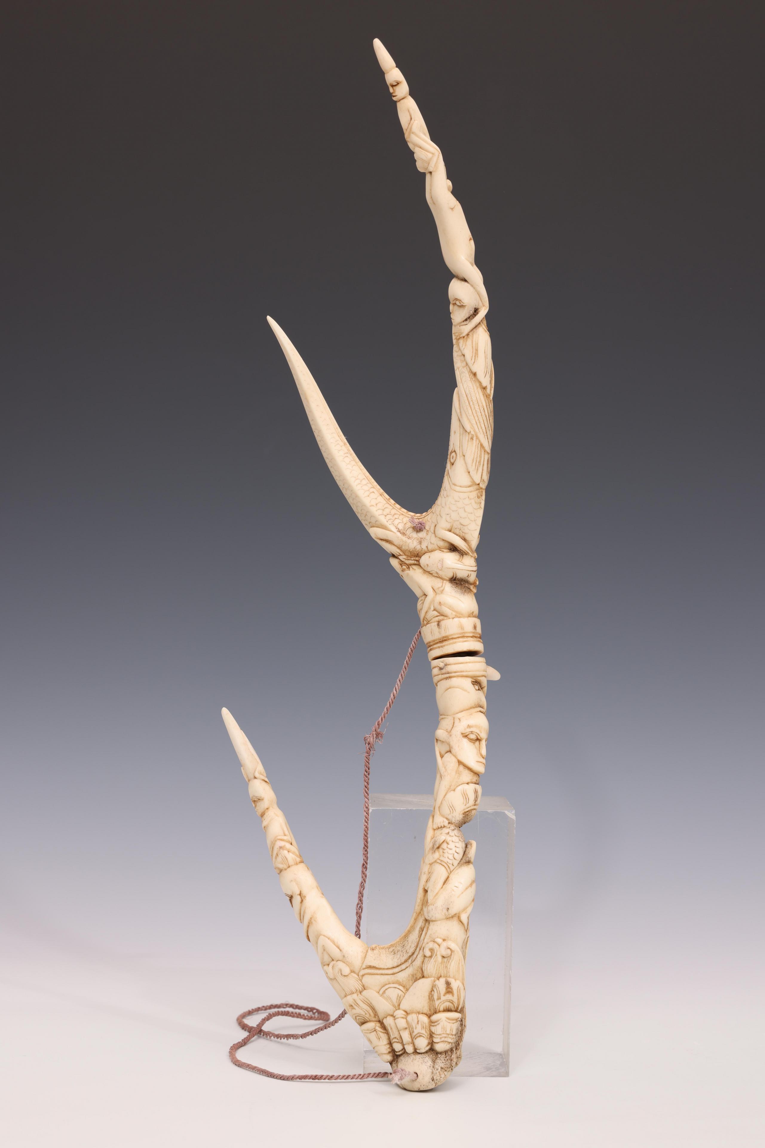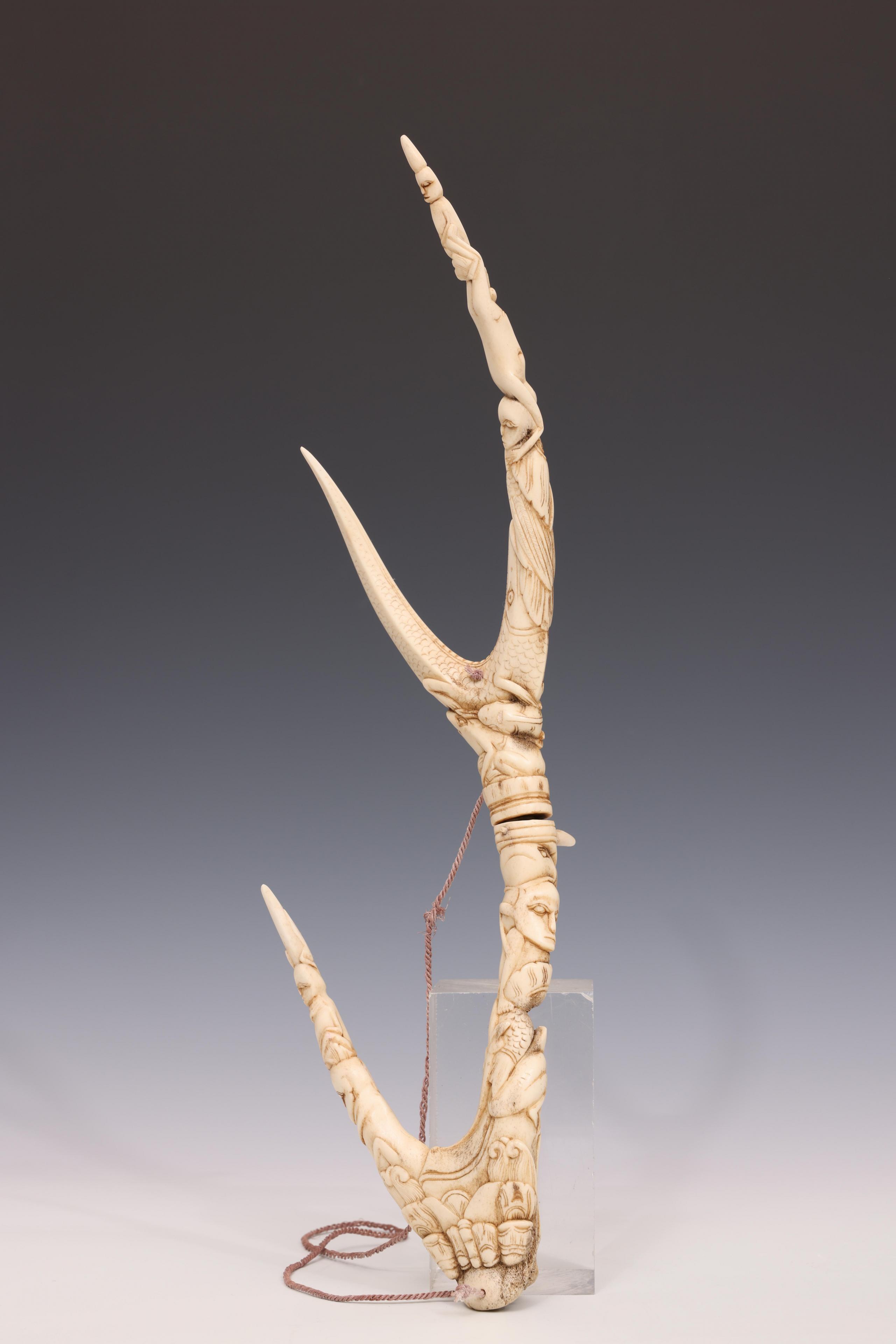 Indonesia, a fine carved deer horn ornament in two parts,