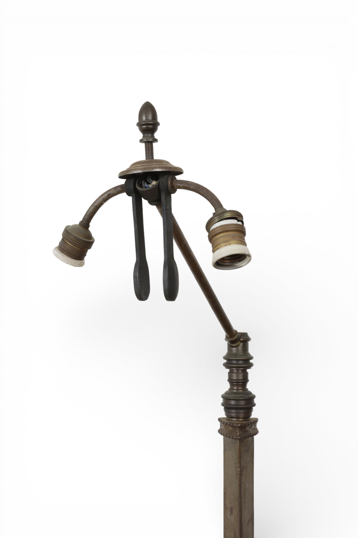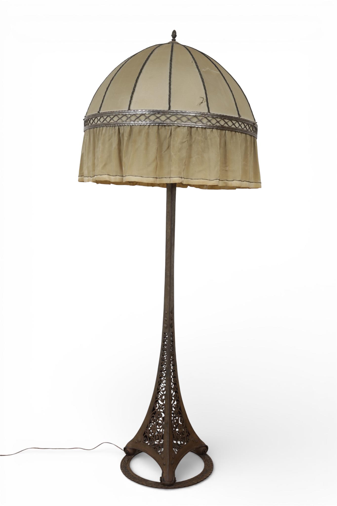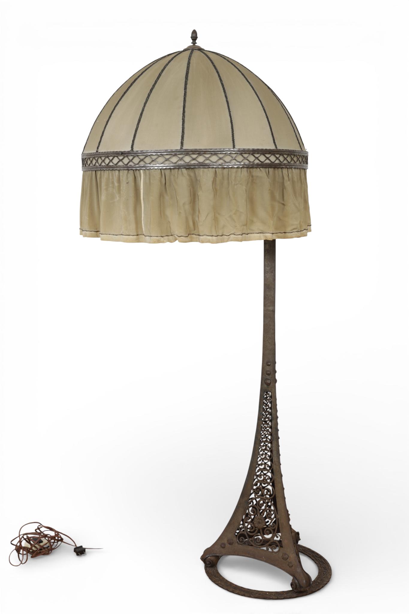 op ringvormige gietijzeren voet. Met kantige stoffen kap (beschadigingen). Kantelbaar