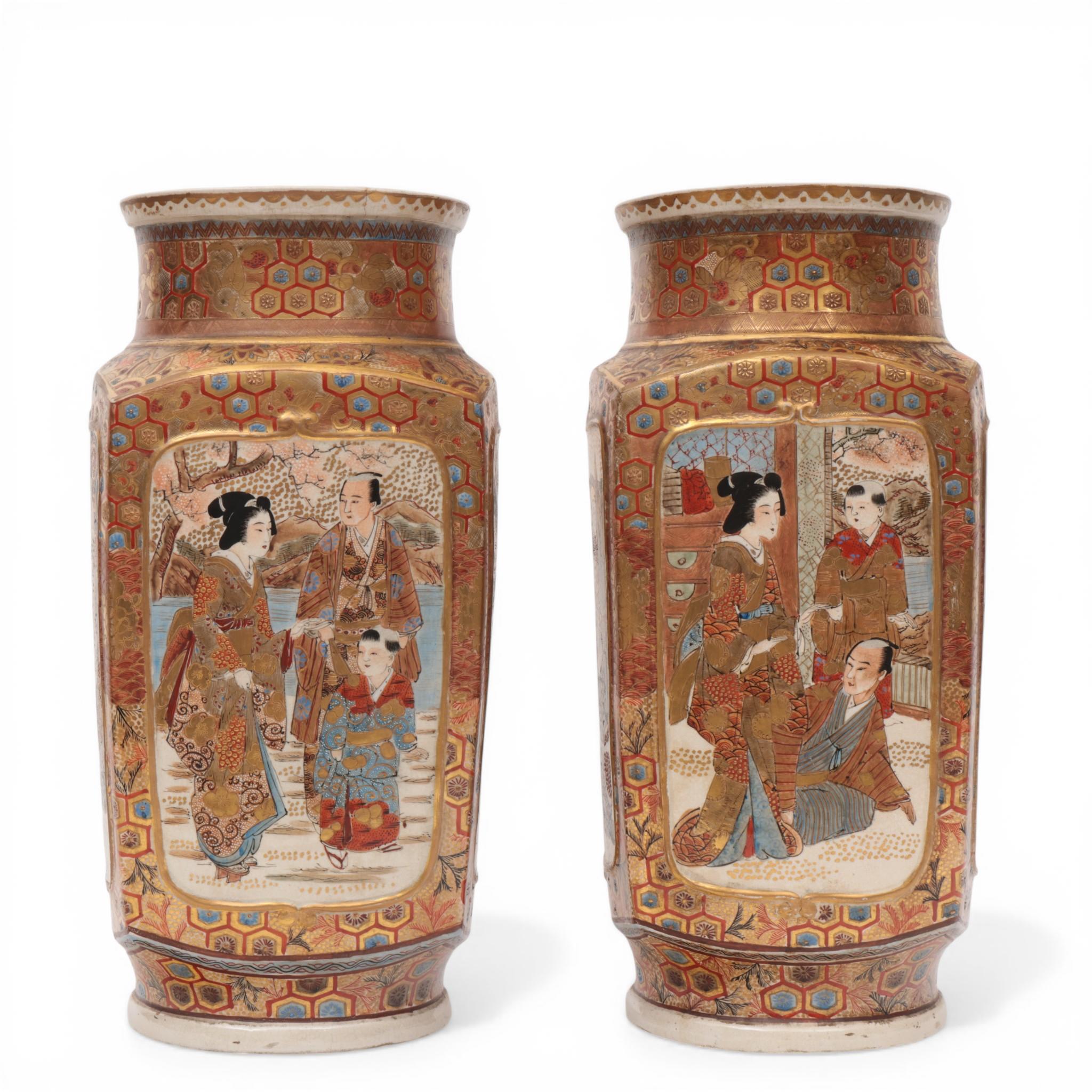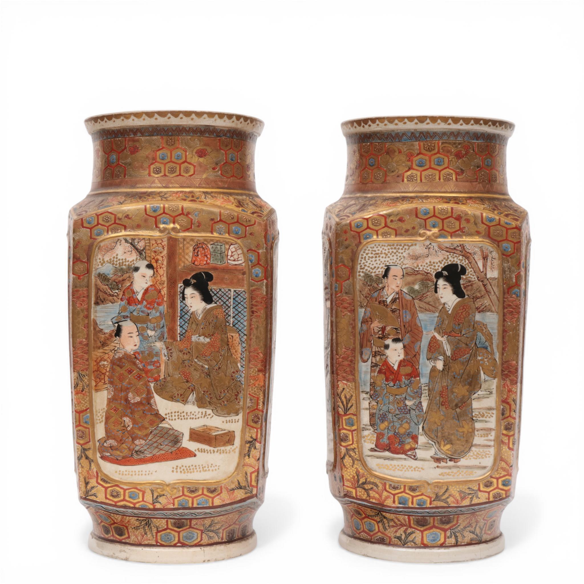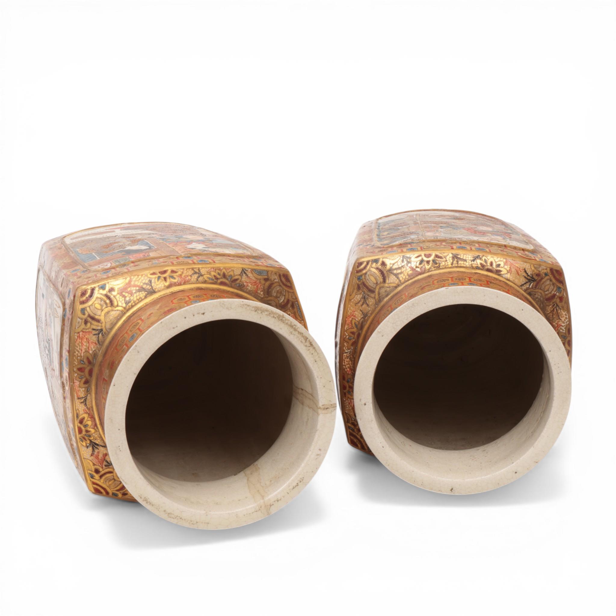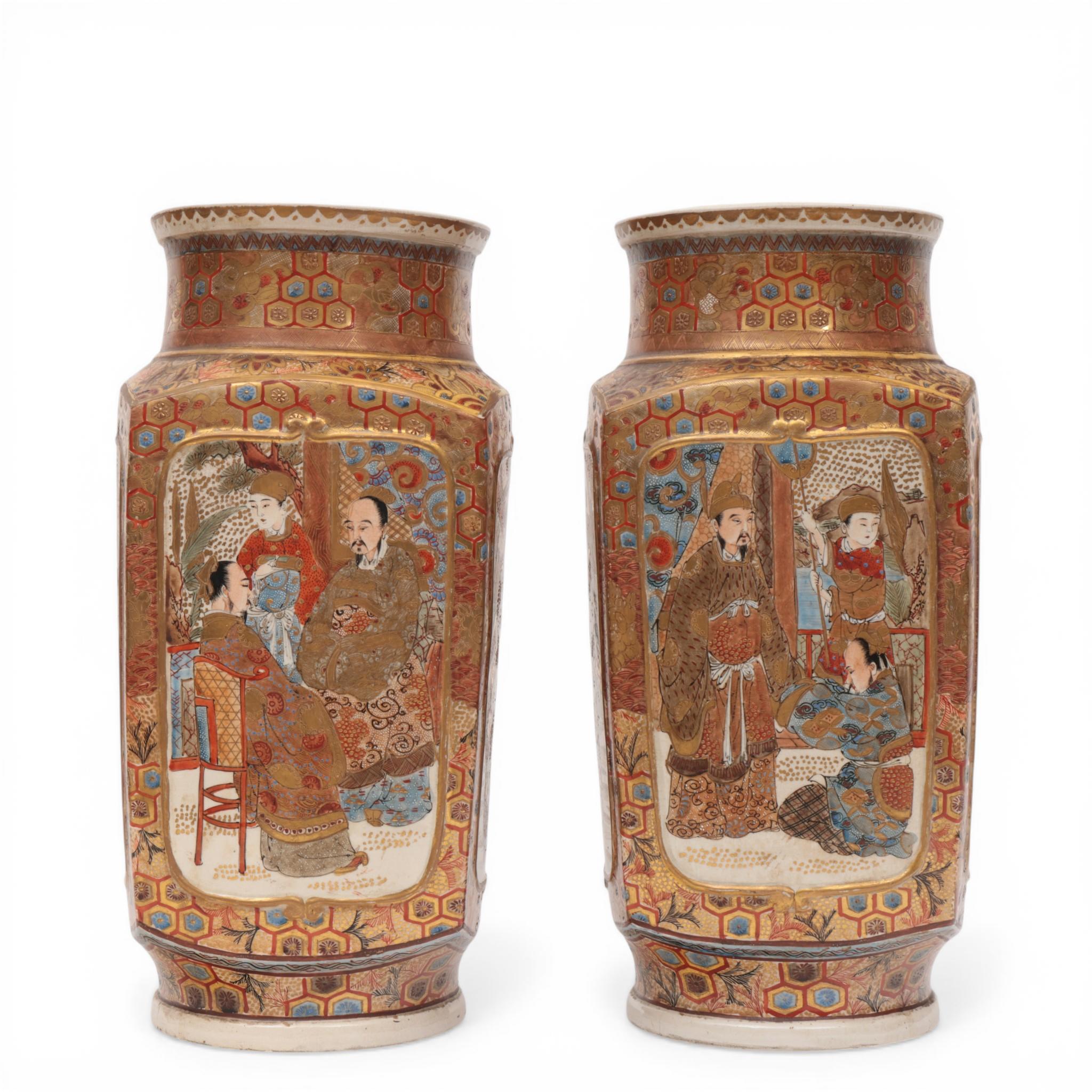 Japan, a pair of square-sectioned Satsuma porcelain vases, Meiji period (1868-1912),